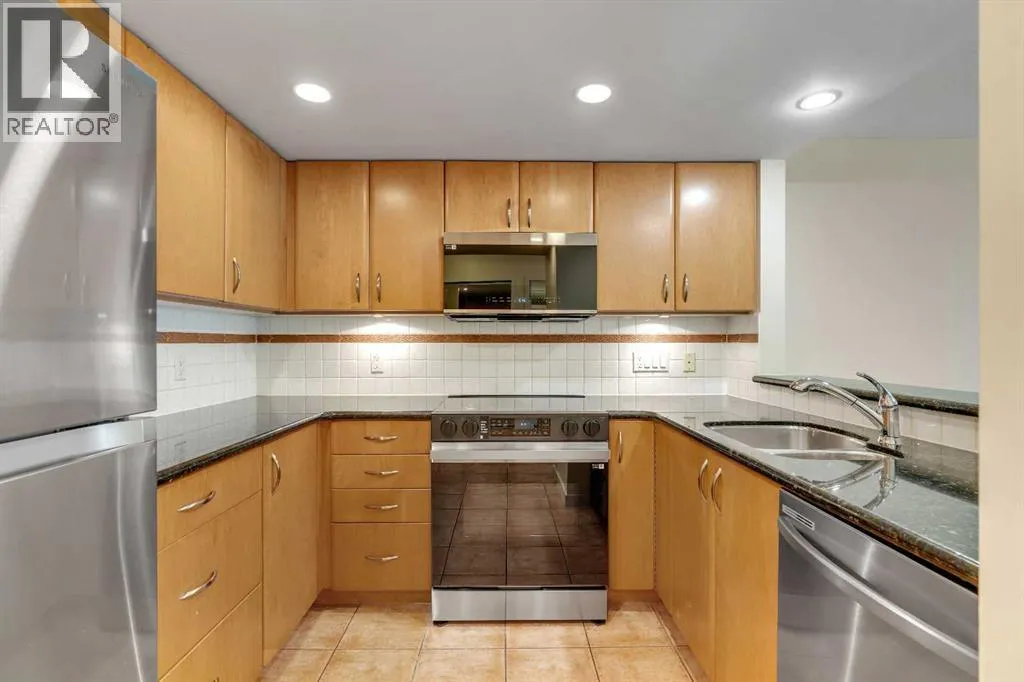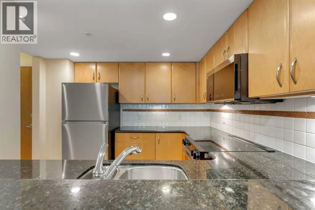 MASSIVE 823 SQ/FT UNIT | FRESHLY RENOVATED | STEPS TO BOW RIVER PATHWAYS + PRINCEâS ISLAND PARK | Welcome to The Marquis on 6 Ave SW, located in one of the best areas of West Downtown, within walking distance of everything including Eau Claire, Princeâs Island Park, Bow River Pathways, and just a quick stroll to the office. This massive one-bedroom unit has just been updated with brand new flooring, fresh paint, and new appliances throughout, making it a turn-key opportunity for the downtown condo buyer. Whether youâre a first-time home buyer or a savvy investor, this could be a wonderful unit for you. As you enter the unit youâll notice a tremendous amount of natural light with the south exposure, extending onto a large sun-soaked patio. The unit features new stainless steel appliances, beautiful new vinyl flooring, and fresh paint throughout. The large kitchen with breakfast bar offers plenty of space to host friends and family, while the spacious living and dining area provides ample room to relax and watch a movie around the cozy gas fireplace, or enjoy a glass of wine on the patio. The large bedroom features another south-facing window, a generous walkthrough closet with access to the 4-pc bathroom, and a large in-suite laundry room. This unit comes with titled underground parking (very close to the stairs), a separate storage locker, and bike storage. The building itself features security personnel and a well-appointed gym, yoga studio, and a private ownersâ lounge, as well pets are allowed up to 20LBS, but location is truly everything here â youâre within steps of the Bow River pathway system, Eau Claire, Princeâs Island Park (including River Café), Joeyâs, Alforno Bakery, 1 block walk to the C-Train, and everything else downtown living offers. This really is the best section of Downtown. Please reach out today for a private showing. (id:27476)