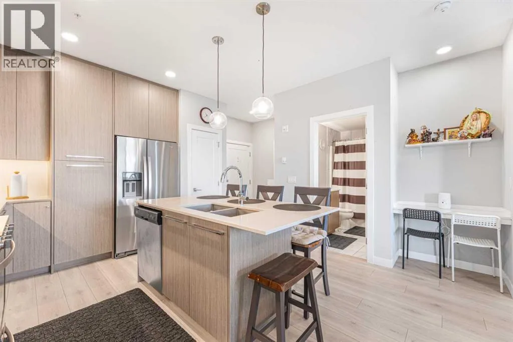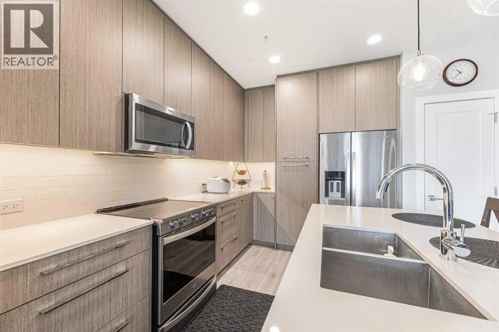 Welcome to this pristine 2 bedroom, 2 bathroom corner apartment that comes with titled underground parking. This unit is one of the largest plans in the complex and is very sought after! As you enter, you'll notice the meticulous care the current owner has invested to maintain its new condition. Situated on the main floor, it offers the quietude of having no adjacent neighbors. The kitchen boasts floor-to-ceiling cabinetry, providing ample storage and a large island with eating area. The stainless steel appliances are in like-new, undamaged condition and the stove was recently upgraded. Luxury Vinyl Plank flooring and ceramic tiles grace the bath and laundry areas. The living room is welcoming with with an upgraded balcony sliding screen door for bug free enjoyment. The laundry room offers additional storage, and the machines are well-maintained. The complex is an oasis featuring a garden area for those who enjoy growing their own vegetables. There is party room for events, a theater room in building 2000, and a full gym, spin and yoga studios, and a pet spa in building 1000. Ample visitor parking is available. The building is Air BnB friendly for those looking to use for short term rental. Ensure you don't miss out on this exquisite apartment â book your viewing today! (id:27476)