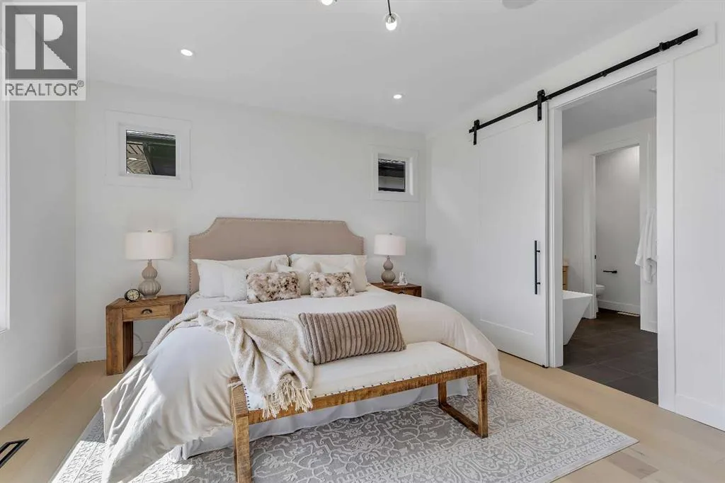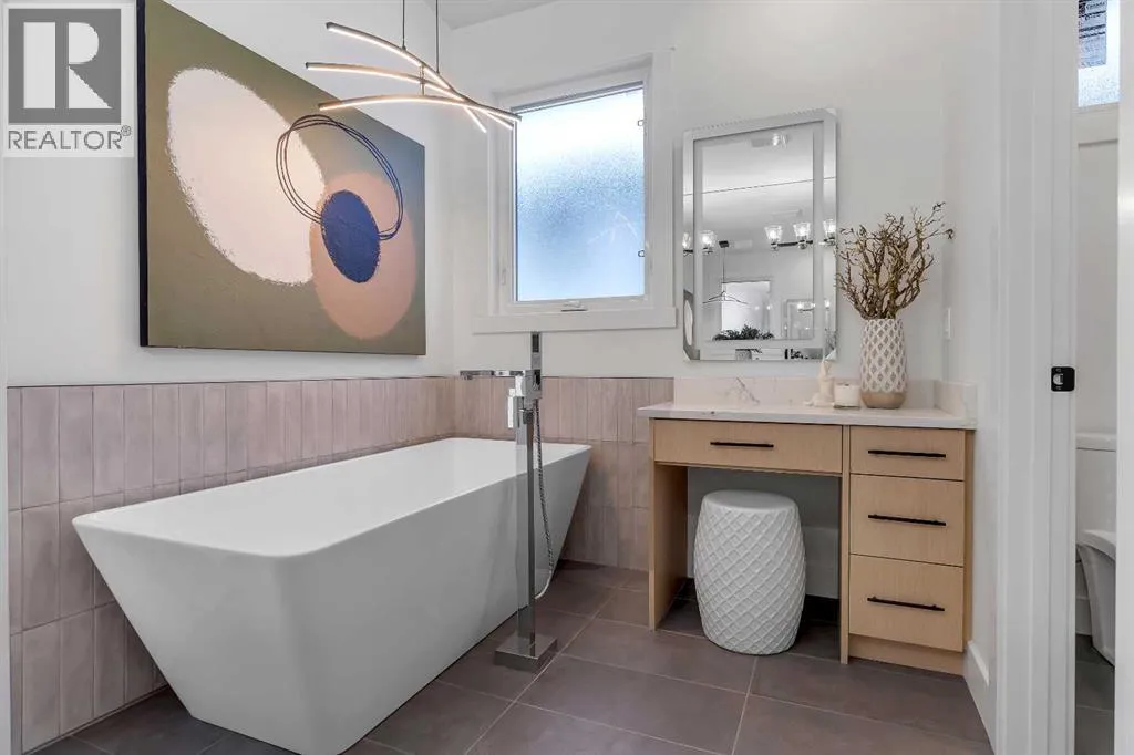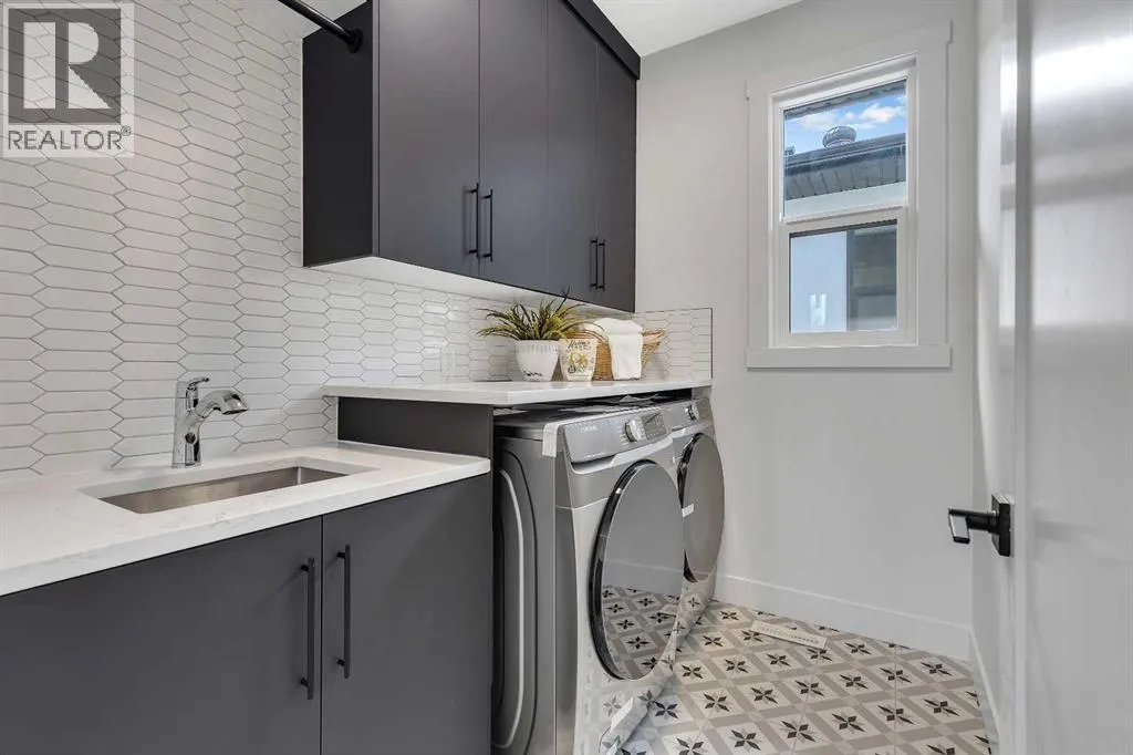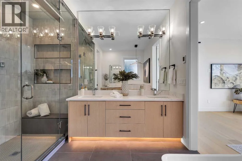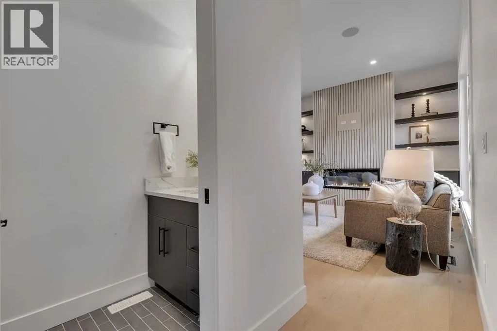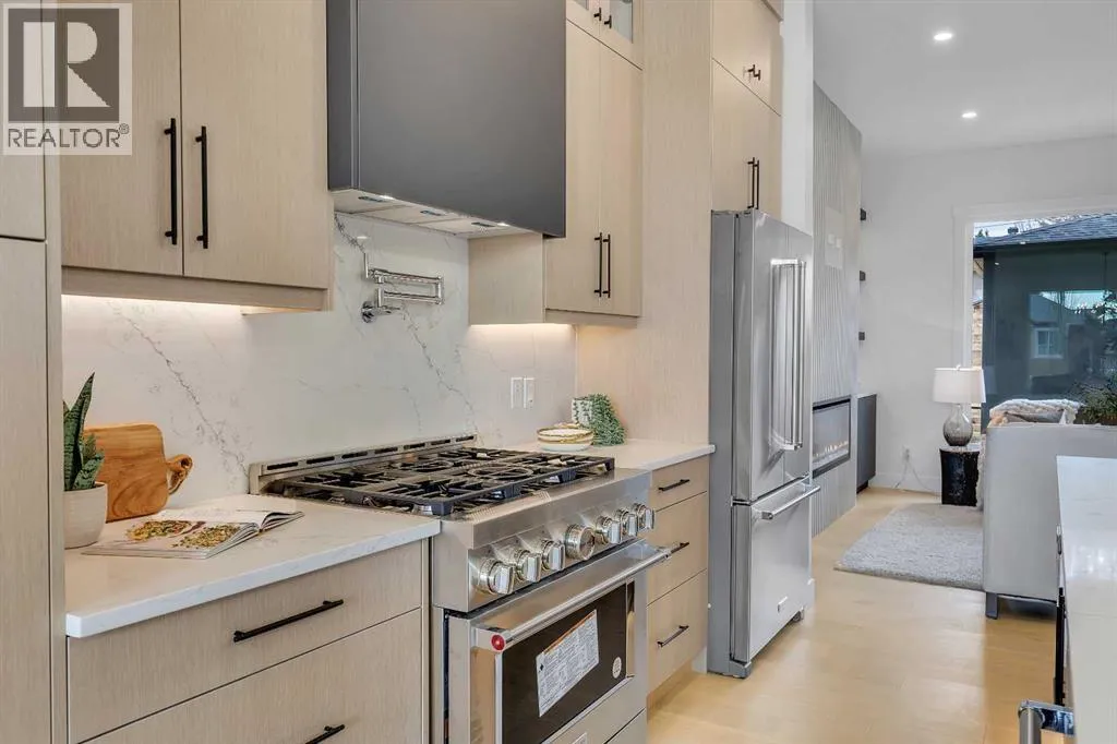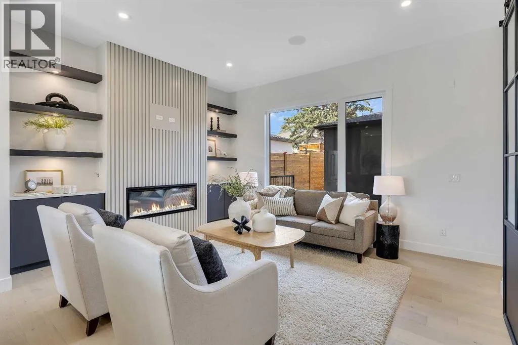 COLLINGWOOD LUXURY CUSTOM HOME | ATTACHED DOUBLE GARAGE | LEGAL 2 BDRM BASEMENT SUITE. Welcome to 42 Collingwood Place. Situated on a 32â x 100â lot atop a quiet cul-de-sac in Collingwood Place, this custom-built home features over 3,000 sqft of total living area. Every detail has been meticulously planned for OPTIMAL LIVING. The main floor features 10â CEILINGS and a bright south-facing dining area to house all your guests over the holidays. The chefâs kitchen is built with an OVERSIZED ISLAND with quartz counters and LED-under-lighting, matching quartz backsplash, full-height cabinetry and a pot-filler above the 36â gas range. A COFFEE BAR with cabinetry and a beverage fridge adds convenience. A private office is secluded by custom French-inspired iron and glass casement sliding doors provides a sanctuary. The living room features an electric fireplace, custom LED shelving, an in-ceiling speaker system, and a powder room near the mudroom which featuring floor-to-ceiling cabinetry for ample gear storage. The ATTACHED double garage is FULLY INSULATED, drywalled, and includes a 200 AMP breaker, and gas heater and EV charger rough-ins. Upstairs, the primary suite offers breathtaking views of DOWNTOWN CALGARY and the ROCKY MOUNTAINS, an expansive walk-in closet, and a dual vanity ensuite with an OVERSIZED SOAKER TUB, STEAM SHOWER with dual niches, and a standalone VANITY COUNTER with a light-up mirror. A frosted glass window provides privacy while allowing in natural light. The laundry room features quartz counters, a sink, and full-height cabinetry. Two additional bedrooms overlook NOSEHILL PARK, each with custom closet built-ins. A main bathroom and linen closet complete this level. All bathrooms (except the powder room) include IN-FLOOR HEATING and LED underlighting. The LEGAL BASEMENT SUITE boasts 9â ceilings, a spacious kitchen, a large living area, and TWO BEDROOMS. The suite comes with a full kitchen / laundry appliance package. The mechanical room features TWO furnaces, an A/C unit for the main, a sump pump, radon rough-in, and an oversized hot water tank. The private courtyard-style backyard (vinyl decking) includes outdoor speaker rough-ins and a gas outlet for a BBQ or fire table. CONFEDERATION PARK is just steps away to the south, with Nose Hill Park to the north. Short walk to Collingwood elementary school , St. Francis High School & bus stops, plus easy access to downtown. Close to all amenitiesâCalgary Winter Club, shopping malls, U of C, Children and Foothills Hospitals. This home blends urban convenience with natural beauty and offers downtown & mountain views. Fully hardwired for security systems and cameras, it also qualifies for CMHCâs 30-year amortization and GST rebatesâcheck with your lender/accountant! Built by Archway Developments, a family-owned business with 20+ years of experience, this home is backed by Progressive New Home Warranty. (id:27476)