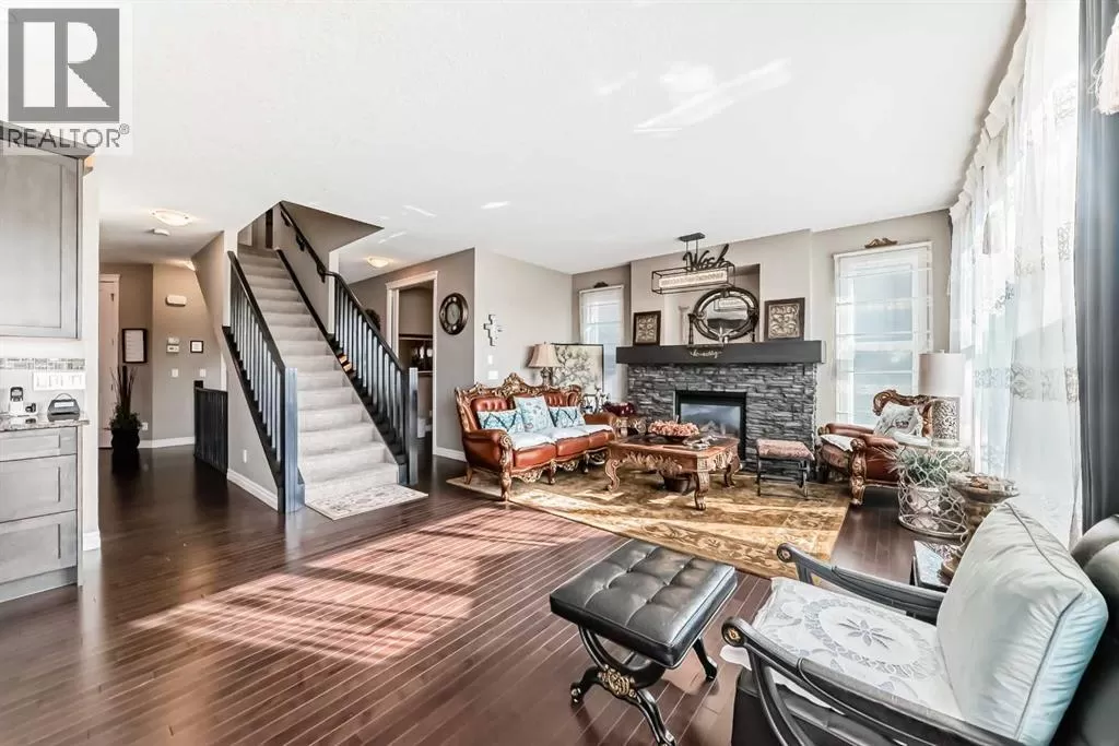 Exceptional Two-Storey Home Backing onto the Pond in Legacy. Welcome to this remarkable residence located in one of Legacyâs most sought-after locations. Backing directly onto the pond and playground, this home offers over 2,700 sqft of well-designed living space with a walk-out basement and private access to the communityâs scenic walking paths. The main floor features 9 ft. ceilings and an open concept layout highlighted by hardwood flooring throughout the living room, dining room, and den. All main floor doors are upgraded to 8 ft, creating a grand and elegant look. The chefâs kitchen is equipped with a gas cooktop, built-in oven, and a functional design that is ideal for both everyday living and entertaining. Upstairs, the home offers a spacious bonus room along with four bedrooms, including the primary suite with a 5-piece ensuite featuring dual sinks, a large soaker tub, and a separate shower. A conveniently located second-floor laundry room adds to the practicality of the space. Additional features include central air conditioning, an oversized garage, and endless potential with the walk-out basement. The home combines comfort, style, and functionality, making it an ideal choice for families of all sizes. Situated within close proximity to schools, parks, shopping, and numerous amenities, this property seamlessly blends convenience with modern living. Donât miss this rare opportunity to own a feature-rich home in a prime Legacy location backing onto the pond. (id:27476)
