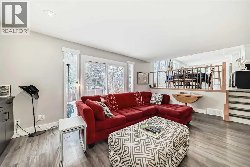 *Open House: Saturday, Nov 15th between 1:00-3:00 pm* Rarely available in this prestigious location! Come home to your unique 2 storey split home located on a huge pie lot, nearly a quarter acre with a south-southwest backyard, nestled in a quiet cul-de-sac! Enjoy the tranquility, peaceful and park-like yard with mature trees and space to play or relax near the patio stone fire pit. Renovation, with all permits in place, includes upgraded windows, smart home system, smooth ceilings throughout 3,400+ square feet of finished space, a truly stunning transformation. Enter into the main level showcasing engineered hardwood, adjacent living room with back lit crown mouldings and a raw edge, custom milled fireplace mantel complimenting the remote controlled gas fire. The expansive kitchen boasts an impressive 11' quartz island with waterfall edge, sink with touch sensor faucet, and hidden USB, electrical outlets and wireless phone charger. High-end stainless steel appliance package includes a gas range with pot filling faucet, dramatic hood fan, separate refrigerator and wine fridge, complimented with detailed backsplash. Featuring soft close cabinet hinges and plenty of pantry storage, the kitchen is naturally sunlit with French doors and beautiful windows. Entertain guests with the open concept dining overlooking the family room. Step down to the walkout level into the family room designed with luxury vinyl plank flooring and multiple focal points being the breath taking stonework, gas fireplace and patio door. Conveniently the guest bathroom and laundry are near the garage entrance. Head upstairs to the primary wing redesigned with a vast sitting area, private balcony and luxurious en-suite! Rejuvenate with heated tile flooring, huge walk-in shower equipped with rain shower head and multiple jets or soak in the stand alone bathtub. LED mirrors rimmed with lighting soothe the mood over the twin sinks. The primary wing expands into the loft with a dormer and skylight allo wing in rays of sunlight. Smart home lighting is controlled from the bedside switch all the way to the en-suite! The upper level has two more large bedrooms, a bonus room and full bathroom also with heated tile flooring. The fully finished basement has daylight pouring into the recreation room, another full luxury bathroom next to the fourth bedroom, den, workshop and utility room. Enjoy indoor / outdoor living with the low maintenance deck overlooking the yard and patio with spaces to host large gatherings. Double garage with twin doors, plenty of parking for your family and friends! Close proximity to trails, Southland Leisure Centre, Rockyview Hospital, Heritage Park, Glenmore Park, shopping and sought after schools! Book your showing today! (id:27476)