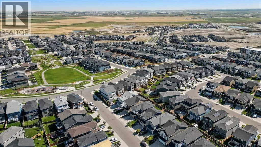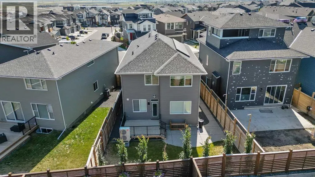 4 Bedrooms | 3.5 Washrooms | Separate Side Entrance | 9 ft Ceiling Basement | Upgraded KitchenAid Appliances | Energy Efficient with Solar Panels and Heat PumpWelcome to this beautifully upgraded 2020 built home in Livingston, warm, modern, and thoughtfully designed from top to bottom. With a brand new roof, siding, and solar panels, this home blends comfort and efficiency with incredible style.The main floor features a bright open layout anchored by a chefâs kitchen complete with KitchenAid appliances, a 36 inch gas stove, a wrap around quartz and granite island, a dual zone wine and beverage cooler, and extra cabinetry. The dining area and inviting living room, highlighted by a striking split marble feature wall, create a perfect space for gatherings or quiet evenings in.Upstairs, you will find three comfortable bedrooms, including a relaxing primary retreat with a five piece ensuite and a generous walk in closet with direct laundry access. A cozy bonus room offers flexible space for family time or a quiet workspace.The nine foot ceiling basement adds incredible versatility, featuring a wet bar, a fourth bedroom, and a separate side entrance, making it ideal for extended family, guests, or future development as a private living area.Outside, enjoy a fully fenced yard with low maintenance landscaping, a BBQ gas line, and a garage with fourteen foot ceilings and plenty of overhead storage.Energy efficiency shines with a high efficiency heat pump, Goodman furnace, HRV system, and a WiFi Ecobee thermostat, while smart home features such as security cameras, programmable lighting, and a smart garage opener add everyday convenience.Warm, stylish, and move in ready, this is Livingston living at its best. (id:27476)
