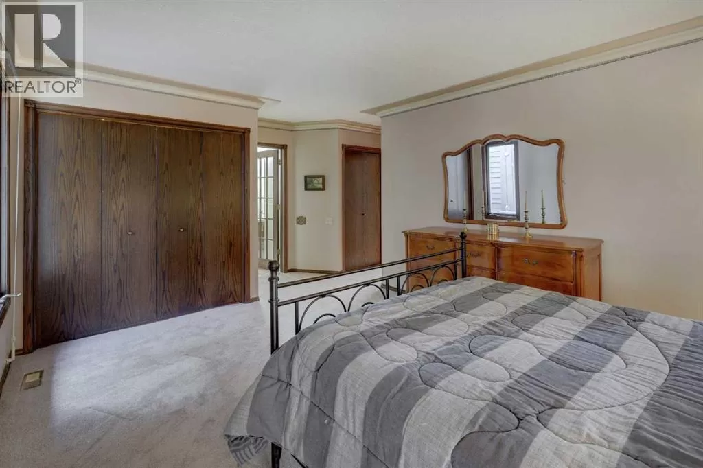Welcome to this beautifully maintained, custom-built bungalow tucked away on a quiet street in the highly coveted community of Edgemont. From the moment you step inside, the spacious front entry & striking curved staircase set the tone for a home that balances elegance with everyday comfort. The thoughtfully designed floor plan features a bright formal living room & dedicated dining areaâperfect for entertaining family & friends. At the heart of the home, the updated kitchen offers newer cabinetry, a generous pantry, a central island, & a cozy breakfast nook that seamlessly opens into the inviting family room, complete with a charming brick-facing fireplace. The main floor also boasts a generous primary retreat with a private 3-piece ensuite & three closets, along with two additional well-sized bedrooms & a full bath. Downstairs, the fully finished basement expands your living space with an open rec/games room (pool table included!), a second fireplace, wet bar, den/office, a&nd plenty of storage. Step outside to your private backyard oasisâbeautifully landscaped with lush garden beds, a large deck for summer gatherings, & a durable metal fence. Notable updates include: a new hot water tank (2025), brand-new basement carpet (2019), hardwood in the main floor hallway, newer shingles & skylight (approx. 12 years), a new garage door, & a double attached garage. With its spacious layout, timeless character, & prime location in a mature, family-friendly neighbourhood with top-rated schools, amenities, & green spaces just steps away, this home truly has it all. (id:27476)