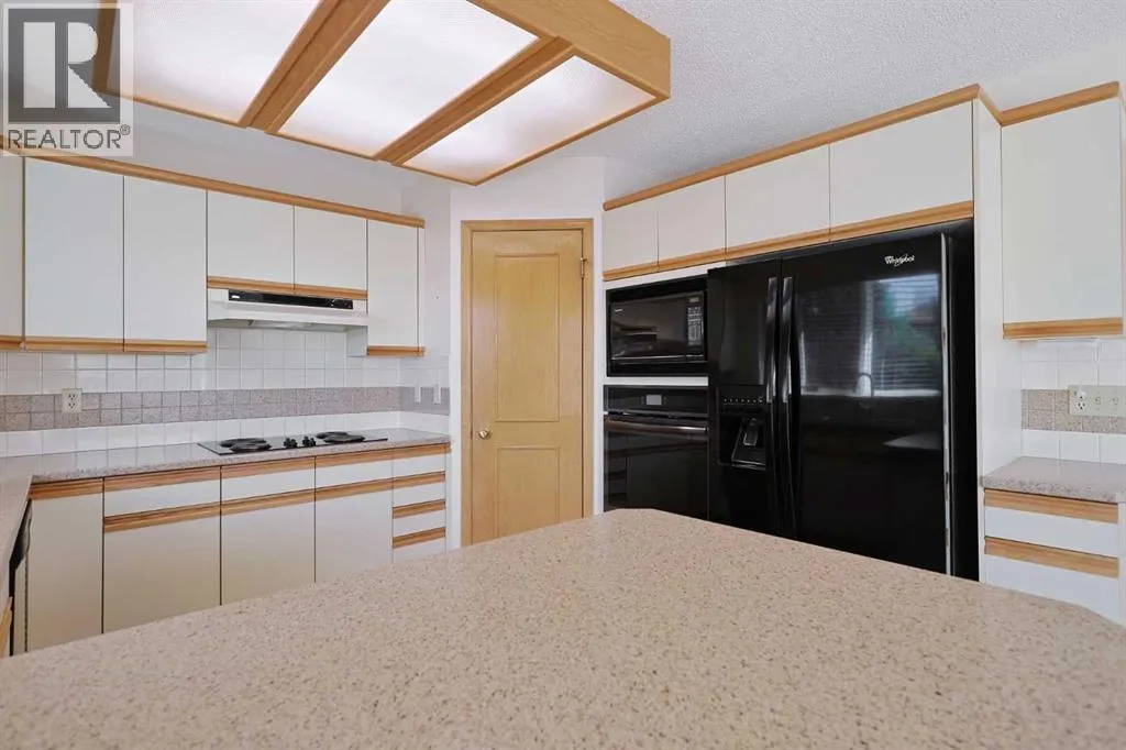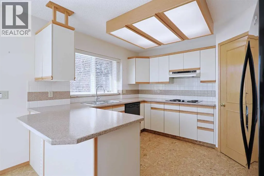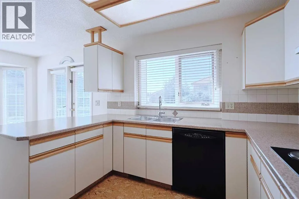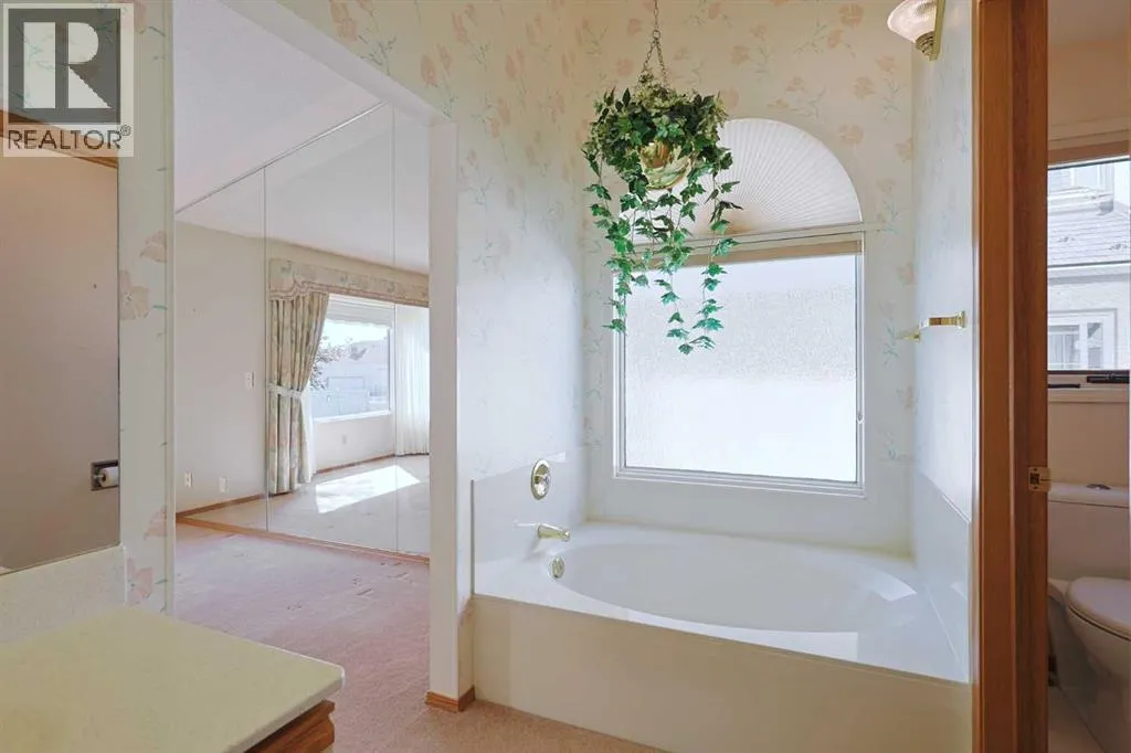 Steps to a park & walking distance to the Edgemont Superstore shopping complex is this wonderful former showhome in the highly-desirable golf course community of the Hamptons. Offering a total of 4 bedrooms & 3 full baths, this fully finished bungalow enjoys soaring vaulted ceilings & central air, heated oversized 2 car garage, beautiful hardwood floors, South backyard & a host of improvements including new roof, stucco exterior & the polyB pipes replaced with PEX. Available for quick possession, this fantastic estate home has a sensational floorplan bathed in natural light, & features a sunny living room with floor-to-ceiling windows, open to the large dining room which will easily fit your family dinners. The bright eat-in kitchen & nook â complemented by a big bay window & cork floors, has loads of cabinet space, built-in desk, walk-in pantry & the appliances include a cooktop stove & new (2025) built-in convection oven. Main floor has 2 spacious bedrooms & 2 full bathrooms; the ownersâ retreat has a huge walk-in closet, bay window & ensuite with soaker tub, separate shower & double vanities. Lower level is finished with 2 more bedrooms, another full bath & rec room with wet bar, gas fireplace & built-in bookcases. Thereâs also plenty of additional space for storage or future development. Main floor laundry complete with built-in cabinets & Whirlpool washer & dryer. Other extras include Hunter Douglas blinds, low-flow/dual-flush toilets, natural gas line for your BBQ on the deck, central vacuum system & storage shed in the South backyard with maintenance-free vinyl fencing, deck (with new vinyl decking in 2023) & patio. Roof/eaves/downspouts are brand new in 2025 & new stucco exterior in 2024. Located on this terrific corner lot only a few short minutes walk to bus stops & the Hamptons Park tennis courts, quick commute to the Hamptons School & neighbourhood shopping, & easy access to area recreational amenities, University of Calgary & hospitals, downtown & so mu ch more! (id:27476)