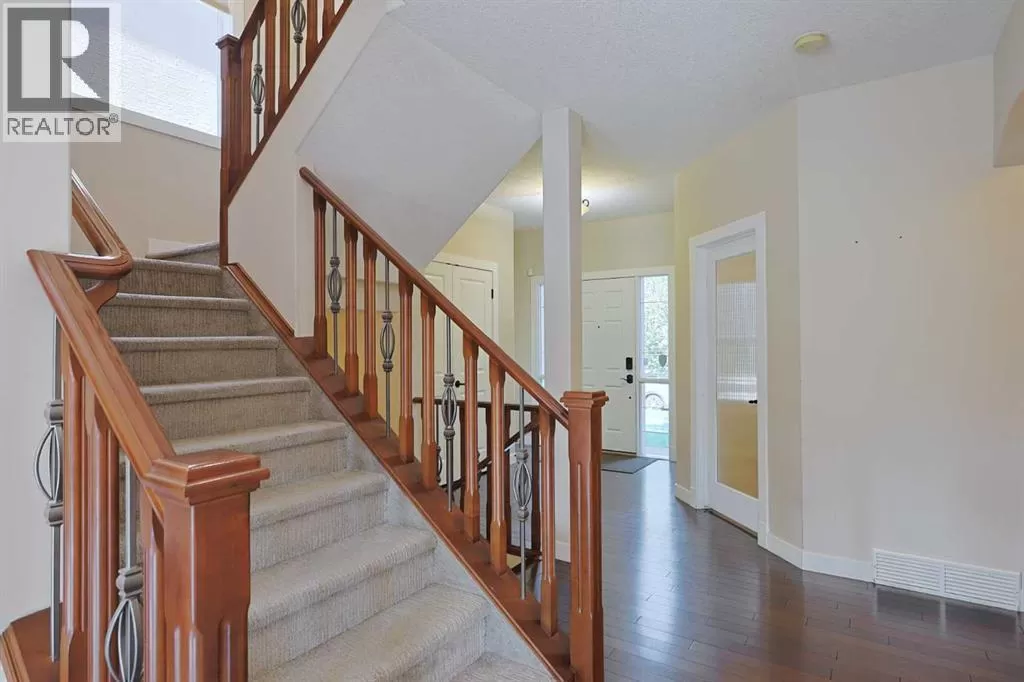 This is your chance to make your home in one of Northwest Calgaryâs most desirable communitiesâ¦welcome to Tuscany! Located here in Tuscany Hillside Estates, this wonderful two storey walkout enjoys a total of 4 bedrooms + den, granite counters & central air, oversized 2 car garage & is walking distance to a playground & schools. Available for quick possession, youâll love the sun-drenched & open concept flow of the main floor of this fully finished home, which features 9ft ceilings & hardwood floors, spacious living room with fireplace & large windows, bright & airy dining room with access to the oversized balcony (& wired for outdoor speakers) & cherrywood kitchen with walkthrough pantry, tile backsplash & Samsung stainless steel appliances. Total of 3 bedrooms & 2 full bathrooms on the air-conditioned 2nd floor including the ownersâ retreat with big walk-in closet & ensuite with double vanities, separate shower & corner soaker tub. Over the garage is an incredible bonus room with soaring vaulted ceilingsâ¦the perfect space for your media room. The walkout level â with upgraded laminate floors with cork underlay, is beautifully finished with a 4th bedroom, rec room with granite-topped wet bar & wood-burning fireplace plus bathroom with heated floors & steam shower with aromatherapy bundle. Main floor also has a dedicated home office & laundry/mudroom with extensive built-ins. Additional extras include built-in ceiling speakers, oversized garage with sink & aggregate driveway, rough-in for hot tub on the walkout patio (complete with junction box with independent circuit), pre-wired for satellite, separate connection for hot water on the outside tap, 2 year old hot water tank & if you prefer a gas stove, there is a gas line that connects to the kitchen. All 4 of Tuscanyâs schools are just minutes awayâ¦walking distance to Tuscany School & St. Basil Elementary/Junior High, & short drive to Eric Harvie School & Twelve Mile Coulee School. Prime location close to Tuscany Club & Market, neighbourhood greenspaces & the Tuscany LRT, & quick access to Stoney/Crowchild Trails to take you to Crowfoot Centre, University of Calgary & hospitals, major retail centers & downtown. (id:27476)