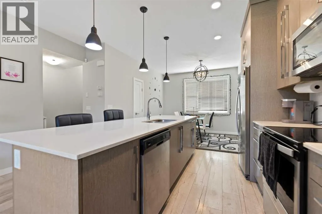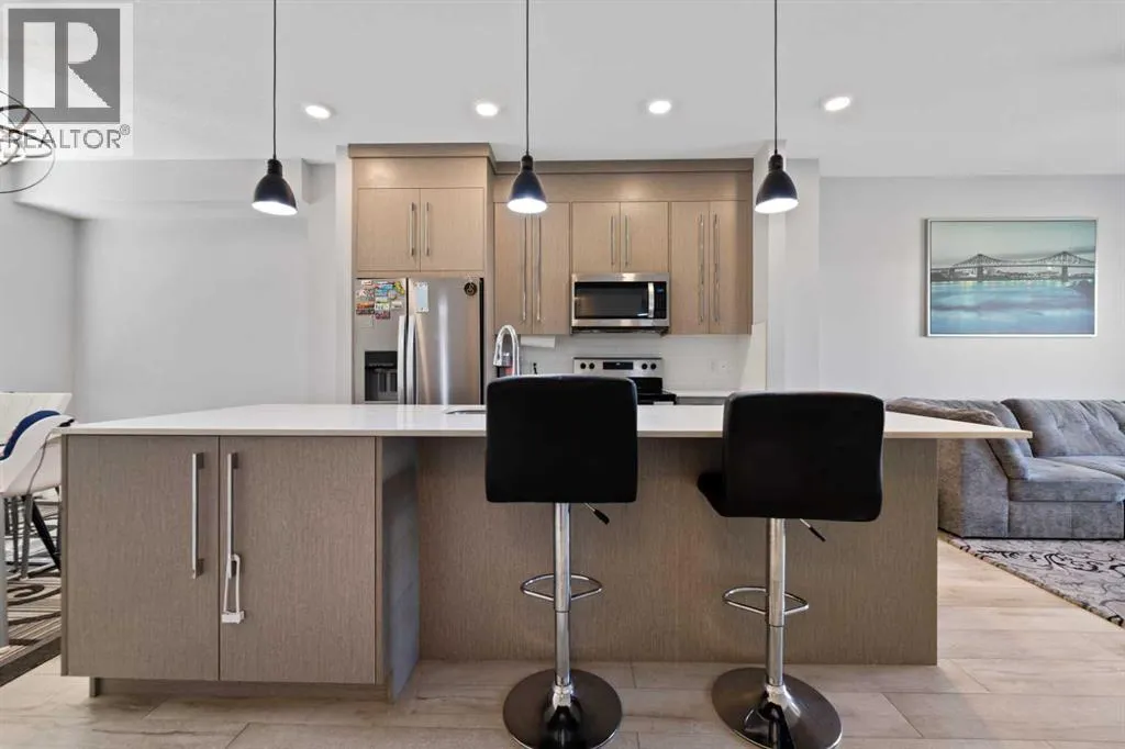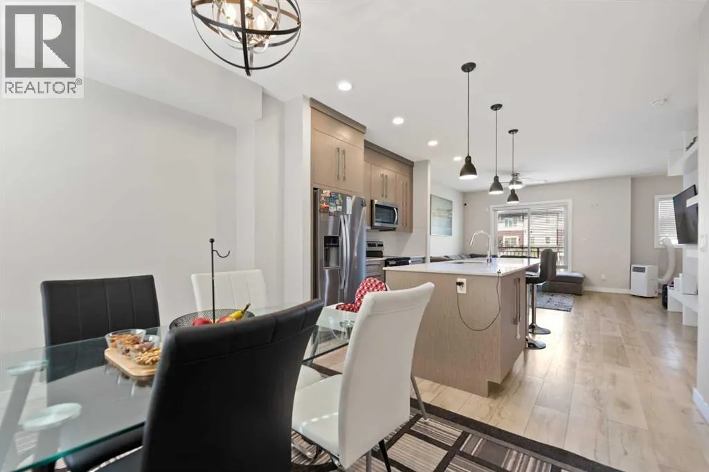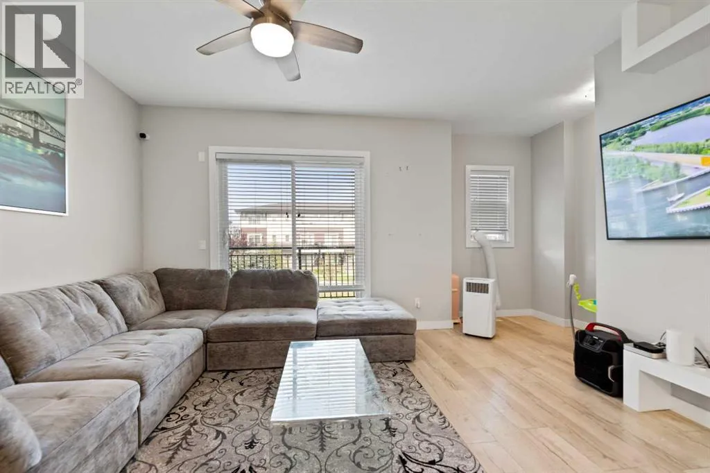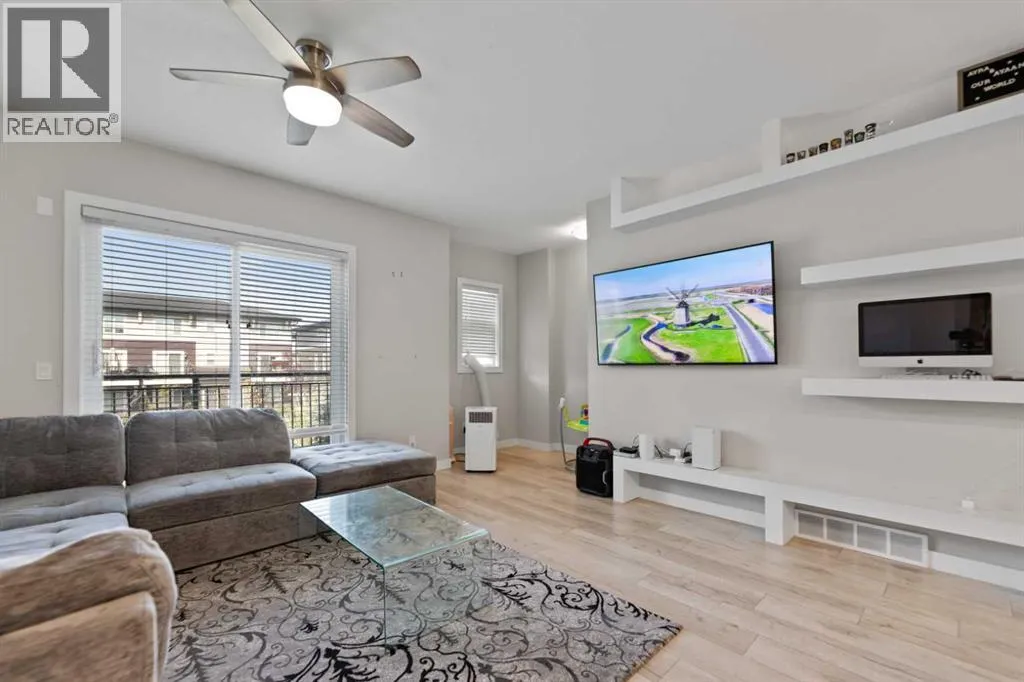 Welcome to this bright and spacious 4-bedroom, 2.5-bath townhome in the vibrant, family-oriented community of Cornerstone NE. Thoughtfully designed and flooded with natural light thanks to extra windows, this home offers the perfect blend of comfort, function, and community charm. The main floor features a large, open-concept living area with built-in shelvingâgreat for keeping things stylish and organized. The kitchen is a standout with sleek quartz countertops, plenty of prep space, and a seamless flow into the dining area, ideal for hosting or family dinners. Step outside onto the large balcony that overlooks a peaceful courtyard where kids play and neighbours gatherâbringing the heart of this friendly community to life. A bonus bedroom, playroom or home office on the main level offers flexibility for growing families or those working remotely. Upstairs, you'll find three well-sized bedrooms, including a generous primary suite with tray ceilings, a walk-in closet, and a four-piece ensuite. Fresh new carpet throughout adds a cozy touch, and the double attached garage means convenience is always at your doorstep. With schools, parks, shopping, and public transit just minutes away, this home offers everything you need for daily life and long-term value. Whether you're a growing family, first time home buyer or a savvy investor, this one checks all the boxes. Come see the space, feel the light, and picture yourself at home in Cornerstone (id:27476)