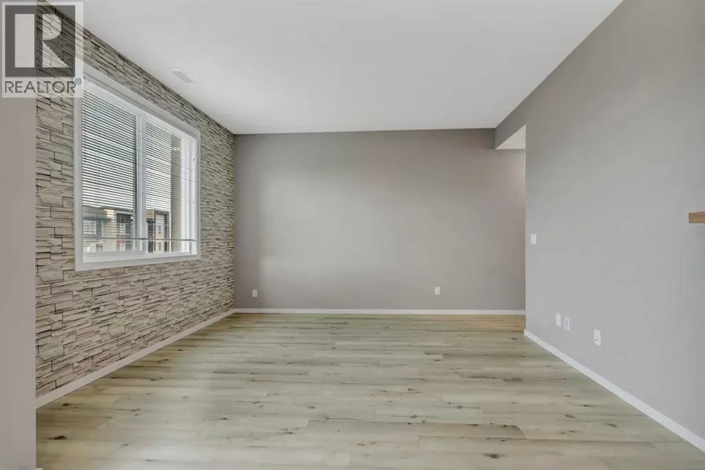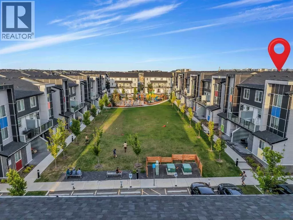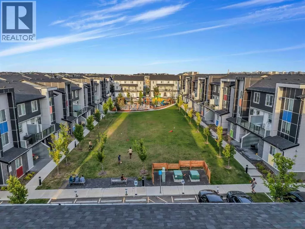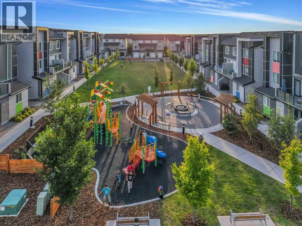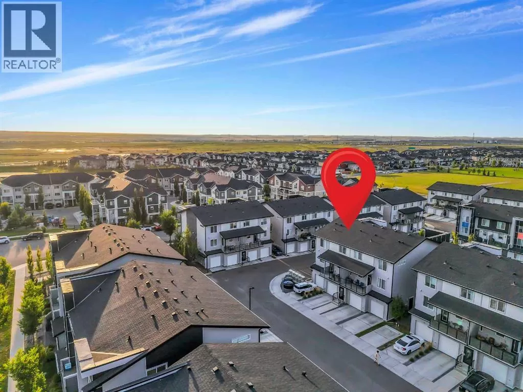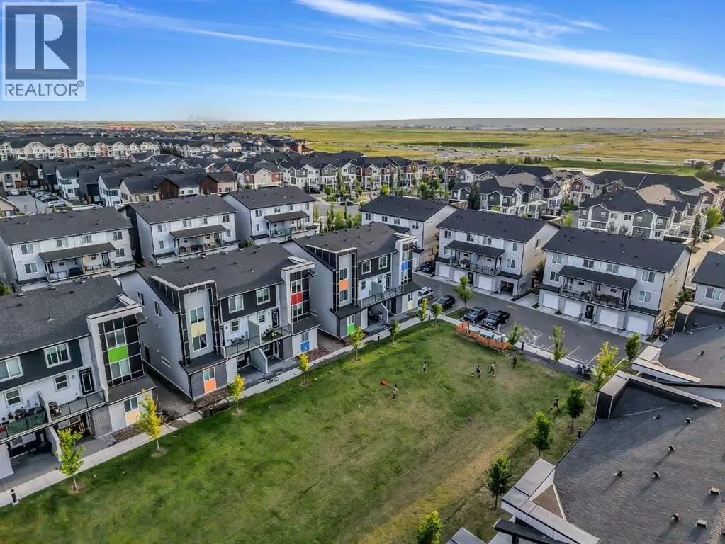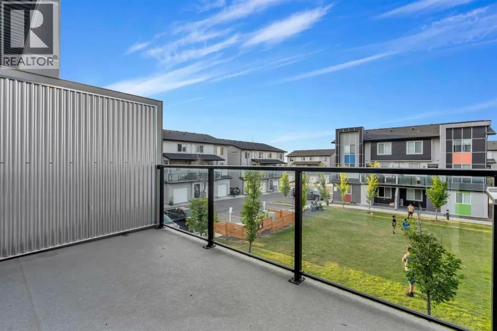 FRONTS ONTO COURTYARD WITH PLAYGROUND & PERGOLAS | END UNIT WITH ATTACHED GARAGE & DRIVEWAY | 2 BED & 2.5 BATH | BBQ GAS LINE | LOW CONDO FEE's! This stylish end-unit townhome in Redstone combines smart design with everyday comfort, making it an appealing choice for both homeowners and investors. Overlooking a beautifully landscaped courtyard with a playground and pergolas, it offers a setting that blends connection and convenience. The main floor is finished with durable LVP flooring and a neutral palette that enhances the open concept layout. A modern kitchen anchors the space with white cabinetry, subway tile backsplash, stainless steel appliances and a pantry for extra storage, creating a hub that is both functional and attractive. The living area features a stone accent wall and oversized window that frames courtyard views while adding natural light. Extend the living space outdoors to a glass-railed deck with a gas line for BBQs, ideal for hosting gatherings or relaxing in the evening. A well-placed powder room completes this level. Upstairs, two generously sized primary bedrooms each include a private four-piece ensuite, providing both privacy and flexibility for families or roommates. Convenient upper laundry adds everyday practicality. Parking is made simple with an attached insulated and drywalled single garage plus a driveway, while ample visitor parking throughout the complex ensures ease for guests. Families will appreciate the direct access to Redstone View Lake with its pathways and natural spaces, along with proximity to new schools, playgrounds, and community amenities. Investors will value the low condo fees, modern finishes and strong rental appeal of a dual primary suite layout. Redstoneâs location offers excellent connectivity with quick routes to Metis Trail, Stoney Trail, Country Hills, Costco, CrossIron Mills, and Calgary International Airport. Whether you are looking for a home that supports modern family living or an investment that balanc es function with long-term value, this end unit presents an outstanding opportunity! (id:27476)