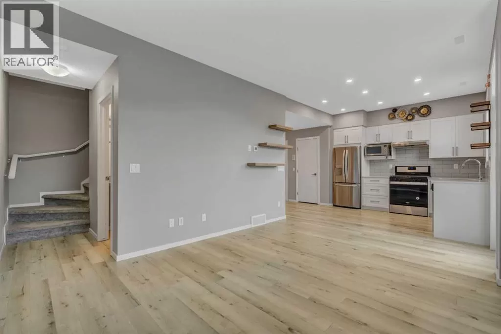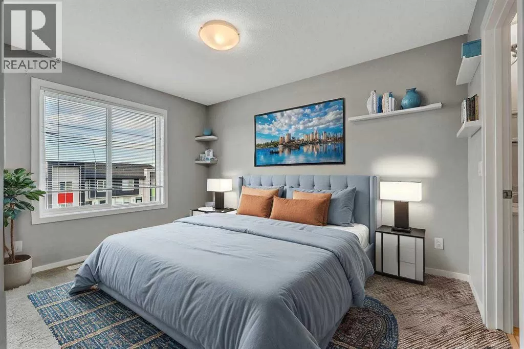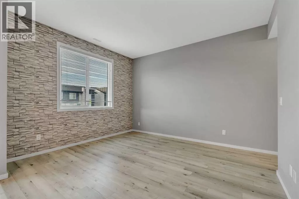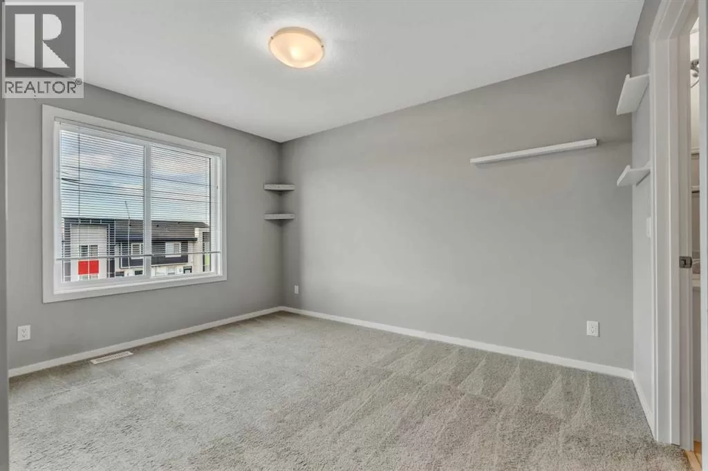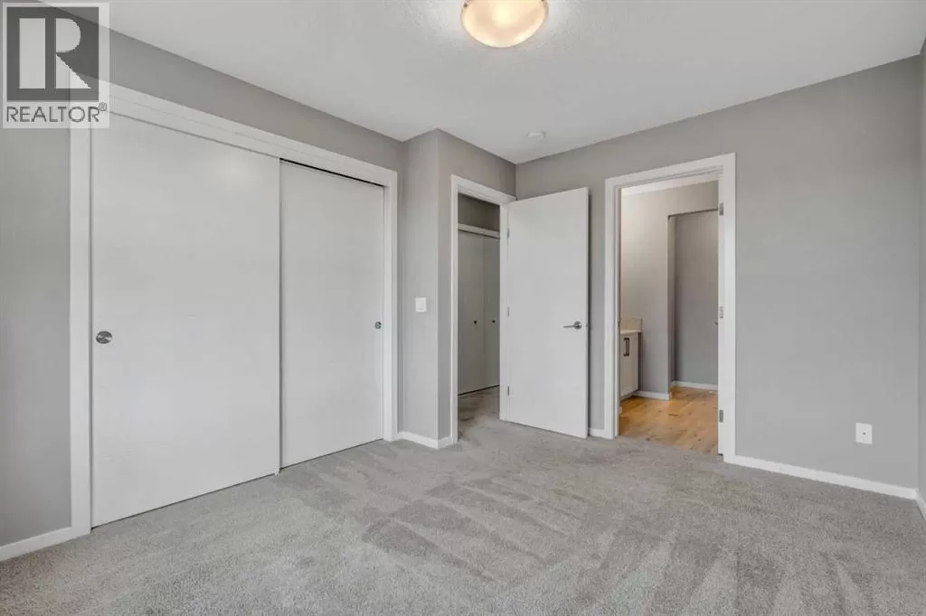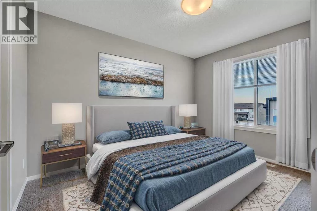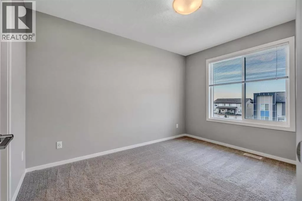 FRONTS ONTO COURTYARD WITH PLAYGROUND & PERGOLAS | END UNIT WITH ATTACHED GARAGE & DRIVEWAY | 2 BED & 2.5 BATH | BBQ GAS LINE | LOW CONDO FEE's! This stylish end-unit townhome in Redstone combines smart design with everyday comfort, making it an appealing choice for both homeowners and investors. Overlooking a beautifully landscaped courtyard with a playground and pergolas, it offers a setting that blends connection and convenience. The main floor is finished with durable LVP flooring and a neutral palette that enhances the open concept layout. A modern kitchen anchors the space with white cabinetry, subway tile backsplash, stainless steel appliances and a pantry for extra storage, creating a hub that is both functional and attractive. The living area features a stone accent wall and oversized window that frames courtyard views while adding natural light. Extend the living space outdoors to a glass-railed deck with a gas line for BBQs, ideal for hosting gatherings or relaxing in the evening. A well-placed powder room completes this level. Upstairs, two generously sized primary bedrooms each include a private four-piece ensuite, providing both privacy and flexibility for families or roommates. Convenient upper laundry adds everyday practicality. Parking is made simple with an attached insulated and drywalled single garage plus a driveway, while ample visitor parking throughout the complex ensures ease for guests. Families will appreciate the direct access to Redstone View Lake with its pathways and natural spaces, along with proximity to new schools, playgrounds, and community amenities. Investors will value the low condo fees, modern finishes and strong rental appeal of a dual primary suite layout. Redstoneâs location offers excellent connectivity with quick routes to Metis Trail, Stoney Trail, Country Hills, Costco, CrossIron Mills, and Calgary International Airport. Whether you are looking for a home that supports modern family living or an investment that balanc es function with long-term value, this end unit presents an outstanding opportunity! (id:27476)