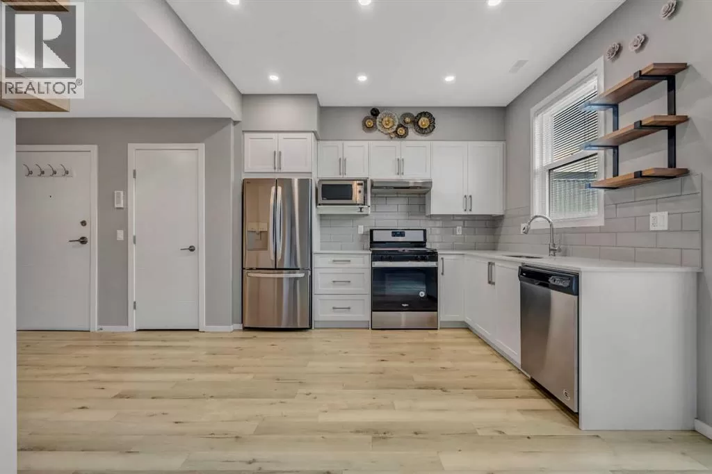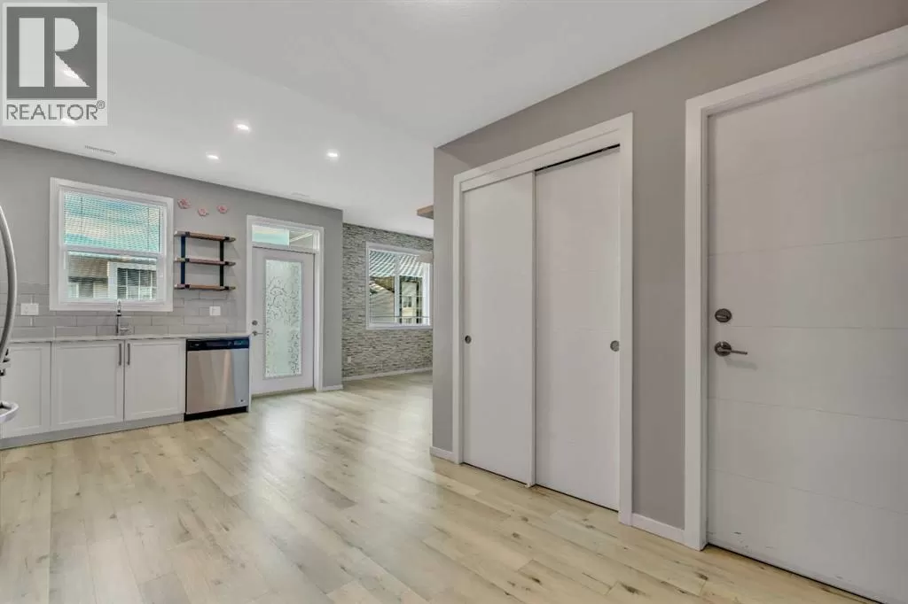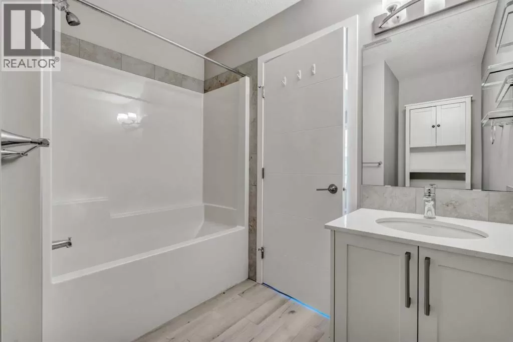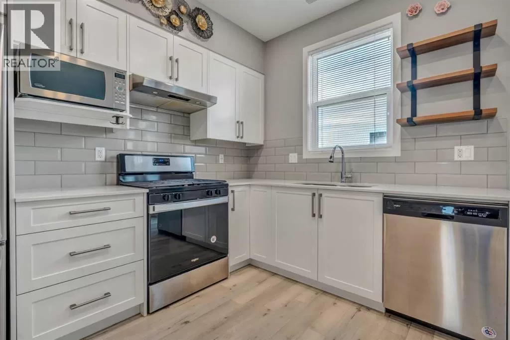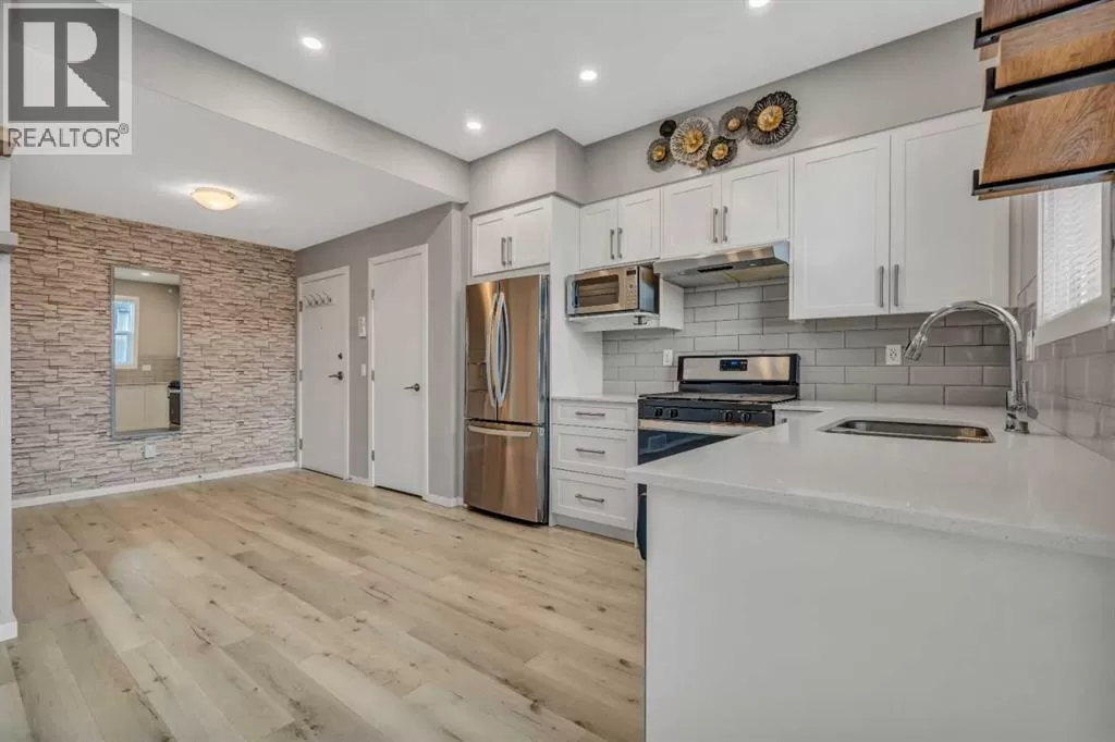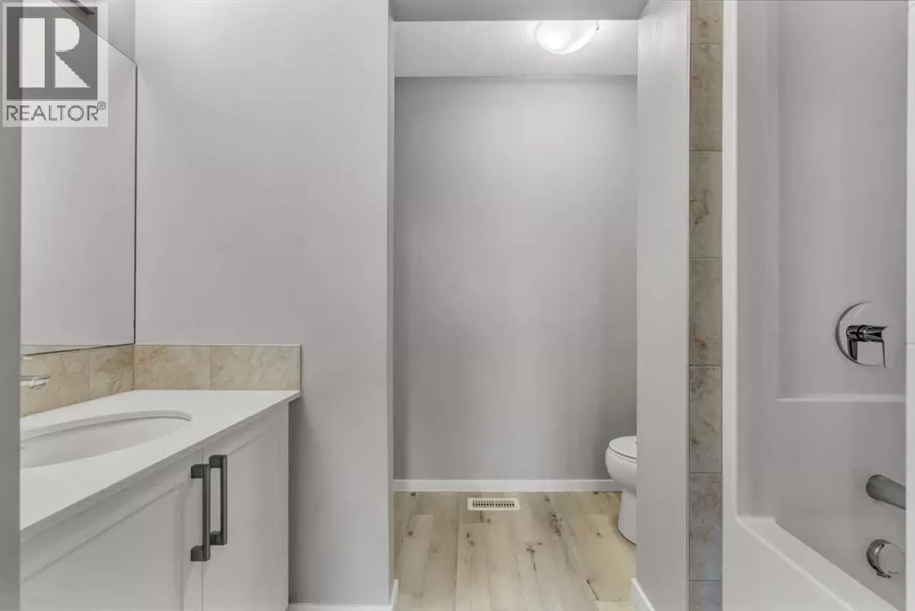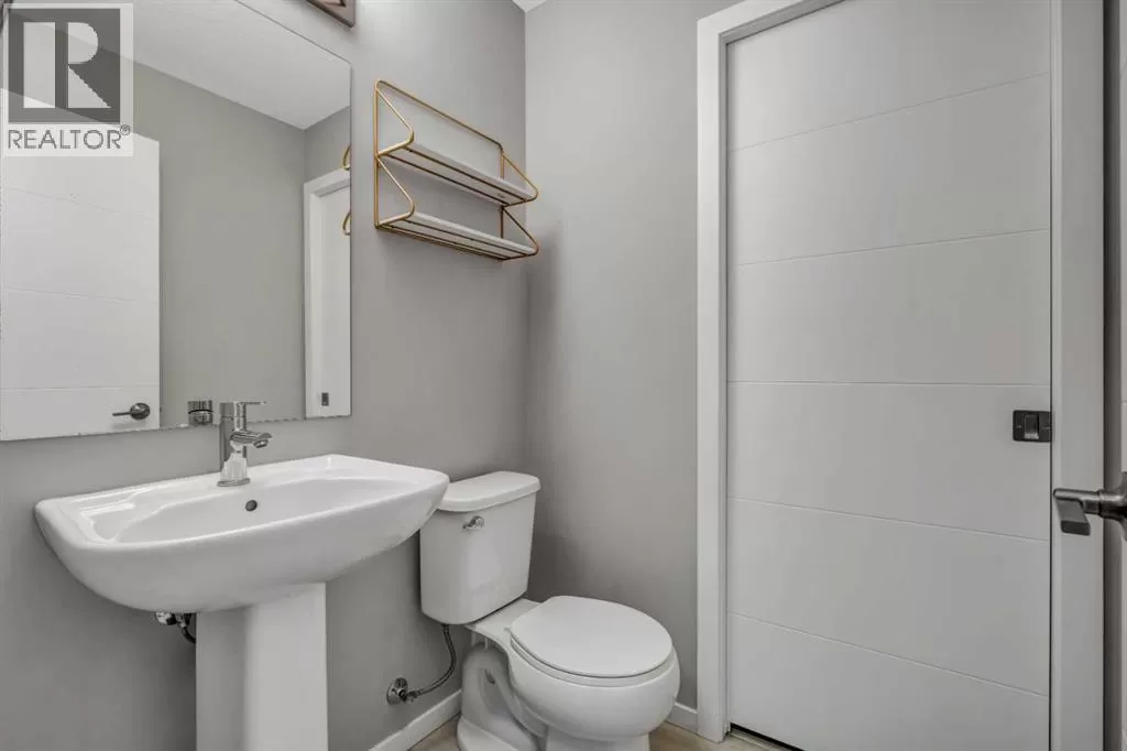 FRONTS ONTO COURTYARD WITH PLAYGROUND & PERGOLAS | END UNIT WITH ATTACHED GARAGE & DRIVEWAY | 2 BED & 2.5 BATH | BBQ GAS LINE | LOW CONDO FEE's! This stylish end-unit townhome in Redstone combines smart design with everyday comfort, making it an appealing choice for both homeowners and investors. Overlooking a beautifully landscaped courtyard with a playground and pergolas, it offers a setting that blends connection and convenience. The main floor is finished with durable LVP flooring and a neutral palette that enhances the open concept layout. A modern kitchen anchors the space with white cabinetry, subway tile backsplash, stainless steel appliances and a pantry for extra storage, creating a hub that is both functional and attractive. The living area features a stone accent wall and oversized window that frames courtyard views while adding natural light. Extend the living space outdoors to a glass-railed deck with a gas line for BBQs, ideal for hosting gatherings or relaxing in the evening. A well-placed powder room completes this level. Upstairs, two generously sized primary bedrooms each include a private four-piece ensuite, providing both privacy and flexibility for families or roommates. Convenient upper laundry adds everyday practicality. Parking is made simple with an attached insulated and drywalled single garage plus a driveway, while ample visitor parking throughout the complex ensures ease for guests. Families will appreciate the direct access to Redstone View Lake with its pathways and natural spaces, along with proximity to new schools, playgrounds, and community amenities. Investors will value the low condo fees, modern finishes and strong rental appeal of a dual primary suite layout. Redstoneâs location offers excellent connectivity with quick routes to Metis Trail, Stoney Trail, Country Hills, Costco, CrossIron Mills, and Calgary International Airport. Whether you are looking for a home that supports modern family living or an investment that balanc es function with long-term value, this end unit presents an outstanding opportunity! (id:27476)