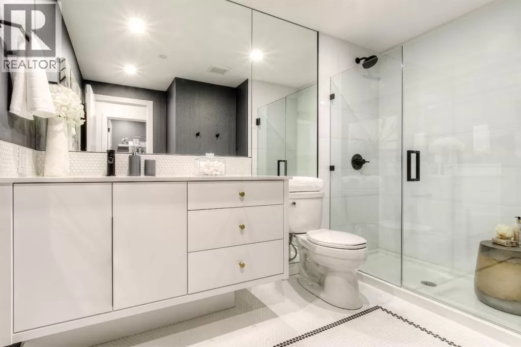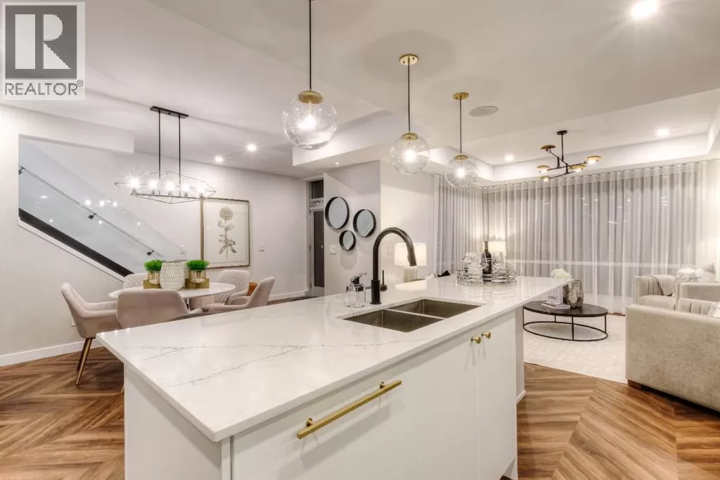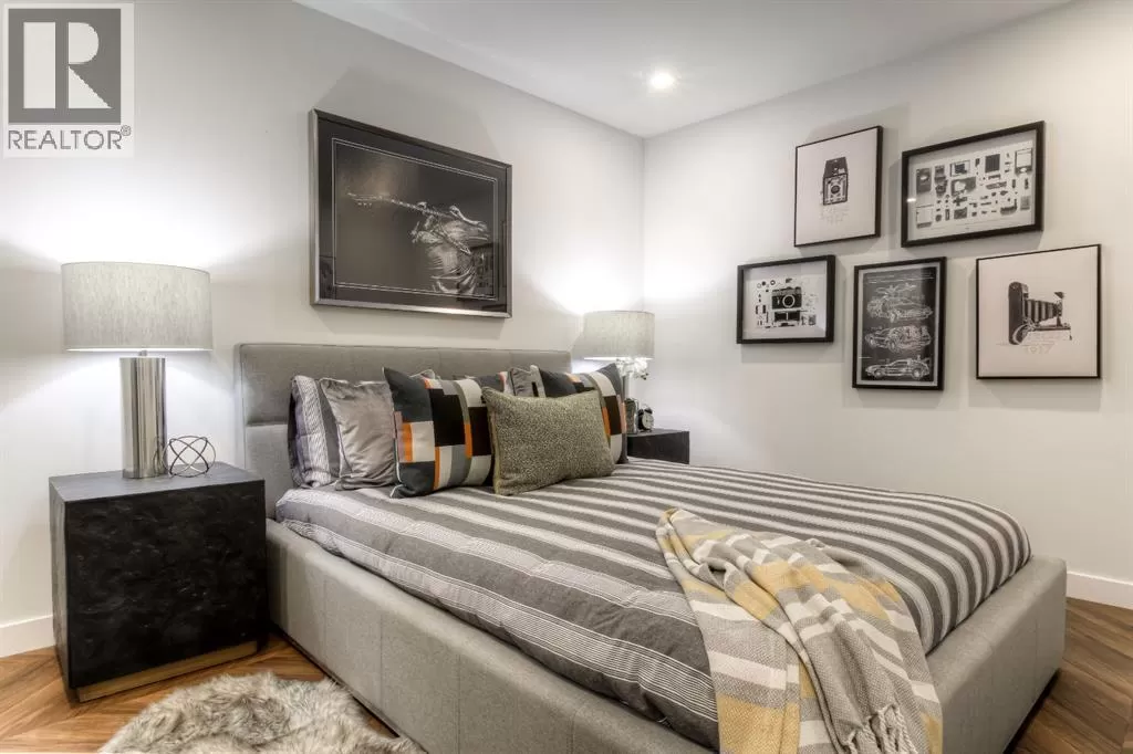 Located in the master-planned community of West District, Gateway offers an exceptional standard of living. This meticulously designed 2-level Brownstone is a perfect blend of modern elegance and sophisticated craftsmanship, featuring 3 Bedrooms, 3 Bathrooms, and a versatile main floor Den/Bedroom. It also includes 2 titled underground parking stalls, offering both convenience and security. From top to bottom, this home is crafted with the highest quality finishes and attention to detail. Inside, youâll find luxurious touches like air conditioning, Chevron luxury wide-plank flooring, and custom penny round mosaic tiles in every bathroom. LED pot lights illuminate the space, highlighting the elegantly painted ceilings throughout. The chef-inspired kitchen is a true centre piece, boasting a super matte finish cabinet with brushed gold hardware, high-end appliances, and exquisite design. It includes a gas cooktop, wall oven, an integrated 36" Fisher & Paykel fridge, panelled dishwasher, and soft-close custom cabinetry. The under-cabinet lighting and stunning quartz countertops and backsplash add to the visual appeal, making this kitchen a space both functional and beautiful. Other thoughtful features include a washer and dryer, custom window coverings for the floor-to-ceiling windows, and direct access to the private patio. The Primary Suite offers its own private balcony, providing the perfect retreat. Experience unparalleled luxury and comfort at Gateway. Stay tuned for an upcoming photo gallery that will showcase the full beauty of this one-of-a-kind residence. This is more than just a home â itâs a lifestyle! (id:27476)