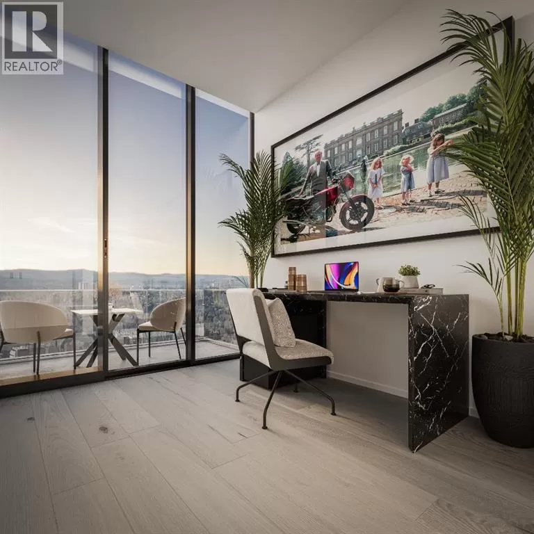 A rare opportunity has arrived with the unveiling of this exceptional 2-bedroom, 2.5-bathroom executive residence, perched in the heart of Calgary: Lincolnâa revolutionary tower that redefines urban sophistication. As the city's most anticipated luxury building, Lincoln is where unparalleled design, cutting-edge architecture, and functional elegance converge to create a living space beyond compare. From the moment you enter this meticulously crafted home, you are enveloped by sweeping, panoramic views framed by expansive windows that flood the space with natural light. The open-concept living area is an embodiment of refined living, where high-end finishes, and sleek modern lines coalesce to create an environment as stylish as it is serene. This home is designed for both form and function, offering a sanctuary of comfort in the heart of the city. A versatile den sits off the main living areaâperfect for transforming into a home office, library, or creative space to suit your lifestyle. The chef's kitchen is a masterpiece in itself -featuring custom cabinetry, integrated stainless-steel appliances, and opulent quartz countertops, this space is designed for seamless cooking and entertaining. The island serves as both a focal point for gatherings and an extension of the kitchen, offering a sophisticated space to prep, dine, or enjoy a glass of wine with friends. Both bedrooms serve as luxurious retreats, each boasting its own ensuite bathroom, designed with the finest spa-inspired finishes. The primary retreat offers a private haven, complete with a walk-in closet and a lavish ensuite featuring a glass-enclosed showerâperfect for relaxing after a busy day. The second bedroom also features an ensuite, ensuring comfort and privacy for guests or family members. But the luxury extends far beyond the walls of this remarkable residence. With over 30,000 square feet of meticulously curated amenities, this building offers an elevated lifestyle for those who demand excelle nce. A state-of-the-art fitness centre and yoga studio support your wellness, while the pool provides an oasis of calm amidst the cityâs vibrancy. For entertainment, indulge in the exclusive residentâs lounge, a private bowling alley, and a theatre room. For professionals, Lincoln goes even further with a collaborative co-working space, offering everything you need to excel in todayâs fast-paced world. Whether youâre looking for a quiet place to focus or a space to collaborate, Lincoln ensures you have access to the resources that enable your success. Perfectly situated in Calgaryâs Beltline, Lincoln is steps away from world-class dining, boutique shopping, and lively entertainment. Experience the best of urban living at your doorstep while enjoying the serenity and exclusivity of your residence. Lincoln isnât just a place to liveâitâs an experience that blends luxury, convenience, and a lifestyle of distinction. This is more than an address; itâs a new benchmark in extraordinary living! (id:27476)