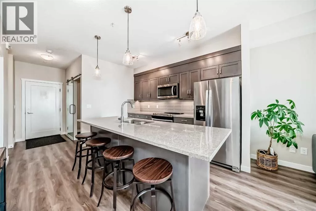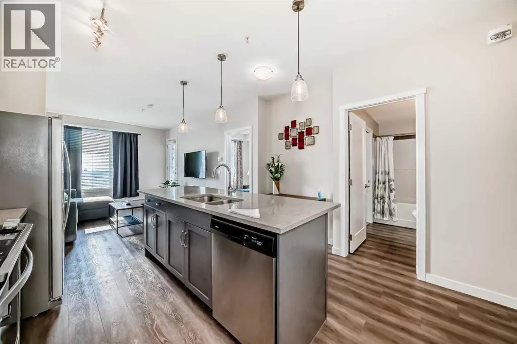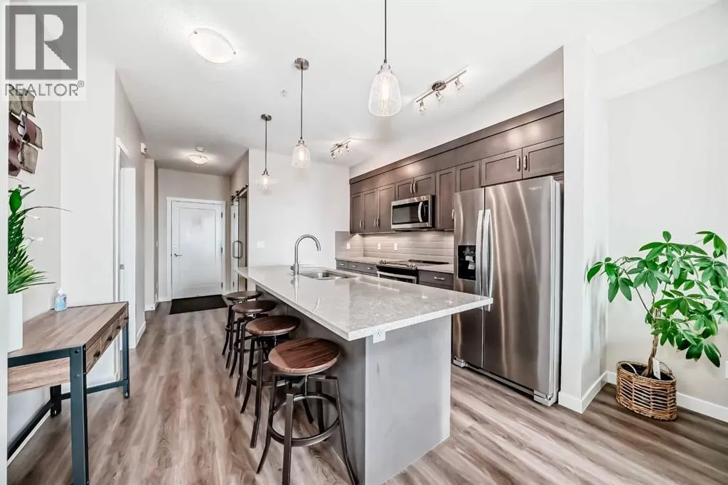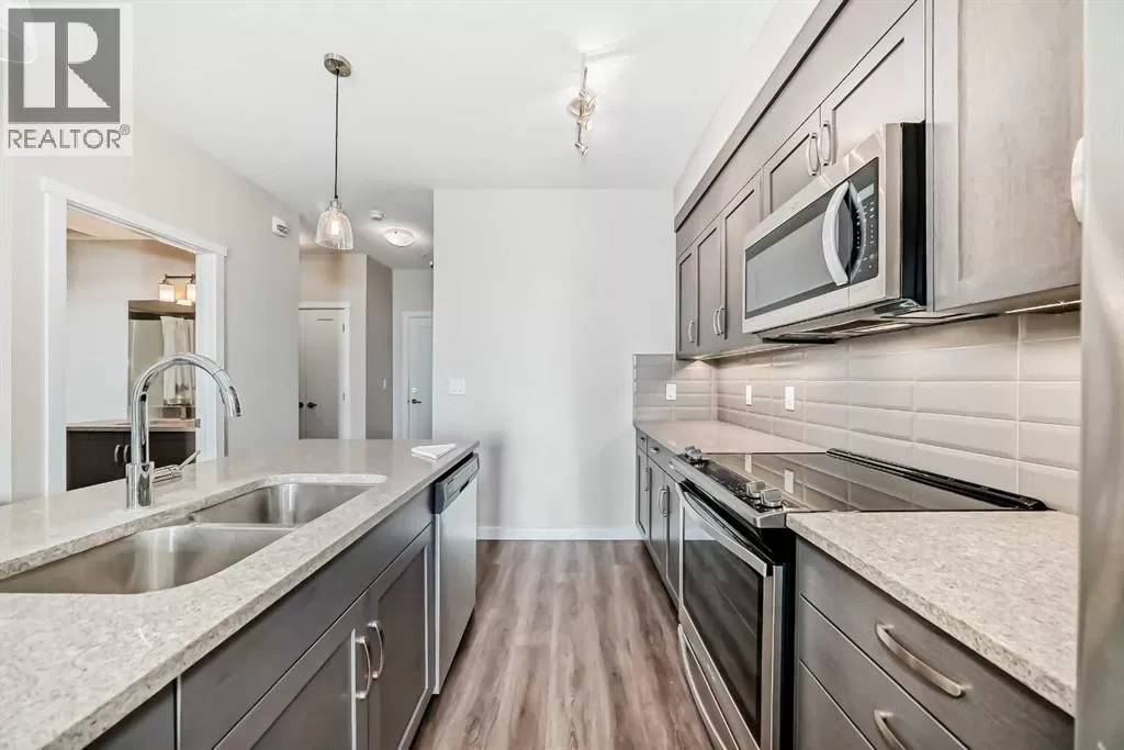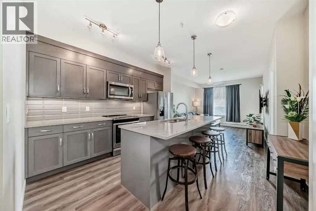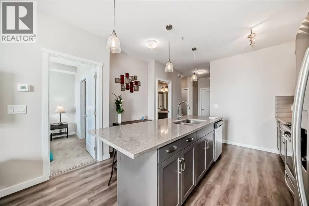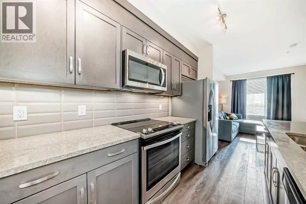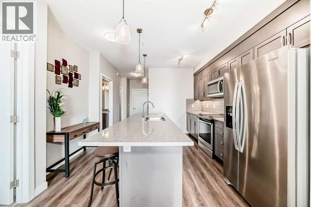 Imagine living in this Bright condo that is beautifully decorated with vinyl plank floors, granite counters, stylish kitchen cabinets, a den/second bedroom, a spacious primary bedroom with a walk in closet that leads to 4 piece bathroom. The Living room and kitchen area is a wide open space with a door to a private balcony and a view to the morning sun and Fish Creek C-Train station. The den has a sliding glass door that allows natural light to stream in. This kitchen is decorated with stainless steel appliances and this home comes with a titled underground parking stall and insuite laundry. This home is located a short walk or bike ride to Fish Creek Park, shopping, restaurants and YMCA. This is a great investment or first home. Don't miss this opportunity! 209, 30 Shawnee Common SW (id:27476)
