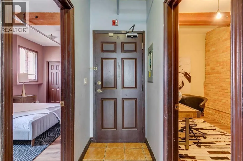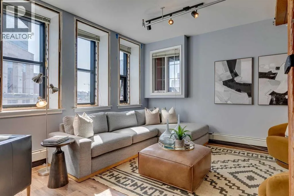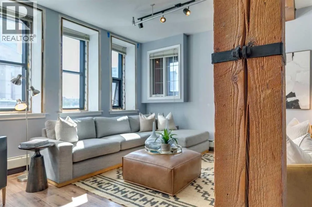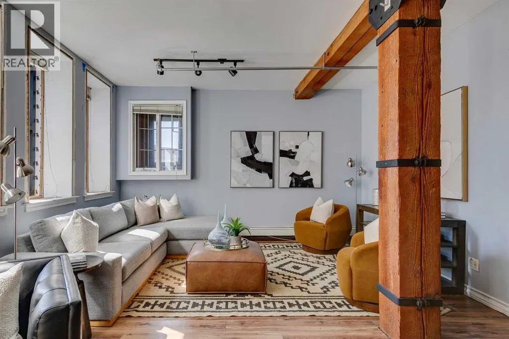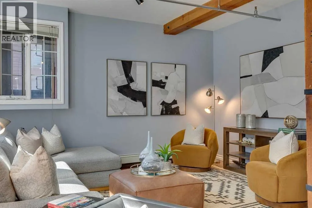 **Seller Financing available** Nestled in the heart of Calgary's Beltline, this extraordinary red brick loft offers a rare opportunity to own a piece of the cityâs rich history. Constructed in 1912 for the Imperial Tobacco Company by the renowned A. Dale and Associates, the architectural firm behind the iconic Calgary Tower, this building underwent a stunning conversion to lofts in 1995. For the first time ever, these timeless residences are available for sale, blending historical charm with modern sophistication. Offering over 1,100 SqFt, this expansive loft exudes character with its original brick walls, exposed wood beams, and soaring ceilings. A wall of windows floods the space with natural light, creating a warm and inviting ambiance reminiscent of a classic New York City loft. The open-concept layout is thoughtfully designed, offering endless possibilities for both living and working. A private den provides the perfect space for a home or business office, while two generously sized bedrooms are complemented by a five-piece Jack and Jill bathroom plus there is an additional three-piece bathroom. The galley-style kitchen features maple cabinetry with under mount lighting, stainless steel appliances, and a seamless flow into the dining and living areas. Whether you envision this space as your personal sanctuary or a dynamic live/work environment, the possibilities are as limitless as your imagination. Beyond the loft itself, the building offers an array of amenities, including a gym, a games room, and a rooftop patio with breathtaking views of the Downtown Skyline. An above-ground parking spot is also included, ensuring convenience in this vibrant urban setting. This is more than a home; itâs a lifestyle. A rare blend of history, elegance, and modernity, this loft is a once-in-a-lifetime opportunity to own a truly unique piece of Calgaryâs architectural heritage. (id:27476)