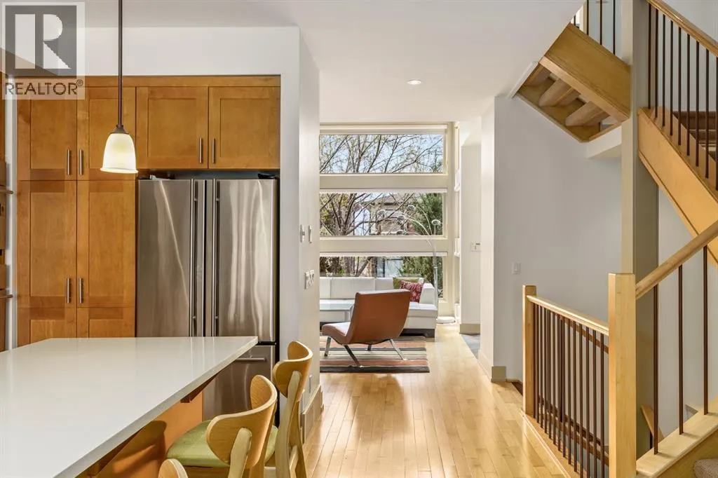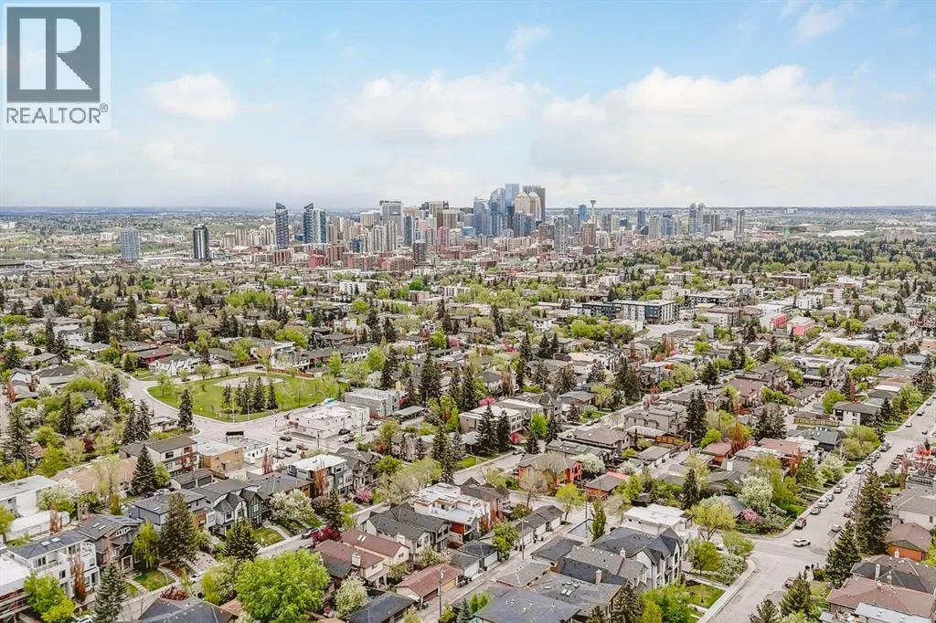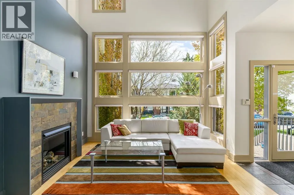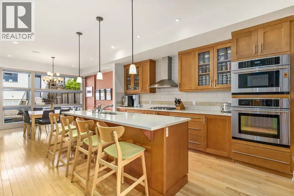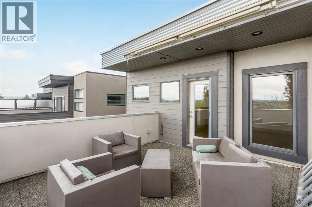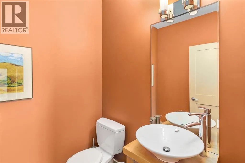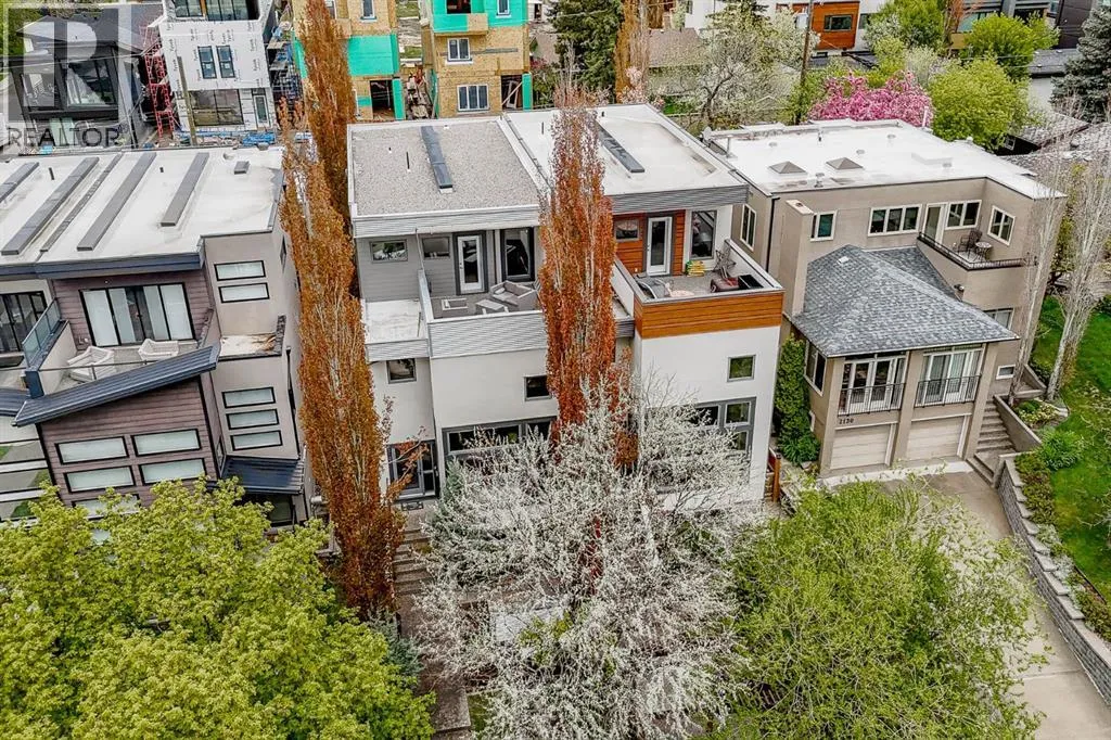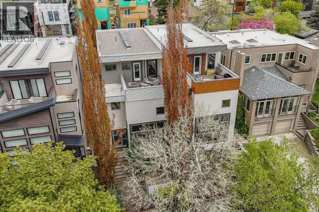 OPEN HOUSE Sat Nov 8th 11AM-1PM & Sun Nov 9th 12-2PM! Immerse yourself in scenic beauty and urban convenience with this remarkable residence in the vibrant Marda Loop District. A corrugated metal exterior and landscaped front yard provide charming curb appeal in this highly coveted neighbourhood. Step into the stunning entryway, where you are welcomed by an open floorplan, pristine hardwood, and fresh paint. The front living room is illuminated by sunlight with an impressive 18ft open to below and giant south facing triple glaze argon filled Plygem windows. Gather around the stone fronted gas fireplace and an accompanying metal feature wall that complements the outside of the home. Nearby is the immaculate chef's kitchen that boasts a long island with undermount sink and filtered water, sleek stainless steel appliances, gas cooktop and quartz countertops. Endless cabinetry space is ideal for optimal storage and organization while the abundant seating options are perfect for hosting dinner parties. A spacious dining room at the rear is filled with light and directly accesses the secluded courtyard patio nestled between the back of the home and convenient double garage. The adjacent powder room features a bowl mounted sink for an interesting pop of character. Ascend the open riser staircase which further radiates light from above onto the second level. Here you will find three large bedrooms and a versatile loft and den area; with built-ins that can easily convert this into a functional office or additional family room. A dedicated laundry room with sink further combines practicality and comfort. The third level encompasses the vast primary retreat and bonus space with a wet bar, both areas featuring new luxury vinyl plank flooring. The bonus area connects onto an enviable south-facing rooftop patio with sweeping views of the picturesque rocky mountains. The primary bedroom comes fully equipped with closet organizers, and an elegant ensuite with a built-in tiled tub, dual sinks, makeup vanity, in floor heating, and glass enclosed shower with product niche and bench. Down below in the fully finished basement you will find 9ft ceilings, radiant in-floor heating and custom fit rubber gym matting in the expansive recreation space. Thoughtful upgrades include rigid styrofoam insulation and gravel on torch on roof, water softener, newer UV protected/triple glazed windows, built-in speakers, Toto toilets and undermount sinks throughout, and a tankless water heater system. Characterized by sunshine that spills into every corner of the home, along with two exclusive amenity spaces for ultimate enjoyment of the great outdoors while maintaining your privacy. This exceptional home has 3,550sq.ft of livable space and is favourably situated in the popular community of Richmond, with unparalleled proximity to green spaces, entertainment and retail; mere walking distance to 33rd Ave with quick access to the Downtown Core and beyond. A perfect blend of luxury and convenience. (id:27476)
