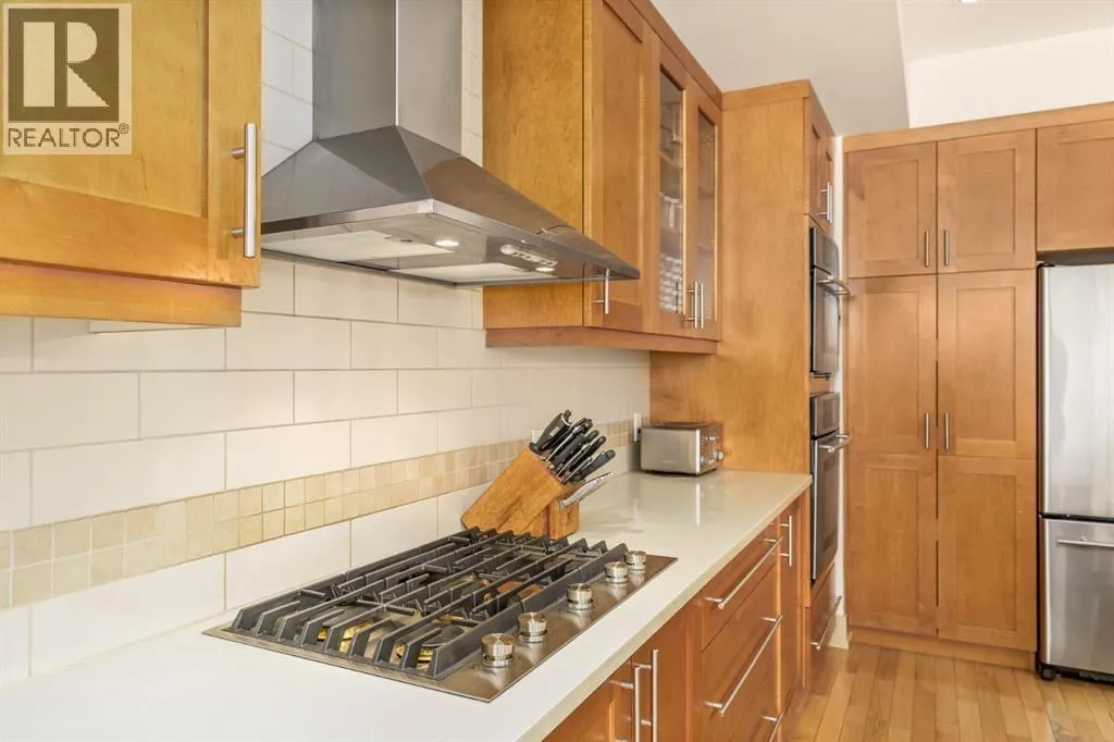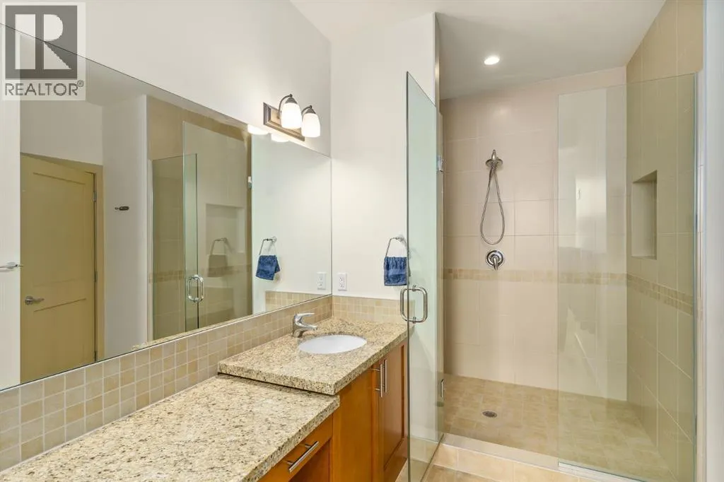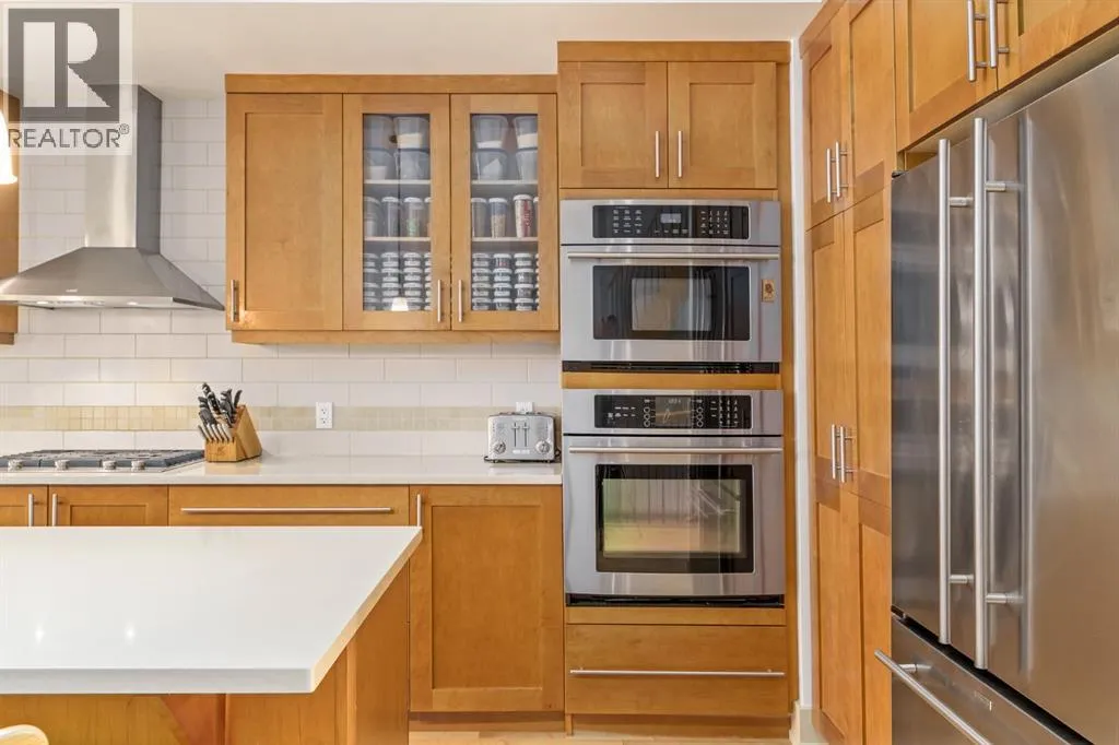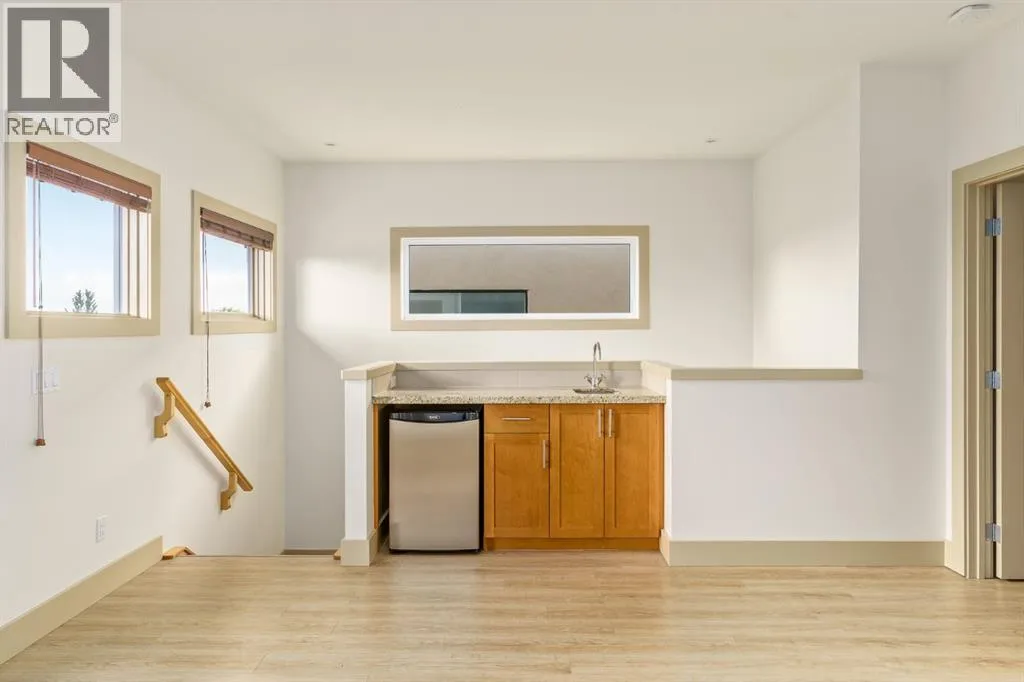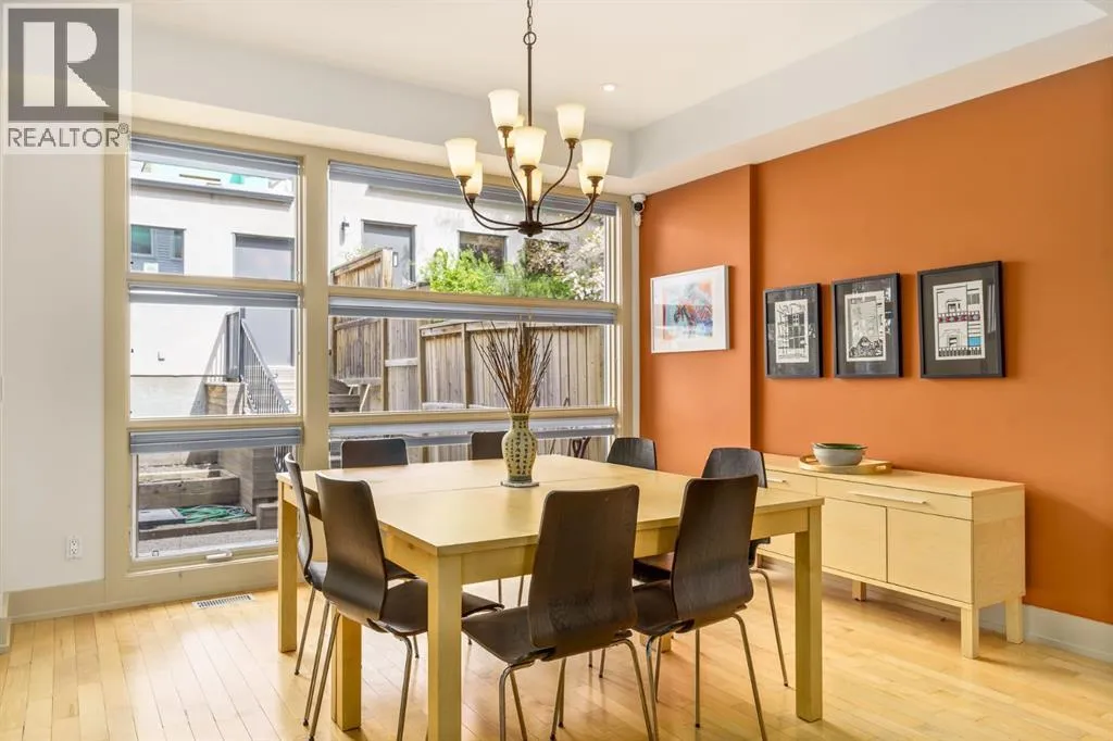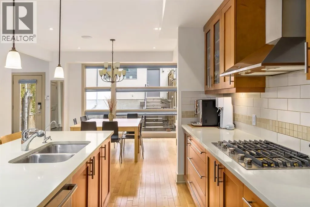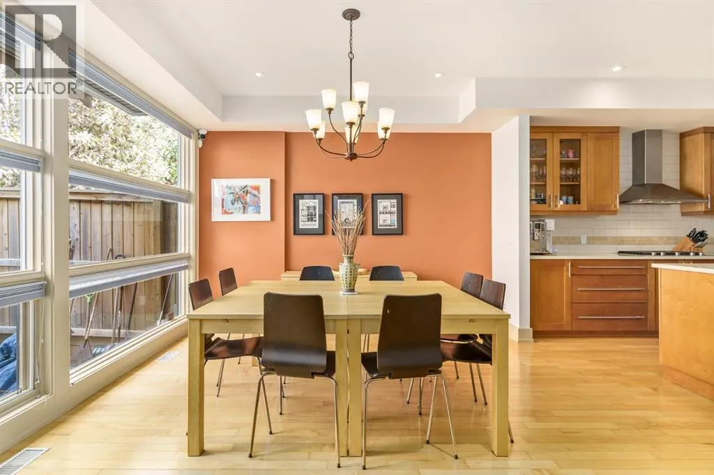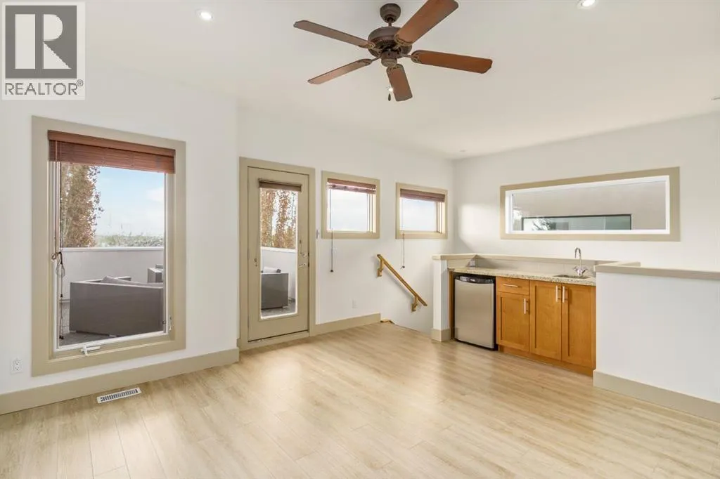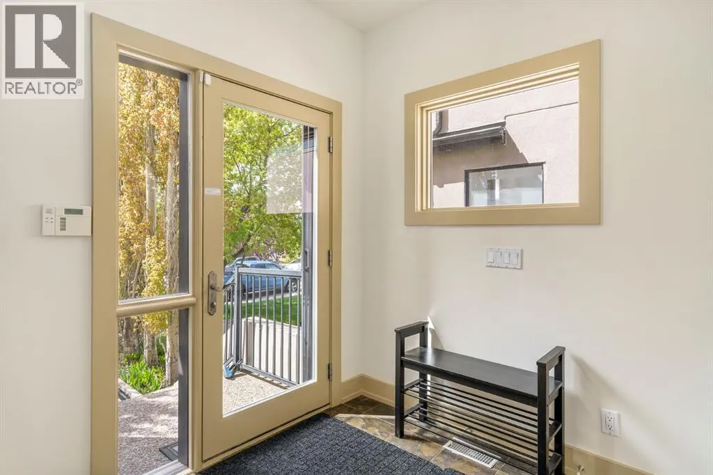 OPEN HOUSE Sat Nov 8th 11AM-1PM & Sun Nov 9th 12-2PM! Immerse yourself in scenic beauty and urban convenience with this remarkable residence in the vibrant Marda Loop District. A corrugated metal exterior and landscaped front yard provide charming curb appeal in this highly coveted neighbourhood. Step into the stunning entryway, where you are welcomed by an open floorplan, pristine hardwood, and fresh paint. The front living room is illuminated by sunlight with an impressive 18ft open to below and giant south facing triple glaze argon filled Plygem windows. Gather around the stone fronted gas fireplace and an accompanying metal feature wall that complements the outside of the home. Nearby is the immaculate chef's kitchen that boasts a long island with undermount sink and filtered water, sleek stainless steel appliances, gas cooktop and quartz countertops. Endless cabinetry space is ideal for optimal storage and organization while the abundant seating options are perfect for hosting dinner parties. A spacious dining room at the rear is filled with light and directly accesses the secluded courtyard patio nestled between the back of the home and convenient double garage. The adjacent powder room features a bowl mounted sink for an interesting pop of character. Ascend the open riser staircase which further radiates light from above onto the second level. Here you will find three large bedrooms and a versatile loft and den area; with built-ins that can easily convert this into a functional office or additional family room. A dedicated laundry room with sink further combines practicality and comfort. The third level encompasses the vast primary retreat and bonus space with a wet bar, both areas featuring new luxury vinyl plank flooring. The bonus area connects onto an enviable south-facing rooftop patio with sweeping views of the picturesque rocky mountains. The primary bedroom comes fully equipped with closet organizers, and an elegant ensuite with a built-in tiled tub, dual sinks, makeup vanity, in floor heating, and glass enclosed shower with product niche and bench. Down below in the fully finished basement you will find 9ft ceilings, radiant in-floor heating and custom fit rubber gym matting in the expansive recreation space. Thoughtful upgrades include rigid styrofoam insulation and gravel on torch on roof, water softener, newer UV protected/triple glazed windows, built-in speakers, Toto toilets and undermount sinks throughout, and a tankless water heater system. Characterized by sunshine that spills into every corner of the home, along with two exclusive amenity spaces for ultimate enjoyment of the great outdoors while maintaining your privacy. This exceptional home has 3,550sq.ft of livable space and is favourably situated in the popular community of Richmond, with unparalleled proximity to green spaces, entertainment and retail; mere walking distance to 33rd Ave with quick access to the Downtown Core and beyond. A perfect blend of luxury and convenience. (id:27476)