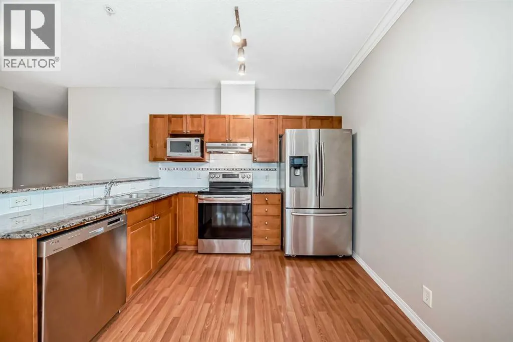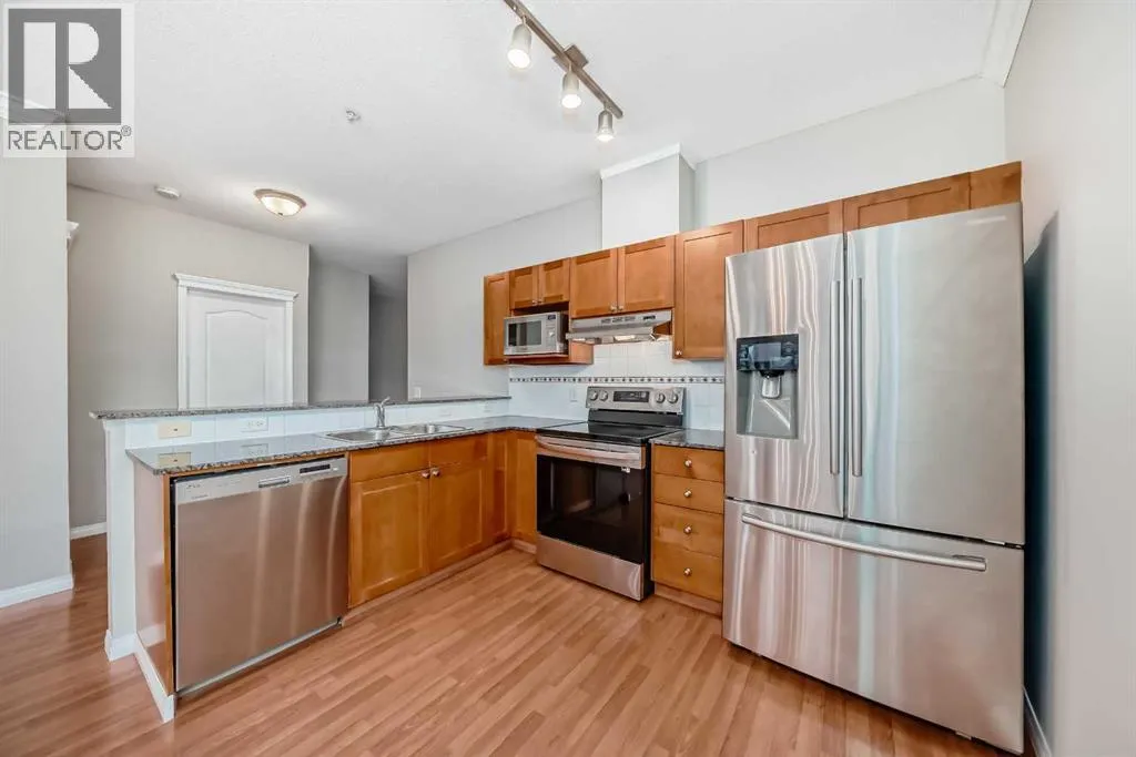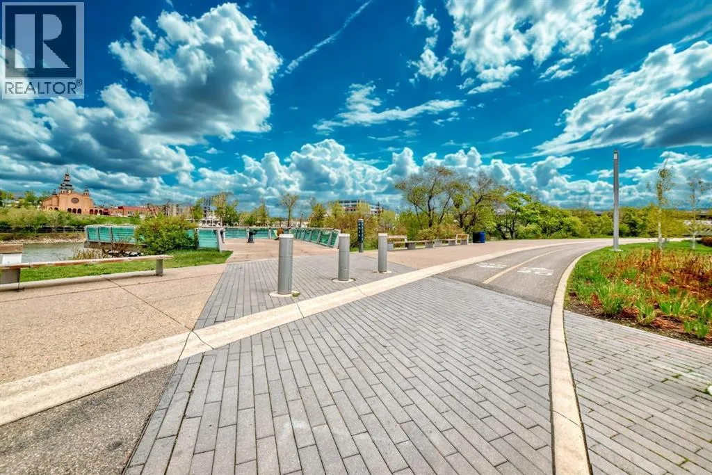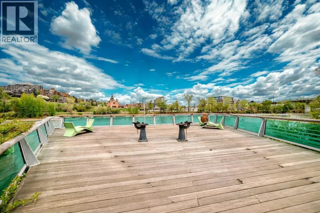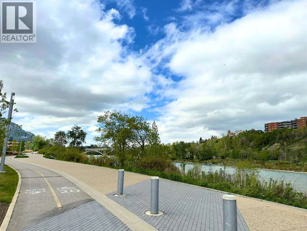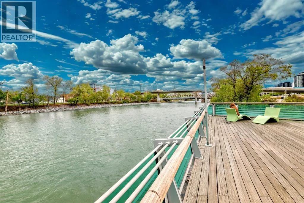 Magnificent RIVERFRONT 9' Ceiling CORNER UNIT in heart of downtown access to +15. NEW Carpet & Paint ---- Amazing downtown riverfront 2 bed / 2 bath condo in prime location. This large corner unit has unobstructed views of the Bow River. Lots of natural sunlight combined with magnificent sunrise and sunset views of the bow river / center street bridge. Enjoy the open kitchen with fridge, stove, microwave, dishwasher with lots of cabinet space and granite countertops. Additional unit features include 9ft ceilings, secure underground parking, storage locker (available for rent), secure bicycle storage, in-floor heating, in-suite laundry, covered deck and a beautiful fireplace.The +15 located across the street provides quick access to work, restaurants, clubs, shopping and recreation. The area is walking distance to restaurants, night life, great food, multiple LRT Stations, Central Public Library, Princeâs Island Park, Chinatown and of course downtown offices. The upgraded river walk right in front of the building and is perfect for walking, jogging or biking. (id:27476)