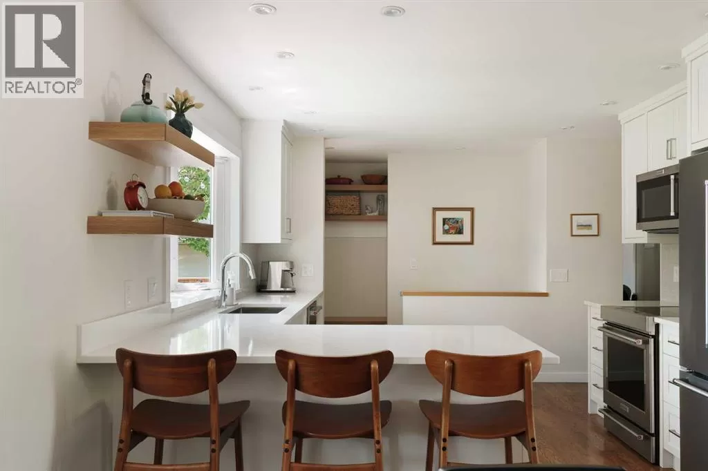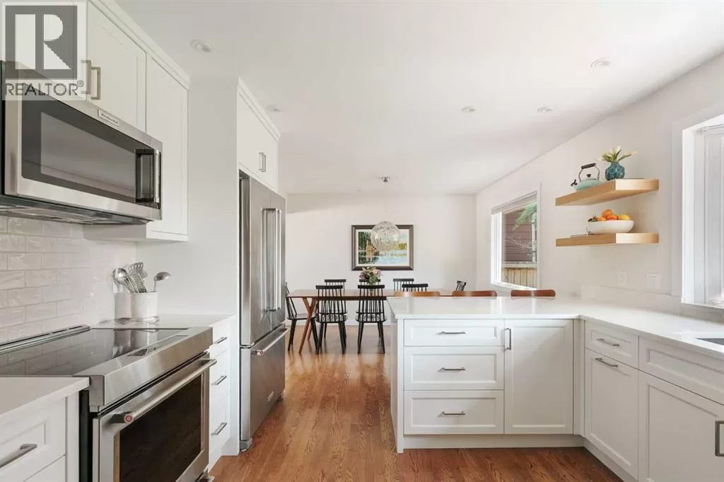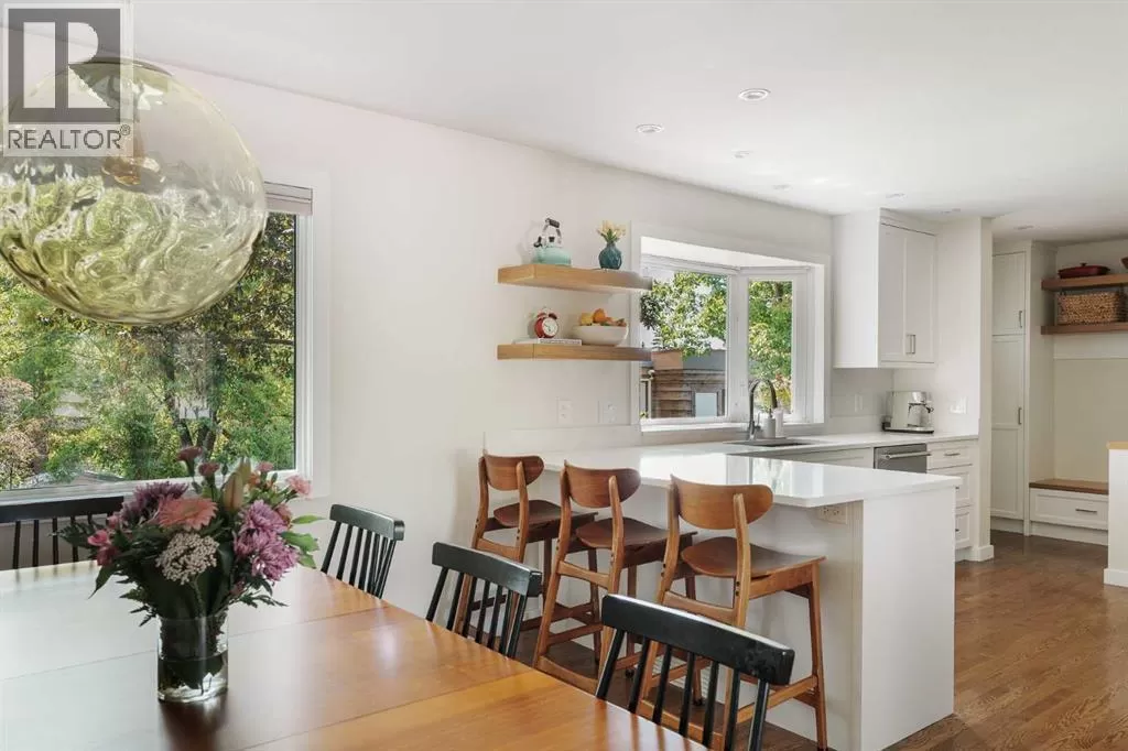 Located in one of Calgaryâs most established inner-city communities, this beautifully updated 1957 bungalow situated on a 6,049 sqft lot, offers the perfect blend of timeless charm and contemporary family living. From the moment you step inside, youâre welcomed by a thoughtfully redesigned interior that balances warmth, function, and modern refinement. The completely updated kitchen is a bright and cheerful space, featuring a peninsula-style layout, quartz countertops, stainless steel appliances, a garden window, and crisp white cabinetry finished with glossy subway tile and open shelving. Itâs a room where morning routines unfold and family life naturally comes together. Just off the kitchen, a custom-designed mudroom adds both style and utility, with plenty of cabinetry to keep everyday essentials tucked neatly out of sight. Rich hardwood flooring runs throughout the main level, leading to three comfortable bedrooms that share a beautifully renovated full bath. With quartz counters, coordinated cabinetry, and a sleek tiled shower wrapped in soft tones, the bathroom feels both elevated and enduring. The lower level is designed for comfort and connection, with a spacious rec room anchored by a stunning tiled gas fireplaceâa cozy backdrop for movie nights, quiet evenings, or spontaneous play. A combined laundry and bathroom area adds practical convenience. The large southwest yard offers a private retreat with mature trees and a charming hardscaped patioâa perfect spot for lazy weekend afternoons, family games, or peaceful outdoor moments. This 1,271 sqft bungalow is a home that has gracefully evolved with timeâoffering the character of yesterday and the comforts of today, situated in a prime location within the neighbourhood where community and convenience come standard. This exceptional property is nestled in one of Calgaryâs most sought-after neighbourhoods, offering unmatched convenience and access to key destinations. Ideally located on a quiet, tree-lined stree t, itâs just steps from the Foothills Medical Centre, Alberta Childrenâs Hospital, University of Calgary, and McMahon Stadium. Families will appreciate the proximity to Maria Montessori School and Briar Hill Elementary, while outdoor enthusiasts will enjoy the nearby off-leash dog park, Bow River pathways, tennis and basketball courts, skating rink, and the area's renowned sledding hill. With a short 10-minute commute to downtown, easy access to coffee shops, restaurants, and grocery stores, plus a direct route to the mountains, this location perfectly balances urban living with nature and recreation. (id:27476)