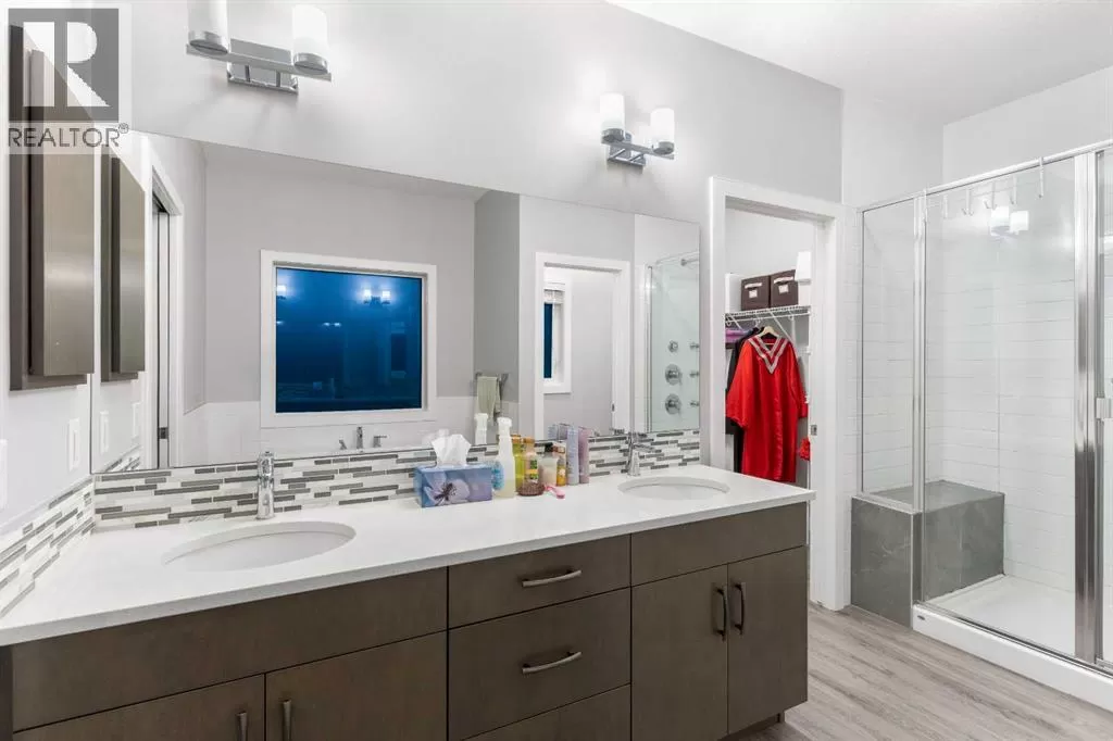 ***Original Owner*** Centralized air-conditioning, a sunny west backyard perfect for summer BBQs, a traditional lot, and a fully finished basement make this stunning home stand outâoffering over 3,600 sq. ft. of living space. The grand open-to-above foyer welcomes you inside, leading to a versatile office (or main-floor bedroom). The chefâs kitchen boasts premium stainless steel appliances, a walk-through pantry, and expansive counter space for all your culinary needs. Upstairs, a stylish bonus room with a coffered ceiling sets the tone. Three generously sized bedrooms include a primary retreat with a luxurious 5-piece ensuite, while the other two bedrooms feature walk-in closets. A convenient upper-floor laundry and an additional full bathroom complete the level. The fully developed basement includes a spacious recreation room (currently equipped with a golf simulator), a full bathroom, and an additional bedroomâperfect for guests. The garage is oversized and can easily fit two cars, complete with durable epoxy flooring and an EV charging pointâperfect for todayâs modern lifestyle. The garage is fitted with 8ft Slatwall panels and accessories, including two tire racks, to keep everything neatly off the floor. Additional highlights include a water softener, water filtration system, and a 7.1-channel home theater complete with a 4K HDR LG projector and a 150-inch screen. This well-thought-out floor plan offers everything buyers are afterâand best of all, itâs move-in ready. Silverado residents enjoy easy access to an abundance of shops and services, excellent schools, public transit, quick routes to the mountains, and the world-class Spruce Meadows equestrian facility is just moments away. Outdoor enthusiasts will love the extensive scenic pathways for walking, jogging, or biking, all while enjoying green spaces and ponds throughout the neighbourhood. Donât miss out on this opportunity to own a dream home in a community that truly has it all. Explore the Video Virtua l Tour on YouTube by searching MLS® #A2253647. Call today to book your private viewing! (id:27476)