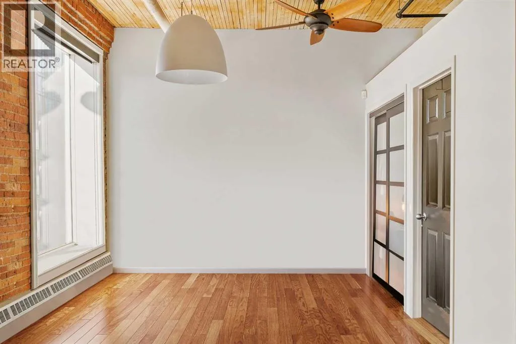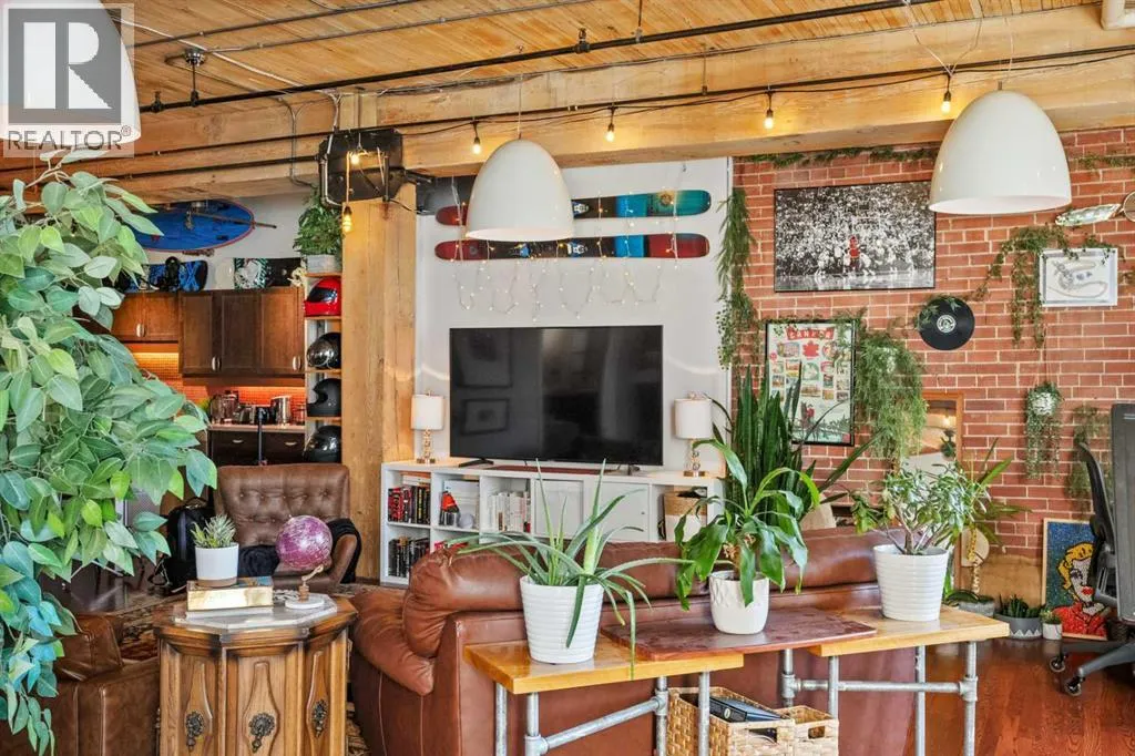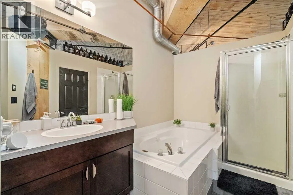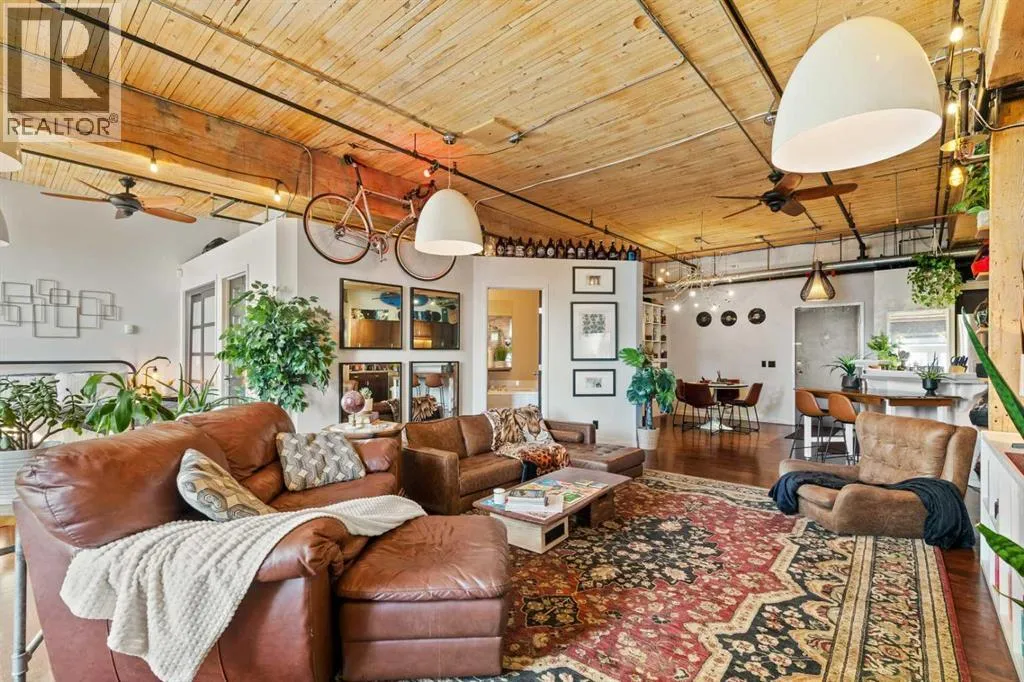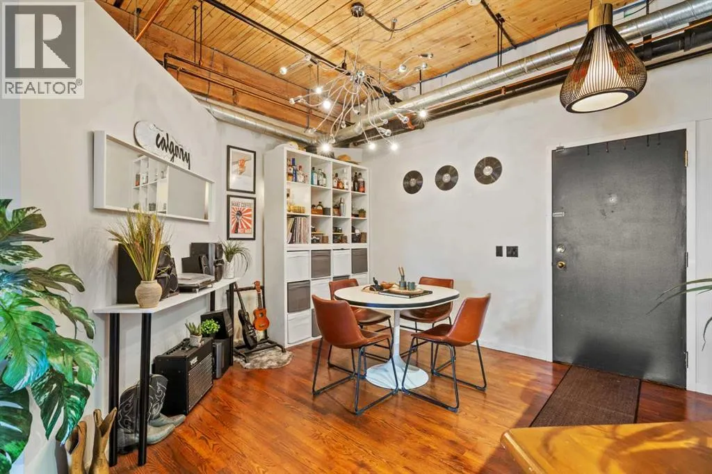 Donât miss this rare opportunity to live, work, and play in one of Calgaryâs most iconic warehouse conversions. This beautifully renovated loft at Hudson Lofts seamlessly blends modern amenities with timeless industrial character. With west-facing exposure, this space is bathed in golden afternoon light, creating an inviting and dynamic atmosphere throughout the day.Step inside to discover original fir wood ceilings, exposed beams, brick walls, and piping that give the home its distinctive charm. Large windows and a west-facing Juliette balcony off the living room not only bring in abundant natural light but also provide views of Calgaryâs vibrant downtown energy.The thoughtfully designed kitchen is a chefâs dreamâcomplete with sleek stainless steel appliances, generous counter space, and a walk-in pantry to keep everything organized and within reach. The spacious bathroom includes a stand-alone shower and a deep jetted soaker tub, ideal for relaxing after a busy day.What truly sets this property apart is its flexible zoning, allowing both residential and commercial use. Whether you're looking for a stylish home, a creative studio, or a live/work hybrid, the possibilities here are endless.Additional features include:* Secure underground parking* Large private storage locker* Elevator access for added convenienceLocated in the heart of Calgaryâs Beltline, Hudson Lofts places you steps from premier dining, shopping, entertainment, and business districts. Whether youâre commuting, hosting clients, or simply enjoying city life, youâll love this unbeatable location.Come experience the perfect fusion of historic charm and contemporary lifestyle at Hudson Loftsâyour ideal urban space with west exposure awaits. (id:27476)