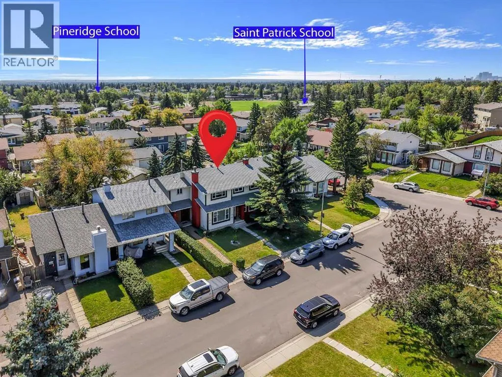 VERY WELL KEPT | QUIET CUL-DE-SAC | FULLY FINISHED | OVERSIZED LOT | OVERSIZED DOUBLE GARAGE WITH 10â CEILINGS | PAVED BACK LANE | SOUTH BACKYARD Nestled on a quiet cul-de-sac in the heart of Pineridge, this semi-detached home combines thoughtful updates with family comfort and investor appeal. A welcoming front pathway leads inside to a spacious living room featuring an oversized window that fills the space with natural light and a cozy brick surround wood burning fireplace, perfect for gathering together on cool winter evenings. Updated flooring and a neutral colour palette create a move-in ready backdrop throughout the main level. The bright eat-in kitchen offers white cabinetry, a stainless steel fridge with water and ice dispenser and a large window overlooking the sunny backyard. An adjacent dining room sets the stage for family meals and entertaining with sliding patio doors extending the space onto an enclosed deck for barbeques and relaxed weekends. A tucked away powder room is conveniently located as you head downstairs. Upstairs, 3 spacious bedrooms provide restful retreats filled with natural light, complemented by a 4-piece bathroom. The fully finished basement expands your living space with a large rec room ideal for movies, game nights or a home gym, plus a built-in desk area for work, study or creative projects. Ample storage keeps everything organized. Outdoors, a south-facing backyard offers room to play, garden and gather around a firepit on summer nights. Garden beds and grassy space make it both functional and inviting for families. A pathway leads to the oversized detached garage with 10â ceilings and access to the paved back lane. Location is unmatched with Pineridge School, Saint Patrick School and Clarence Sansom School all within walking distance, along with transit, Village Square Leisure Centre, shops, and restaurants. Sundridge Mall and the C-Train station are just a quick drive, ensuring excellent convenience and accessibility. This wel l-cared-for home is an outstanding opportunity for families seeking space and community or investors looking for a property with strong long-term appeal. (id:27476)