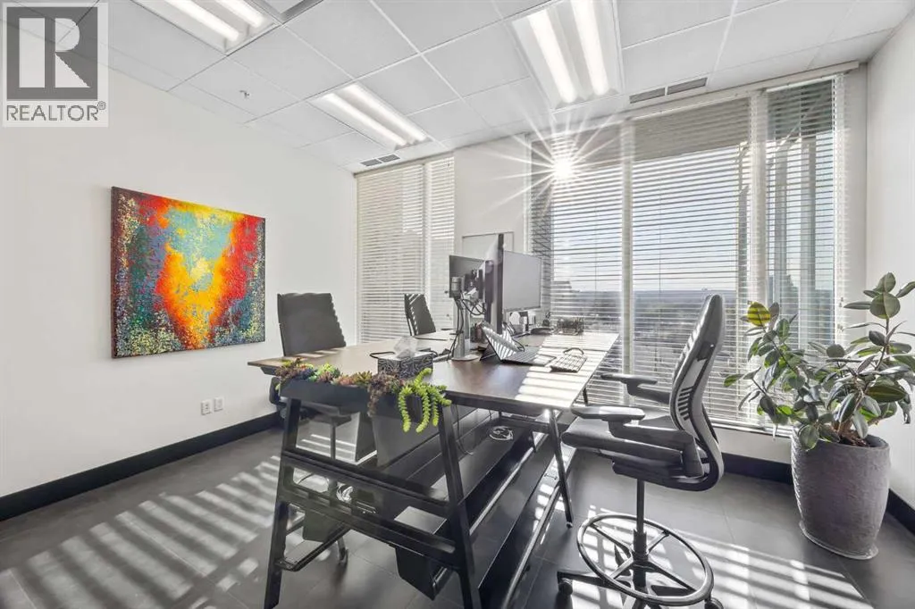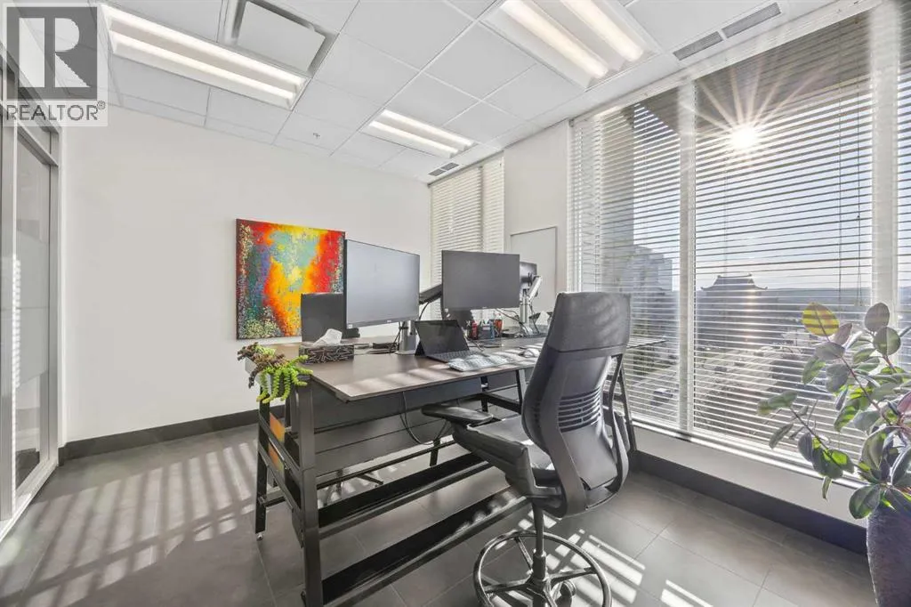 Stunning TURN KEY Downtown Office Condo with River Views for only $5000 a month total + electricity!!Discover a rare opportunity to lease a FULLY FURNISHED, move-in ready office condo in the prestigious Solaire building in Calgaryâs downtown West End. Featuring 4 private offices, a modern kitchen, reception area and 1 titled underground parking stall. Wow! This spacious suite is designed to impress clients and provide comfort for your team. Step inside to a high-end professional buildout highlighted by elegant tile flooring, sleek modern décor, soaring 10-foot ceilings, and floor-to-ceiling windows that flood the space with natural light while showcasing breathtaking river views. The kitchen is finished with espresso cabinetry, granite countertops, and stainless steel appliances, making them perfect for staff breaks or hosting meetings. This office is being sold fully furnished, complete with all workstations and chairs includedâan ideal turn-key solution for businesses looking to transition seamlessly into a professional downtown space. The Solaire building offers unmatched amenities rarely found in office settings, including a concierge, on-site security, fitness facility, car wash bay, and bike storage. Its unbeatable location is just steps from the 8th Street C-Train station, the river pathways, and some of Calgaryâs best dining and entertainment. Whether youâre a growing company or an investor seeking a versatile downtown property, this office condo checks all the boxes. Get ahead of the resurging downtown office market and take advantage of this amazing opportunity today! (id:27476)