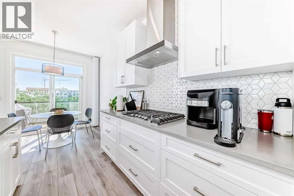 Welcome to Green Space View â a stunning 4-bedroom, 3.5-bath home with a walkout basement in the prestigious Aspen Springs community of Springbank Hill. Built in 2022 and still covered by the New Home Warranty, this thoughtfully designed residence offers nearly 2,000 sq. ft. of total living space and backs directly onto serene green space. Enjoy an east-facing backyard that bathes in the morning sun, creating the perfect setting for coffee on the deck and peaceful starts to your day. The main floor boasts 9 ft ceilings, an elegant white interior palette, luxury vinyl plank flooring, and an open-concept layout ideal for both daily living and entertaining. The gourmet kitchen features crisp white cabinetry, quartz countertops, tiled backsplash, high-end stainless steel appliances including gas cooktop, built-in oven and microwave, extra-wide refrigerator, and a large central island. The bright dining area opens to the upper deck through patio doors, while the spacious living room offers plenty of natural light. A mudroom and 2 pc powder room complete the main level. Upstairs, youâll find three generously sized bedrooms, a 4-piece main bath, and a convenient laundry room. The serene primary suite is a true retreat, featuring a luxurious 5 pc ensuite with dual sinks, a soaker tub, separate glass shower, and a large walk-in closet. The fully finished walkout basement adds incredible versatility, with a large family/recreation room, a fourth bedroom, and a 3 pc bath, perfect for guests, as a home office or the teenager that wants their privacy. Step outside to your private covered patio and enjoy direct access to the walking path and green space beyond. Attached front drive double garage.. Enjoy the convenience of walking to Aspen Landing Shopping Centre, top tier schools including Rundle College, Webber Academy, and Ambrose University - all within 2.5 km! Dining options just steps away within the complex. Easy access to Westside Rec Centre, multiple golf courses, and ne arby country clubs enhances your active lifestyle. Elegant, modern, and move-in ready, this exceptional townhome truly offers the best of low-maintenance luxury living with nature at your back door and amenities just minutes away. (id:27476)