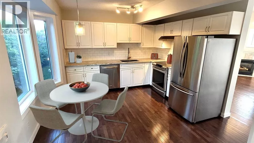 Welcome to this updated two bedroom and den(could be easily made into a third bedroom) townhouse in Killarney features a well-thought-out layout with appealing details. Over 1350 sq. ft. of developed space. Updates include new windows, lighting, hardwood floors, carpet and freshly painted throughout. The entryway leads to a single attached garage with ample storage for bikes and other essentials. Up the stairs, the spacious kitchen offers an inviting eating area filled with natural light from large windows. The kitchen has been updated with granite counters, stainless steel appliances and stylish backsplash. It leads to a bright back deck, perfect for summer BBQs. Off the kitchen, youâll find a laundry room with a stacked washer and dryer, along with a convenient half bathroom. This level also includes an expansive cozy living and dining area with a corner fireplace and more large windows, which lead to another spacious deckâgreat for relaxing or entertaining. On the top floor, thereâs a versatile den(could be a third bedroom), a secondary bedroom, and a large primary suite with a generous closet. A large bathroom featuring a soaker tub & separate shower completes this level. Situated in a well-managed complex, this condo is located in the vibrant Killarney community, just minutes from downtown Calgary, the shops and restaurants of Marda Loop, and 17th Avenue. Enjoy access to parks, green spaces, tennis courts, the Killarney Aquatic & Recreation Centre, and excellent schools. Check out this lovely townhome today. SOME OF THE PHOTOS HAVE BEEN VIRTUALLY STAGED. (id:27476)