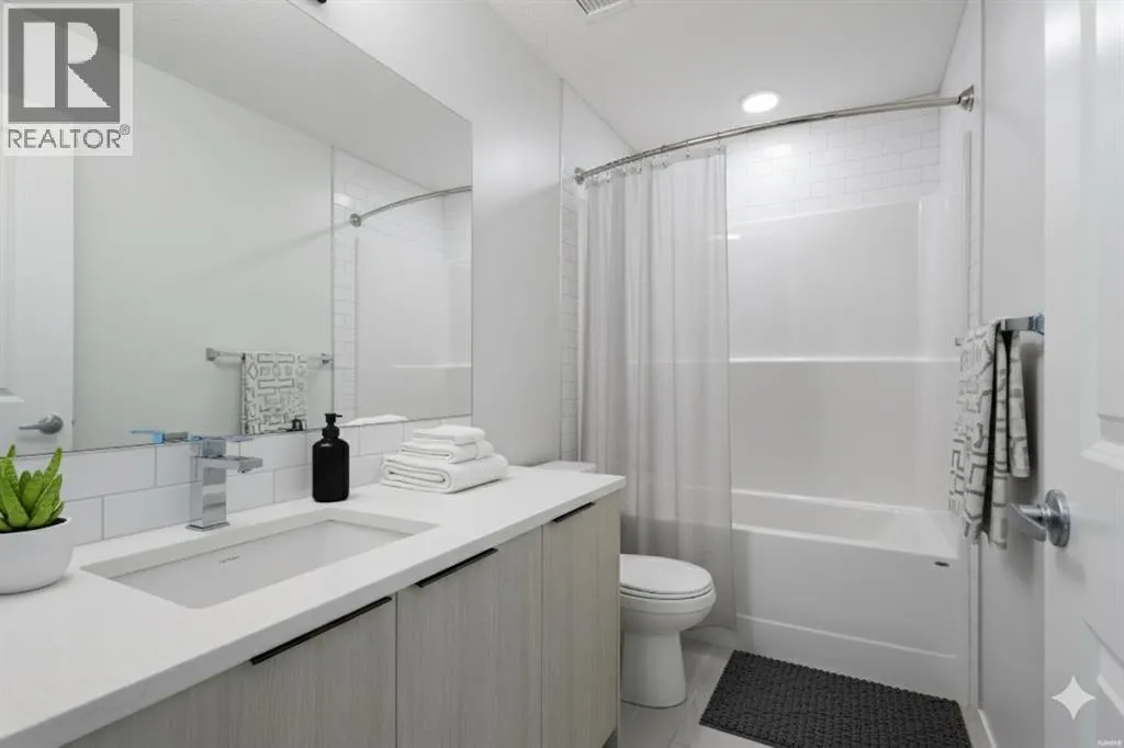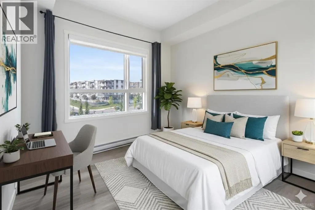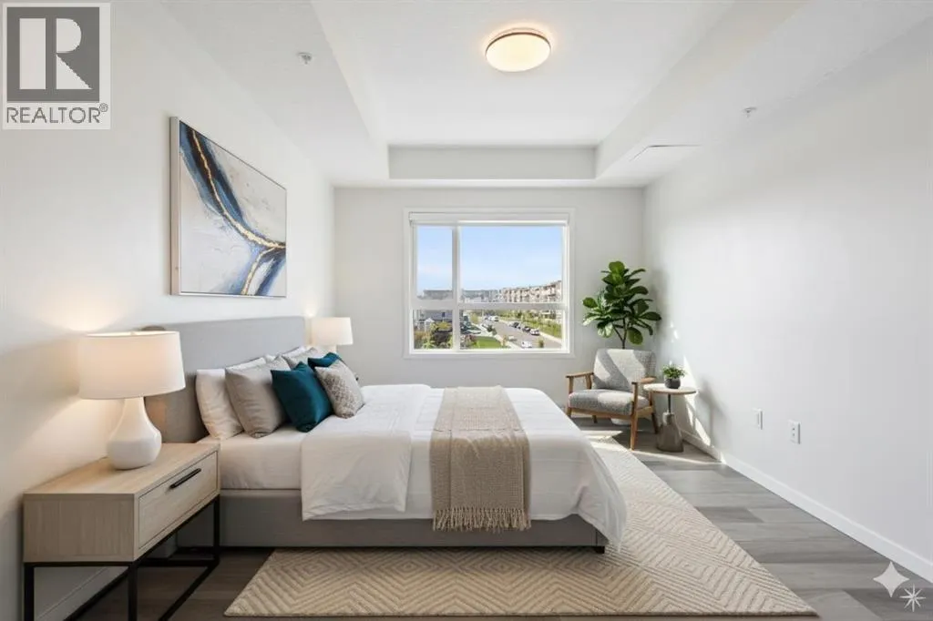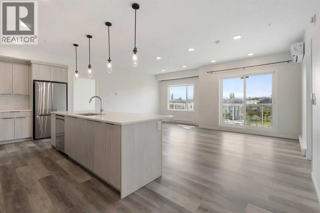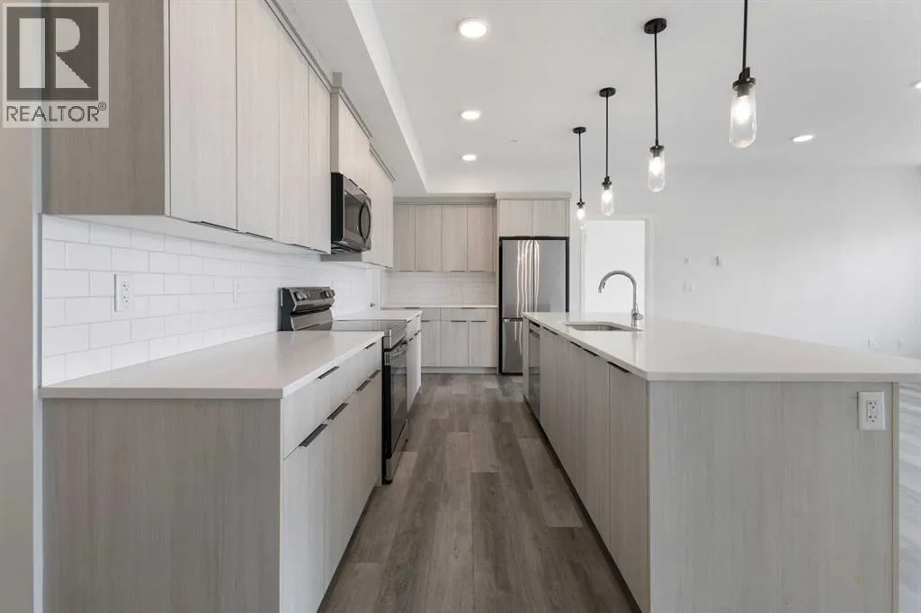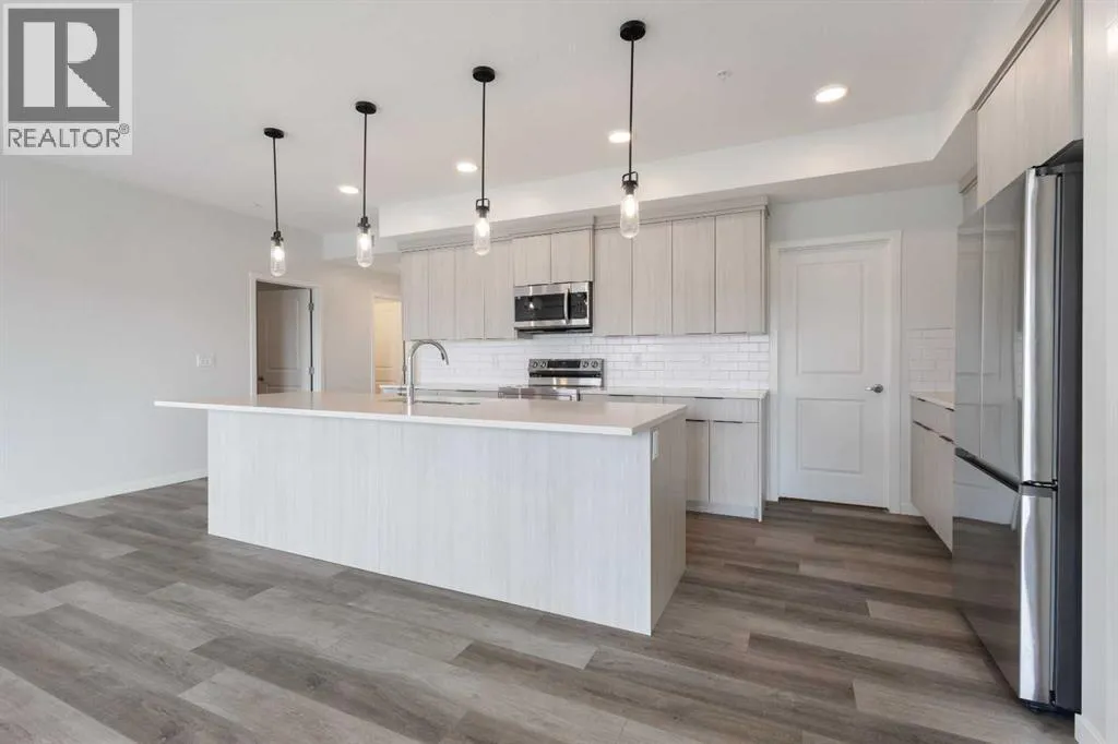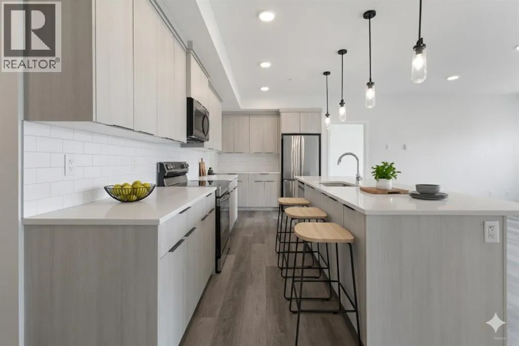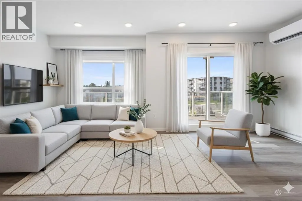 Step inside this bright and spacious 3-bedroom, 2-bathroom condo at the Pinnacle in Harvest Hills, where everyday comfort meets convenience. With 1,188 sq ft of thoughtfully designed living space, the west-facing windows and 9-foot ceilings fill the home with natural light from morning to evening.The open-concept kitchen, complete with quartz counters, stainless steel appliances, and a large island, flows seamlessly into the dining and living areasâperfect for shared meals, entertaining friends, or simply relaxing at the end of the day. The primary suite features a walk-through closet and a private ensuite with dual sinks, while two additional bedrooms provide flexibility for guests, family, or a home office.Enjoy the ease of air conditioning, in-suite laundry, and luxury vinyl plank flooring throughout. A covered balcony offers a sunny retreat for coffee or evening conversations. Titled underground parking adds security and convenience year-round.Located steps from parks, schools, restaurants, and shopping, and just minutes to major routes and the airport, this is more than a condoâitâs a lifestyle in one of North Calgaryâs most connected communities. (id:27476)