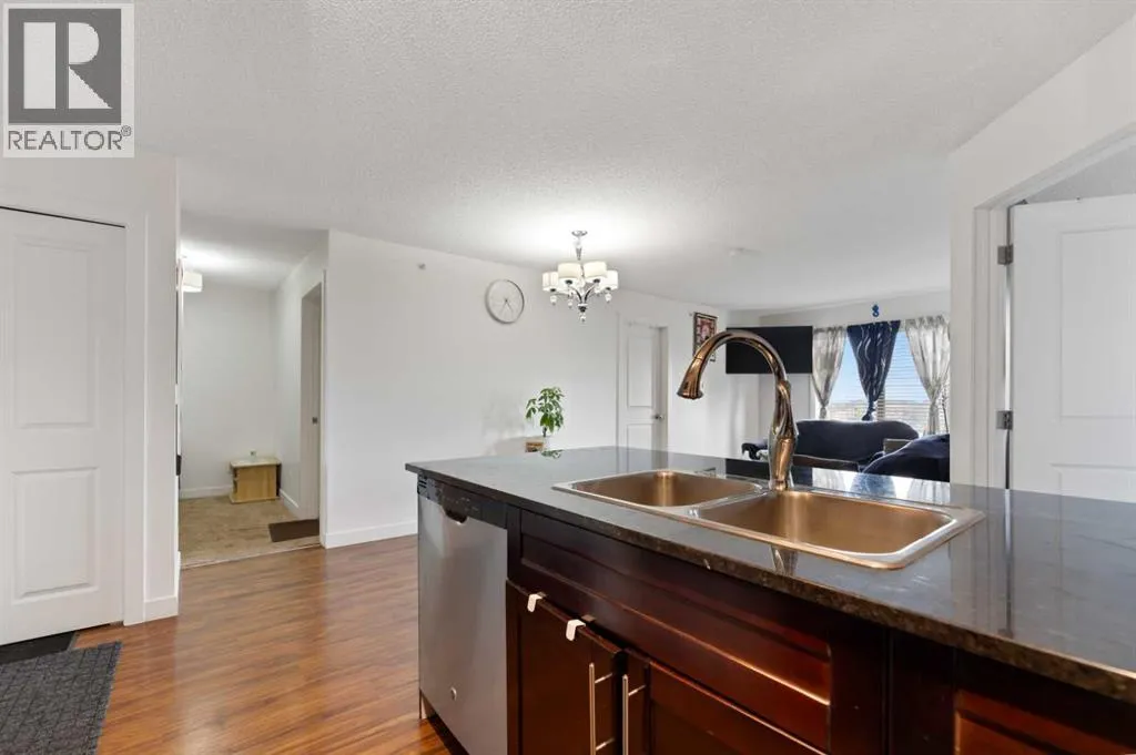 Welcome to this Top floor unit with an awesome view of the lake and the green space. There are only a few units in this buildingthat enjoy this view. It is a 2 bedroom + 2 Bath + den, Granite countertops, Stainless steel appliance package, well maintained property. The back of the unit is South facing and that makes it sunny and bright all day. It comes with a Titled Underground Heated parking. There is ample visitor parking in front of the main entrance. Walking distance to grocery stores, Coffee shops, Restaurants and all other daily needs shops are a stone throw away from this building. Walking distance to the Bus stop and only 5 min drive to the Saddle Ridge LRTstation. (id:27476)