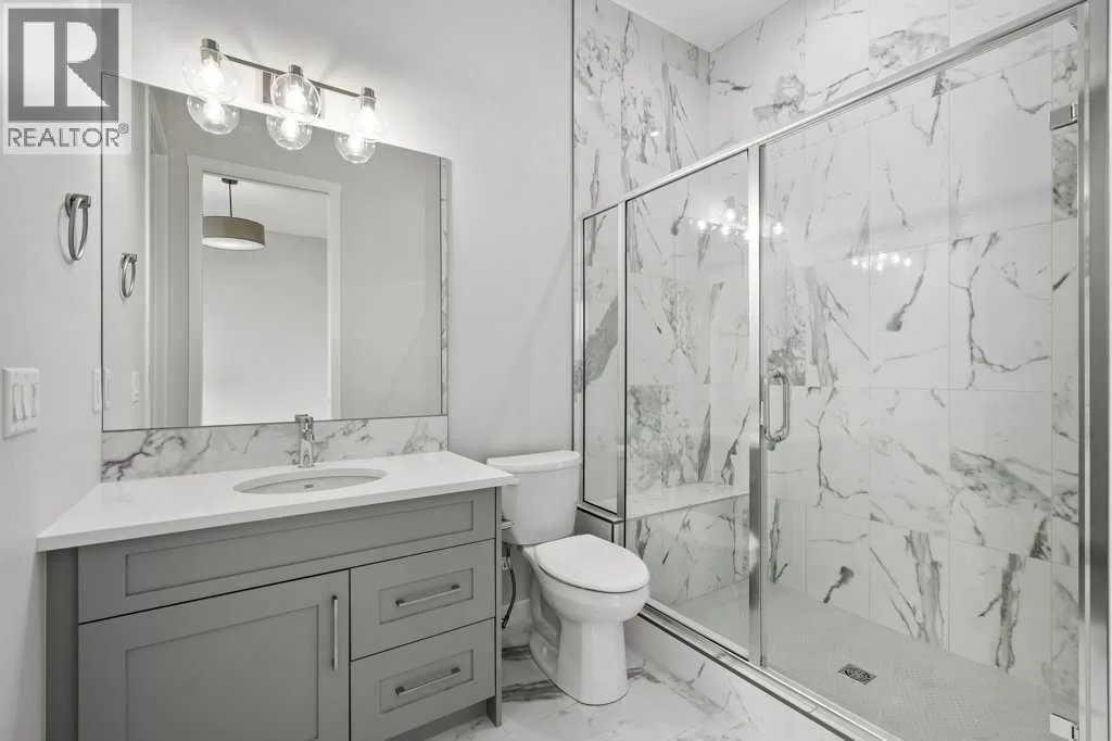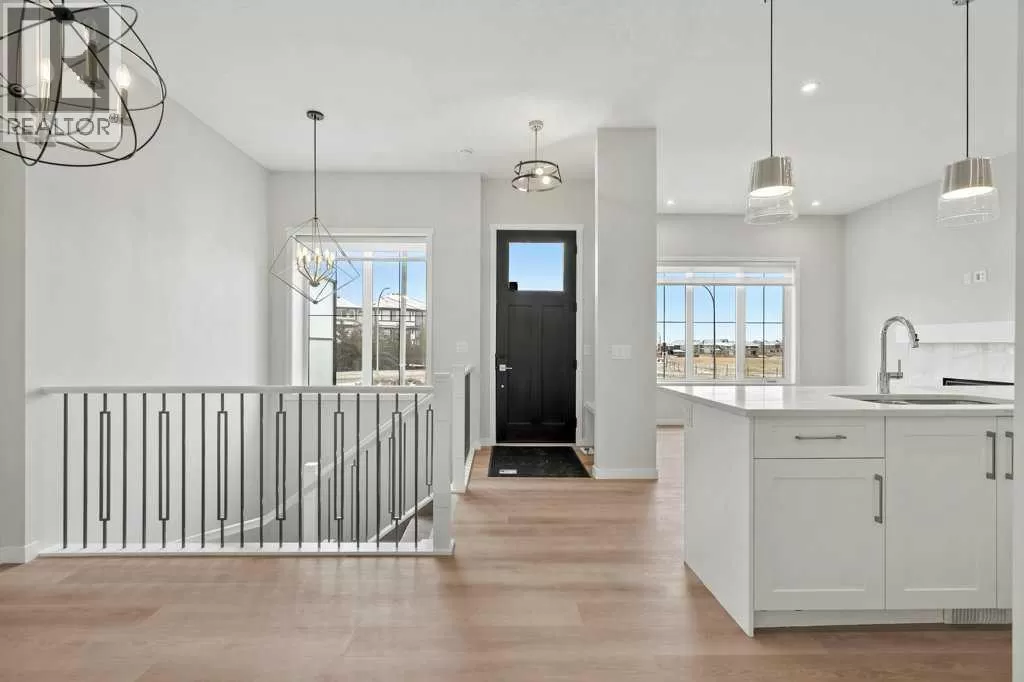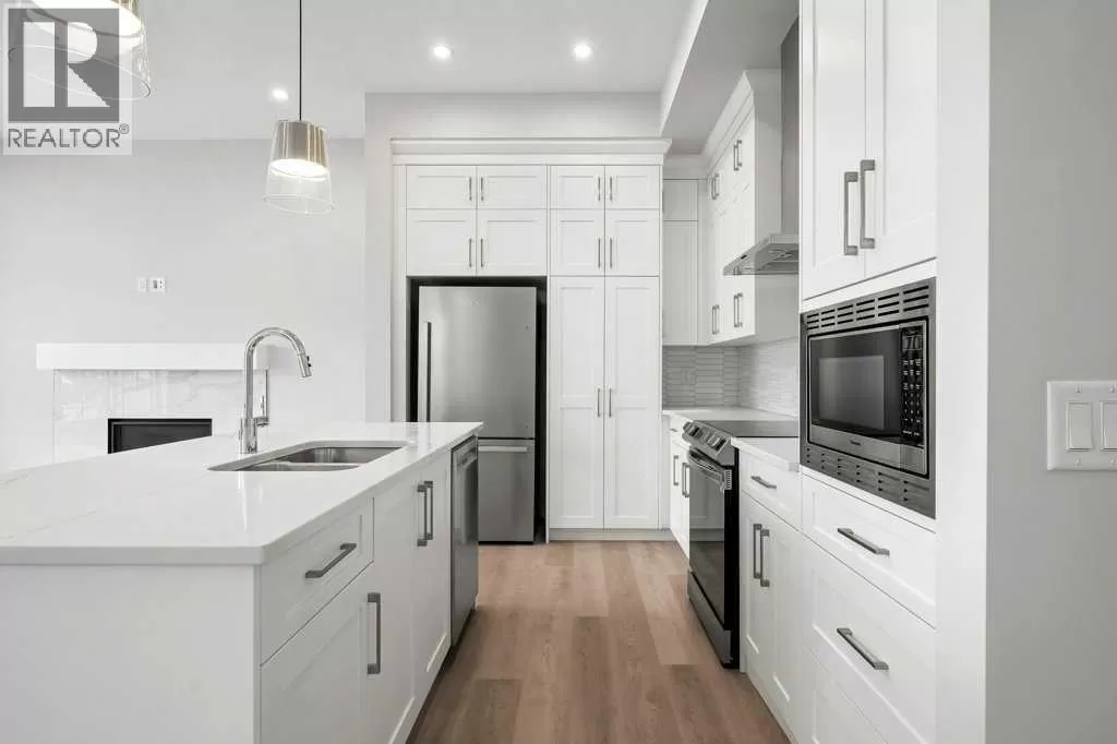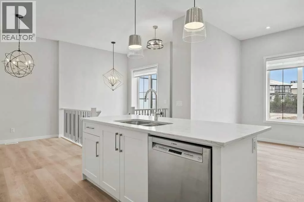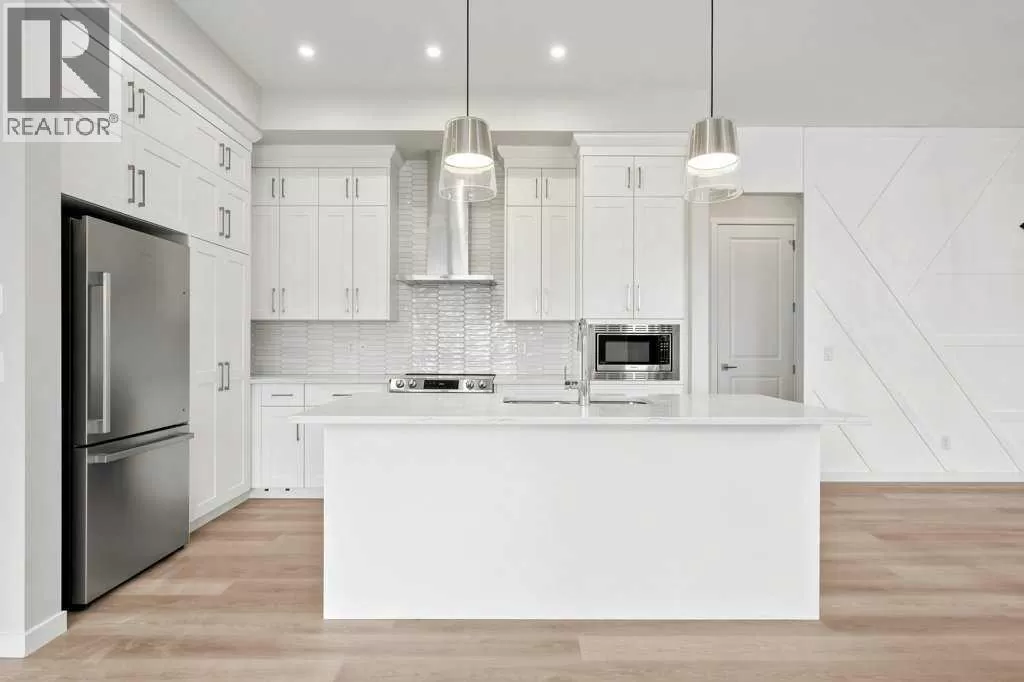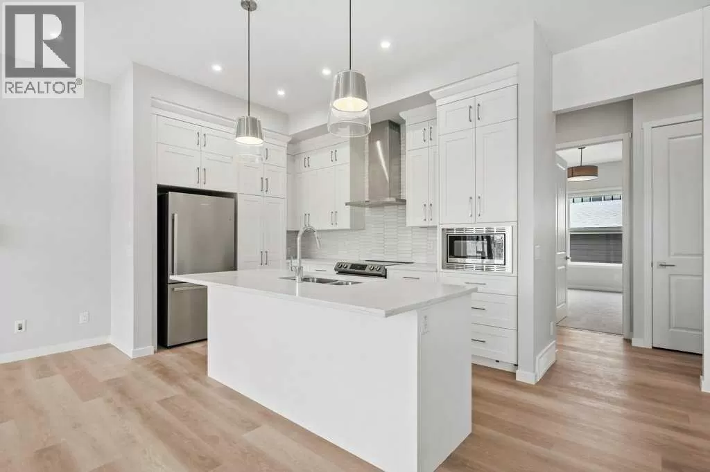 Lakeside living at its finest! Presenting a fully developed bungalow villa with over 1750 square feet of developed space, Gemstone lighting, NO CONDO FEES, located steps to Mahogany's main beach, central park and across from the future historic Ollerenshaw farm. Enter into 10' knock down ceilings, a front lifestyle room with focal gas fireplace, luxury vinyl plank and connects seamlessly to the entertainment size kitchen boasting a plethora of stacked classic white cabinets, quartz counters, built in microwave and soft close mechanics and full stainless steel appliance package Off the kitchen is the family size dining area and access to the fully developed lower level. Convenient main floor laundry with access to the side entry to the private yard and double detached garage. The primary bedroom is set to the back of the plan, quiet and a generous size for all types of furniture placement with your tiled 3 piece en-suite bath designed with storage, quartz counters, and a full size shower. Open rail guides you to the lower level beginning with a media room, 2 added bedrooms a 4 piece tiled bath as well as plenty of storage wrapped in sunshine windows, 9' ceilings and rough in Central air. Experience this awarded winning 4 season community featuring 2 beaches, splash park, tennis, basketball and pickle ball courts, an urban village, parks, playgrounds, 74 acre wetlands, schools, transit, 22km of walking paths, 63 acre lake and year-round activities, both indoors and out. (id:27476)