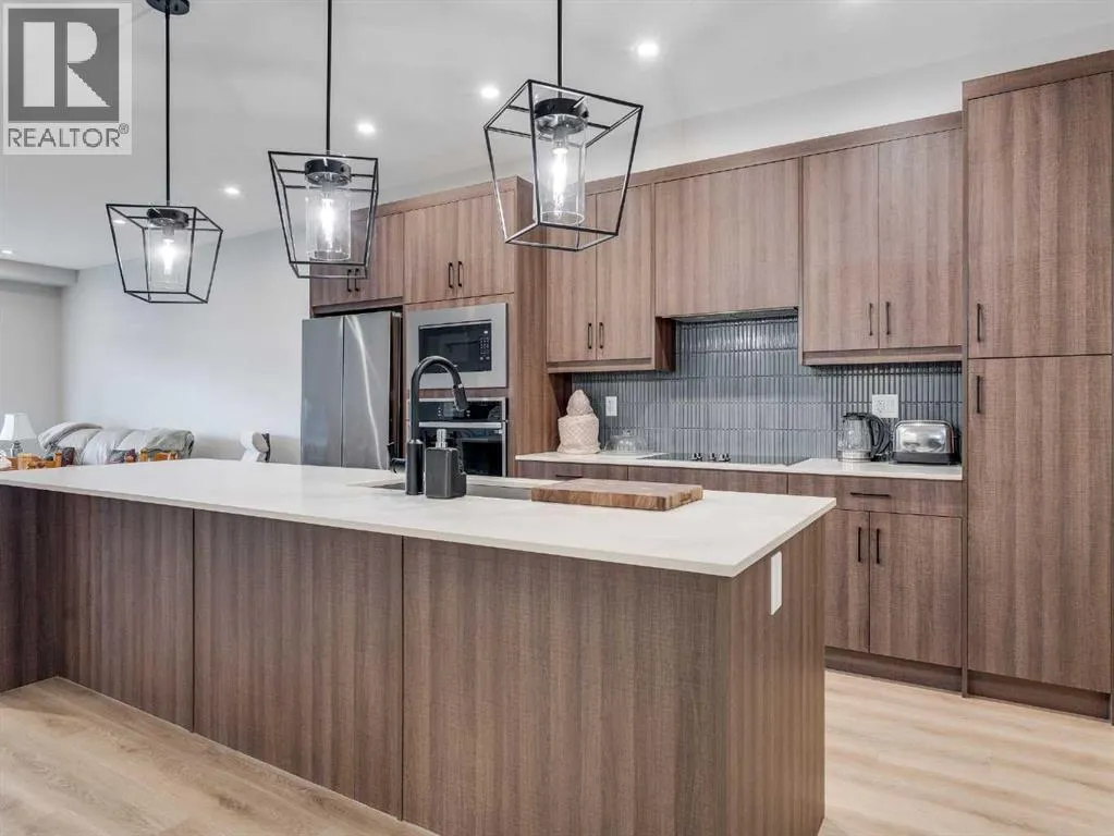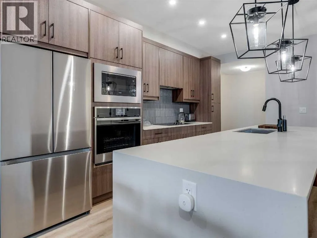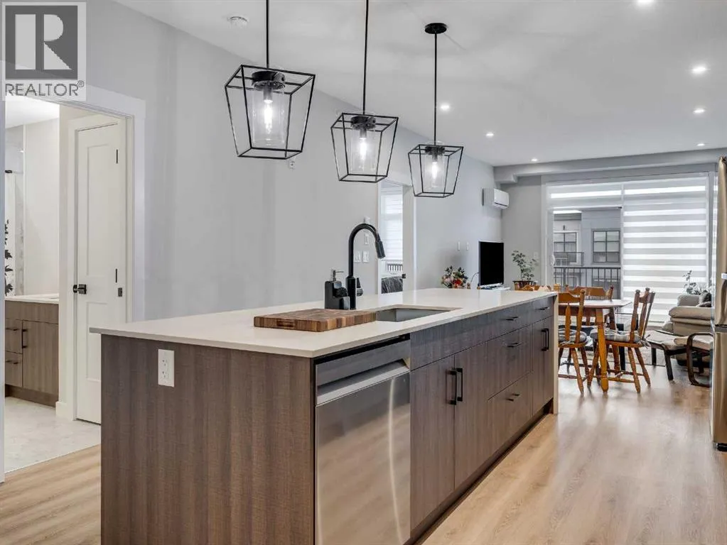 Experience the pinnacle of modern, low-maintenance living in this pristine top-floor 2 bed, 2 bath, corner unit, bathed in natural light from its full southwest exposure and offering breathtaking mountain views from its generous west-facing deck. Perfectly suited for first-time buyers or those seeking to downsize without compromise, this immaculate residence features an open-concept layout anchored by a gourmet kitchen with a stunning waterfall quartz island, seamlessly flowing into the dining and living areasâan ideal space for entertaining. The tranquil primary bedroom is a private retreat complete with a walk-in closet and a luxurious ensuite, while a second bedroom with ensuite access offers versatility for guests or family. Designed for year-round comfort and convenience, this move-in-ready home includes the essential luxury of built-in air conditioning, in-suite laundry, underground parking, underground storage and is situated in the vibrant heart of Seton, just steps from shops, restaurants, the South Health Campus, and with easy access to major commuter routes. This is an exceptional opportunity to own a home that shows better than new in one of Calgary's most sought-after communities; contact your favorite real estate agent today to schedule a private showing. (id:27476)