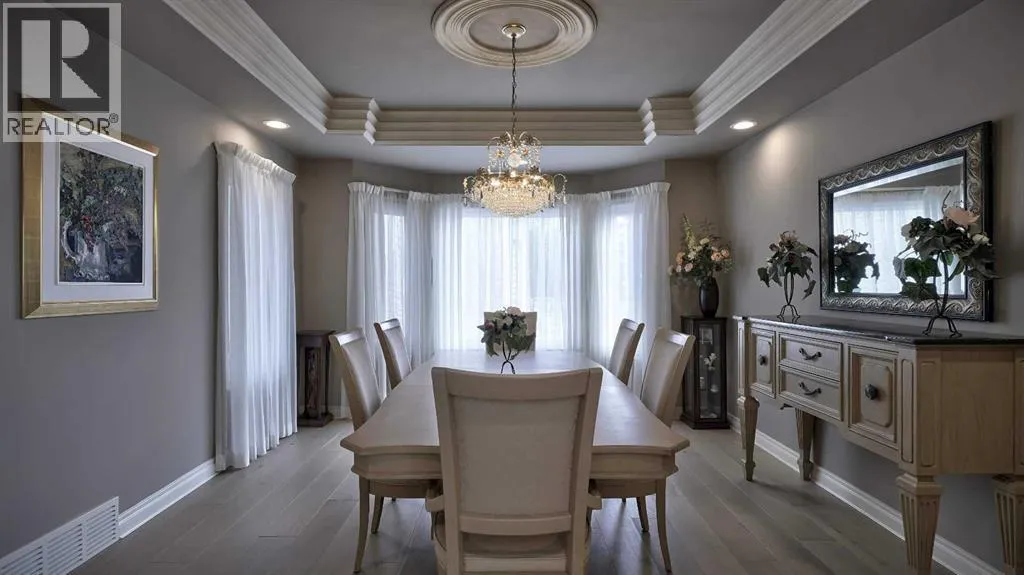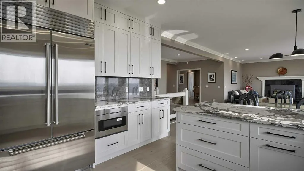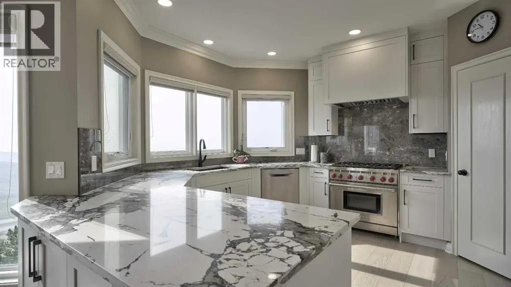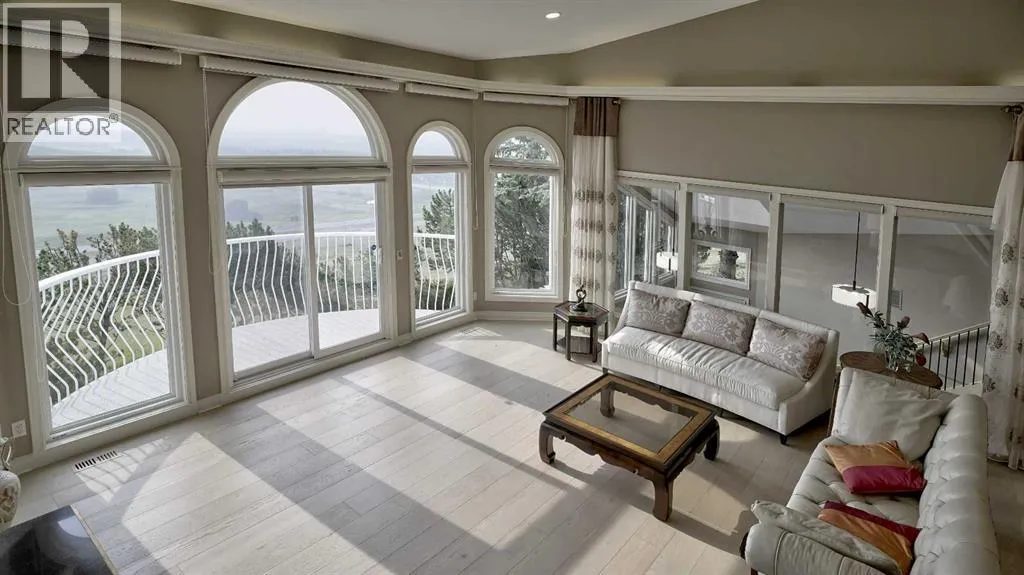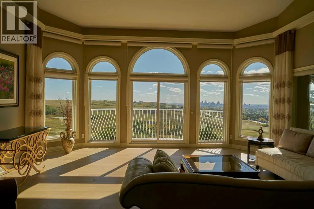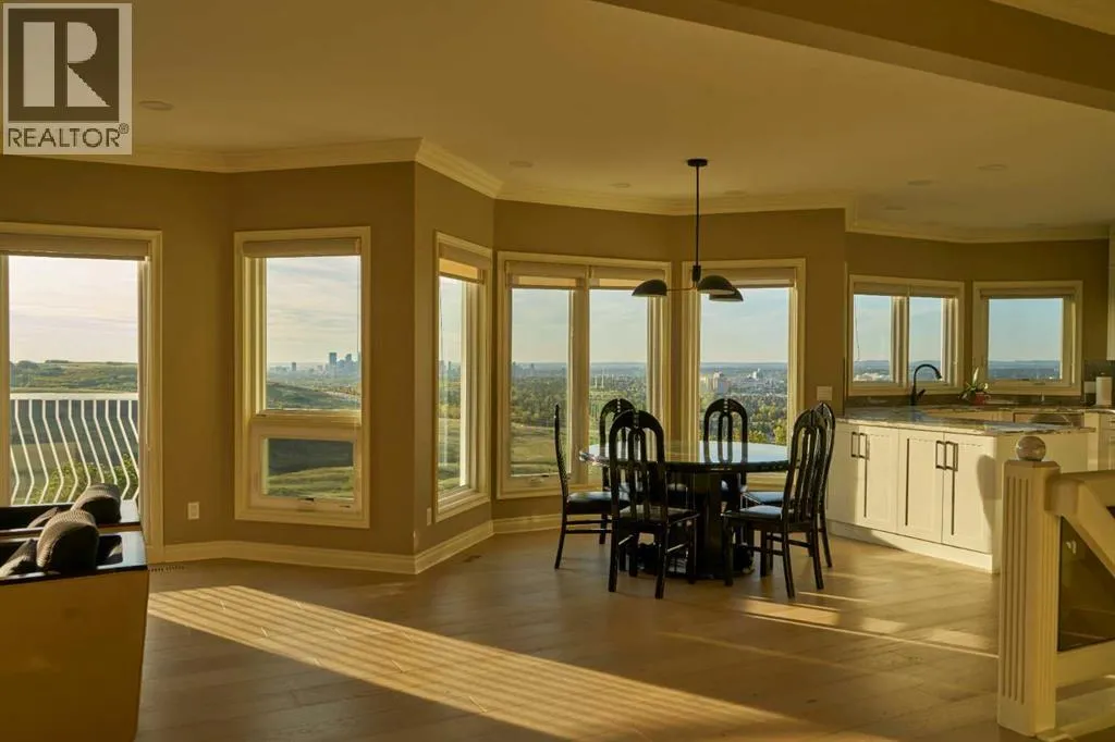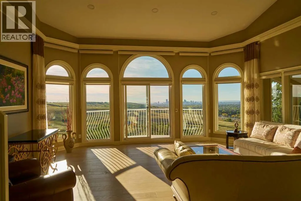 Top of the Hill! Welcome to Edelweiss Point, an exclusive enclave perched above Calgary with sweeping views of Nose Hill Park, Downtown, and the Rocky Mountains. This extraordinary two-storey walkout spans over 7,000 sq. ft. of total living space, perfectly combining luxury, scale, and functionality.Fully renovated in 2023, the home features a stunning chefâs kitchen with quartz counters and premium appliances, rich hardwood floors, updated millwork, and walls of windows that showcase panoramic vistas from every level.With 7 bedrooms, 6 bathrooms, and generously sized rooms throughout, thereâs space for family, guests, and entertaining. The walkout lower level includes a full kitchen, offering potential for a legal suite (with City approval).Outside, terraced landscaping flows seamlessly into the parkland below, creating a natural extension of your living space. Additional highlights include a triple garage and expansive driveway, combining style, convenience, and prestige.A rare opportunity to enjoy luxury living at Calgaryâs most coveted hilltop address. (id:27476)