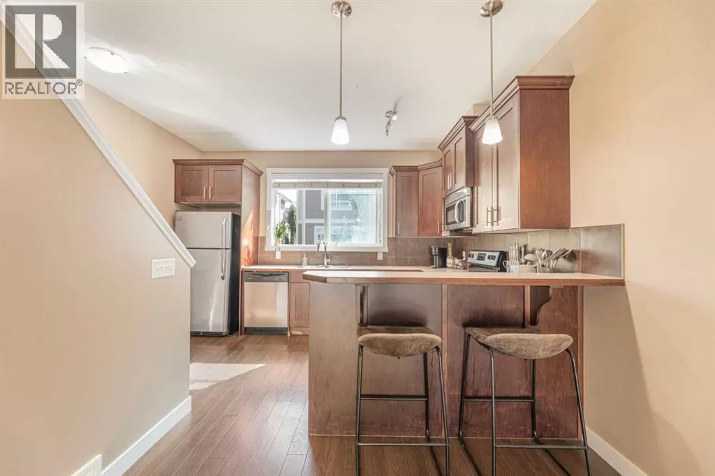 Welcome to Arrive at Skyview, a well-managed complex offering style and convenience in one of Calgaryâs fastest-growing communities.The spacious front entryway is versatile â large enough to use as a home office or a generous mudroom area to suit your lifestyle. The open-concept main floor features a stylish kitchen, a bright dining area, and a comfortable living room with a cozy fireplace â perfect for everyday living or entertaining. Upstairs, youâll find two generously sized bedrooms: the primary suite with its own 4-piece ensuite, and a second bedroom with a 4-piece bathroom just steps away. The added convenience of upstairs laundry makes daily living even easier. With two full bathrooms and a handy half-bath, thereâs plenty of space for everyone.Additional features include a single-attached garage, ample storage, and a great location. At Arrive at Skyview, youâll enjoy easy access to the airport, Stoney Trail, schools, parks, shopping, transit and more, making daily life simple and connected.Whether youâre a professional seeking a smart roommate-friendly layout, or a young family wanting a welcoming home in a growing community, this Skyview townhouse is move-in ready and waiting for you. Please call for your private showing today. (id:27476)