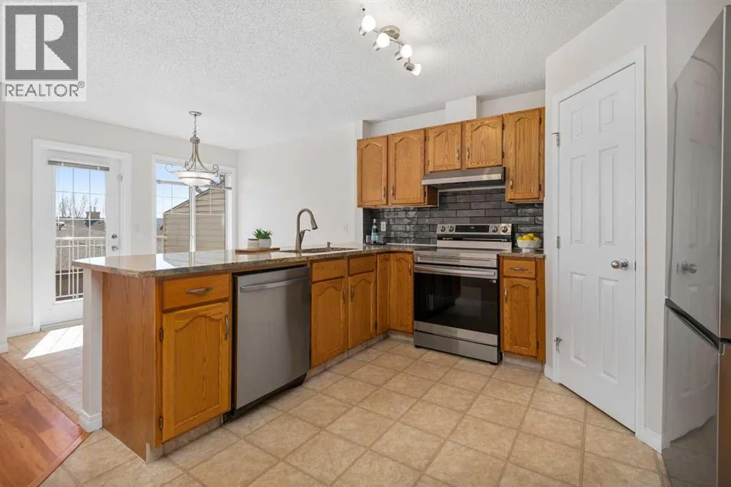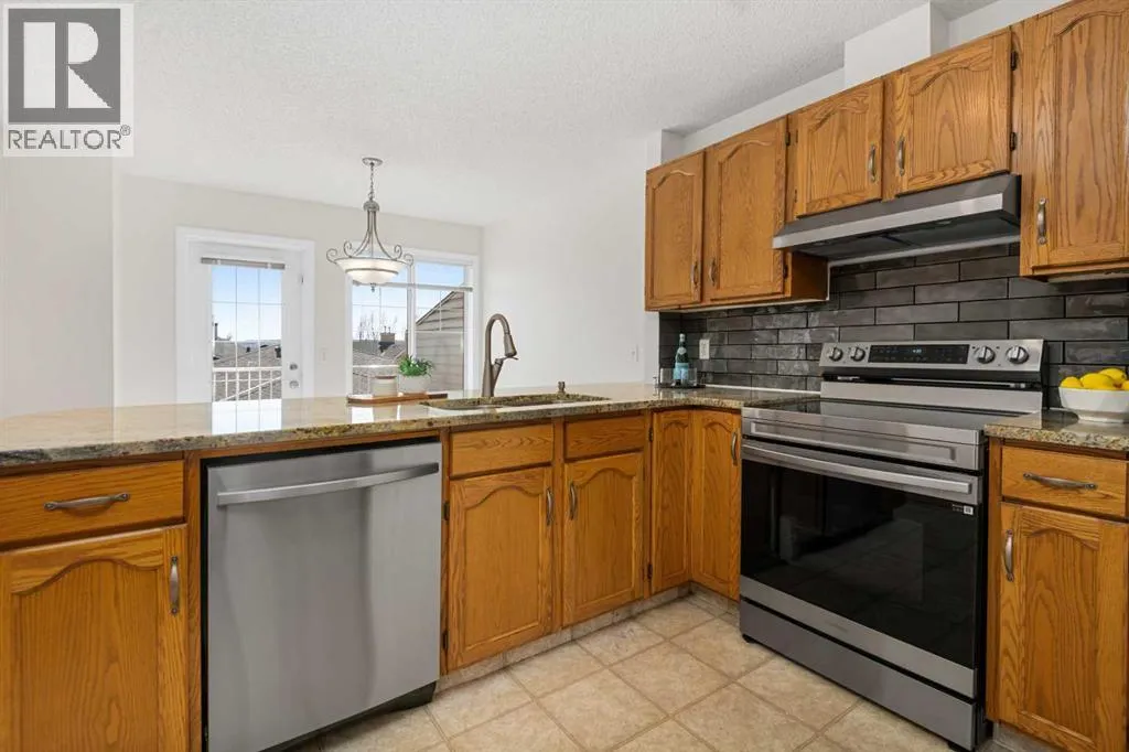 South-facing walkout with sweeping views and fresh updates!Welcome to 108 Hidden Creek Rise NW, a bright and inviting 3-bedroom semi-detached home in a quiet, professionally managed complex. Freshly painted and completely carpet-free, this home offers modern updates, low-maintenance living, and an attached garage for everyday convenience.The main floor features a stylish open layout with brand-new stainless steel appliances, granite counters, a new backsplash, and an electric fireplace to anchor the living space. Large south-facing windows flood the interior with natural light, while the balcony extends your living area with open views.Upstairs, the primary suite includes a walk-in closet and private ensuite. A generous flex space with built-in desk is ideal for working from home or managing your day-to-day, with two additional bedrooms and a full bath completing the level.The walkout basement is a rare findâbright, spacious, and ready to be finished into a home gym, rec room, or guest space, giving you the chance to add both space and value.Low condo fees cover lawn care and snow removal, so you can enjoy more free time. With quick access to schools, transit, shopping, parks, pathways, and Stoney Trail, this home delivers both convenience and connection to the outdoors.*Property has been virtually staged. (id:27476)