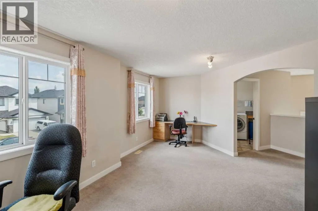 Welcome to this beautifully maintained 2183 sqft home in the heart of Bridlewood community. original owner! With a west-facing backyard that opens directly onto a green space and a peaceful pond, this home offers stunning sunset views and exceptional tranquility. Large windows throughout fill the home with natural light, creating a warm and inviting atmosphere. Step inside to a grand foyer that leads into an open-concept main floor featuring a bright kitchen with a breakfast bar island and a good-sized pantry. Cozy living area with fireplace, and a versatile open office/second dining room. A convenient half bath with a window completes the main level. Upstairs, you'll find a private retreat primary bedroom complete with 5-piece ensuite and a spacious walk-in closet with its own window. Two additional generous-sized bedrooms, 2nd full bath, and a large bonus room with a dedicated office/computer nook, and convenient upstairs laundry with storage space. The double attached garage provides ample space for vehicles and storage. Outside, enjoy summer evenings on a wood deck in your private west-facing backyard, ideal for BBQs, relaxing with a book, or letting kids and pets play freely with thoughtful landscaping yard. This home also features a newer wind resistant roof (2023). Located just minutes from Glenmore Christian Academy, Bridlewood Elementary, parks, transit, shopping, and with quick access to Stoney Trail, Fish Creek Park, and Spruce Meadowsâthis home offers unmatched convenience in a quiet, family-friendly neighborhood with a strong sense of community. (id:27476)