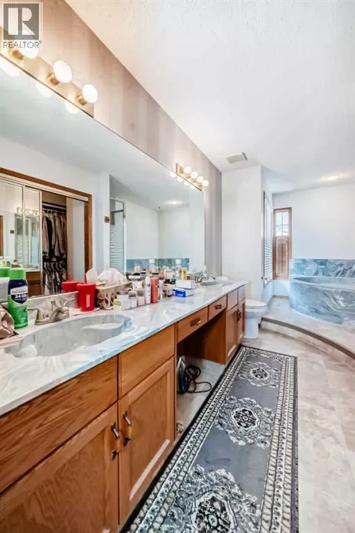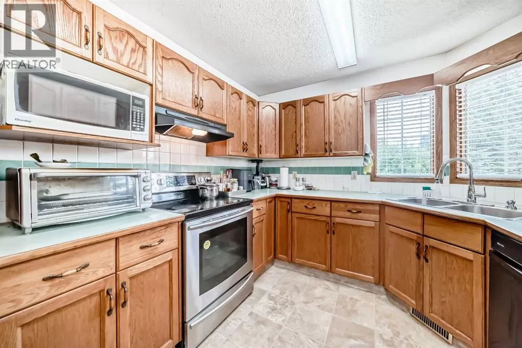 Impressive 2-storey split with timeless clay tile roof, striking stucco/brick exterior, and an oversized double garage! Step into a bright living room with soaring cathedral ceilings, a sunny oak kitchen with plenty of cabinet space, and a dining area overlooking the family room with a stunning stone gas fireplace, wet bar, and access to the south-facing deck. The master retreat offers a walk-in closet and a spa-like 5-pc ensuite with jetted tub and separate shower. Enjoy a huge fenced yard with RV parking & storage shed, all tucked away in a quiet cul-de-sac. A true gem with endless potentialâyour home sweet home awaits! (id:27476)