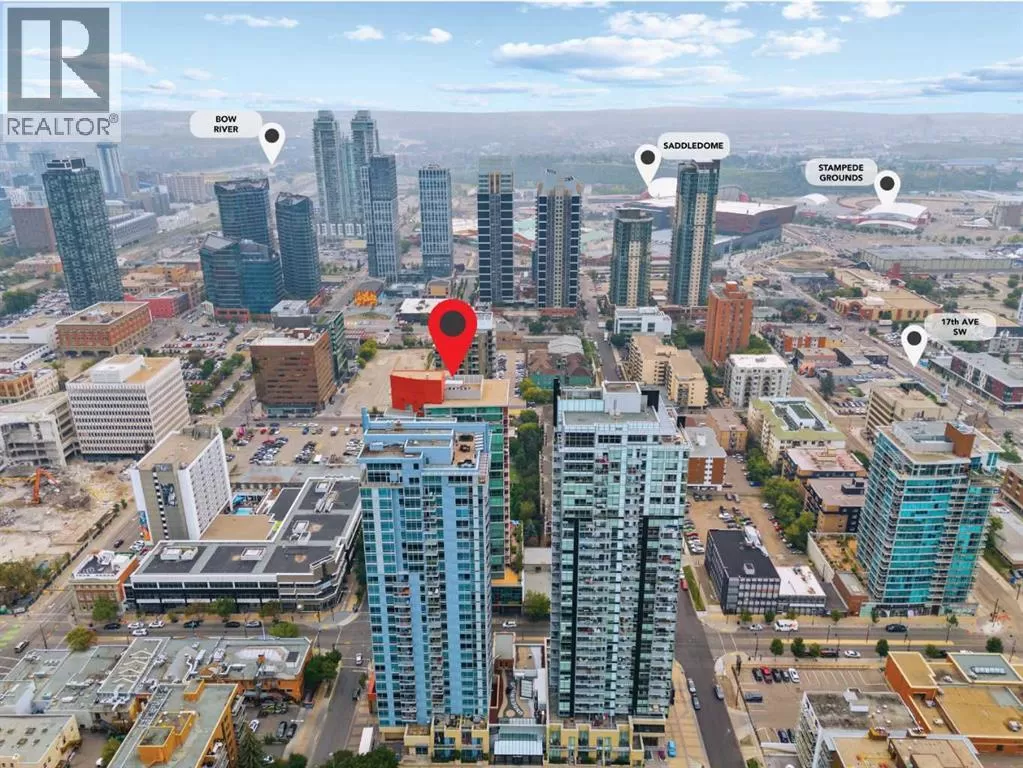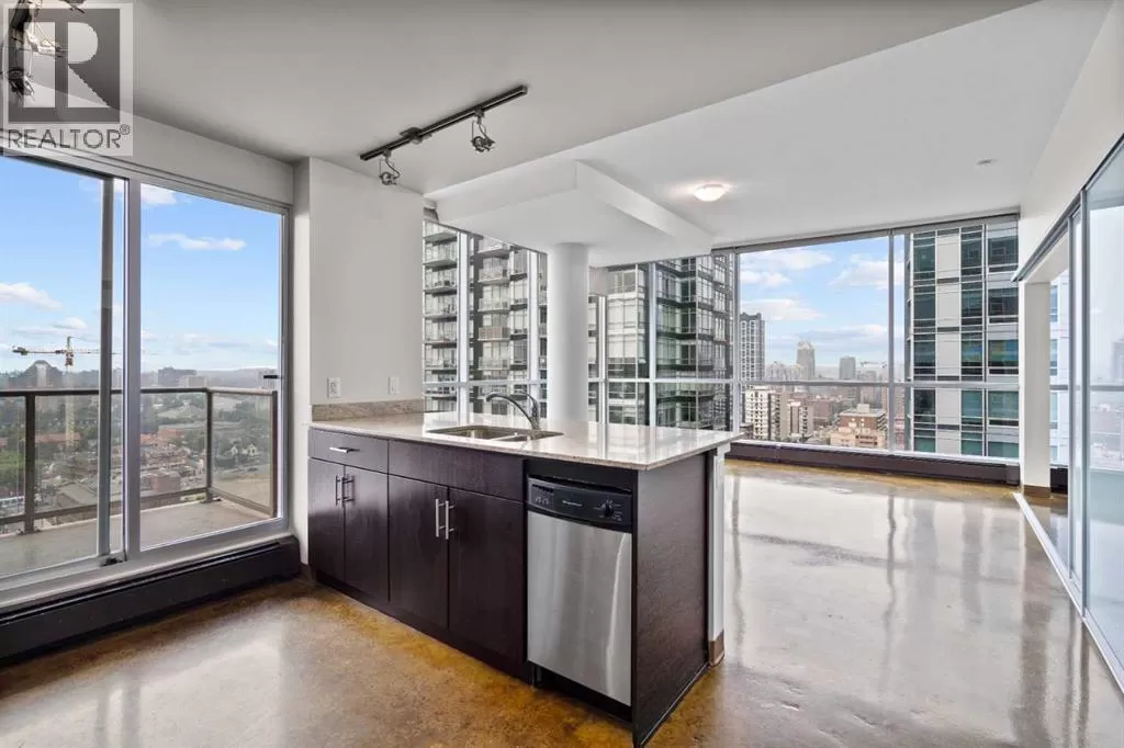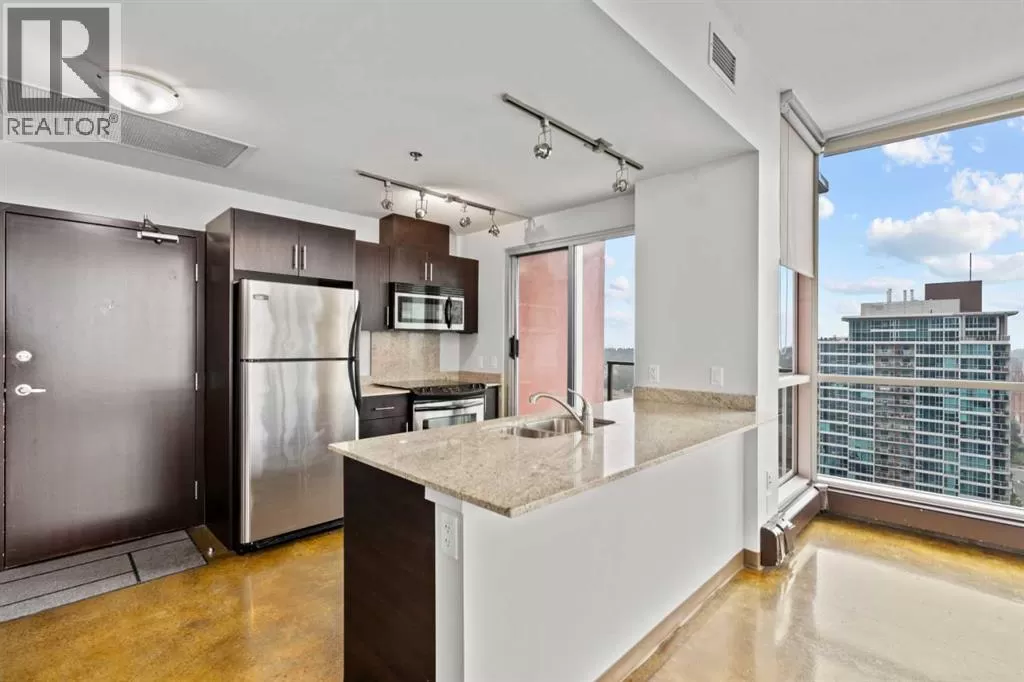 Perched high on the 16th floor of Colours in Calgaryâs vibrant Beltline, this stylish end unit offers an urban lifestyle wrapped in unforgettable views. Floor to ceiling windows flood the open layout with natural light while framing iconic cityscapes including the Calgary Tower and Stampede grounds. The modern kitchen blends design with function, featuring stone counters, stainless steel appliances, a peninsula island with seating and direct access to the balcony where summer barbeques can be enjoyed against a skyline backdrop. The dining area is perfectly positioned to take in the twinkling lights of downtown while the adjacent living room provides a relaxing retreat with ever-changing vistas. A private bedroom pairs with a 4-piece bathroom finished with stone counters and in-suite laundry adds everyday convenience. Polished concrete floors, central air conditioning and secure heated underground parking enhance comfort and style. From your balcony, watch fireworks light up the sky and soak in Calgaryâs energy from a personal vantage point. Outside the buildingâs door, discover one of the cityâs most dynamic neighbourhoods with premier dining, pubs, coffee shops and shopping steps away, along with Central Memorial Park, Haultain Park tennis courts, the Stampede grounds and the nightlife of 17th Avenue. With pet-friendly and short-term rental friendly policies upon board approval, Colours is a community that embraces flexibility. This residence balances design, comfort and location, offering a truly connected downtown lifestyle! (id:27476)