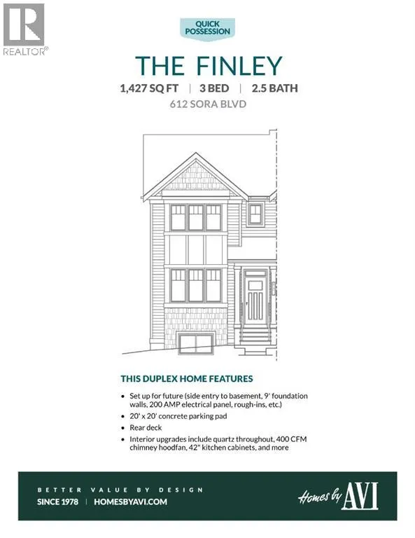 ITâS AMAZING HOW DIFFERENT A HOME FEELS WHEN YOUâRE NOT LOOKING AT SOMEONE ELSEâS GARAGEâthis Finley in Sora gives you a FRONT-ROW VIEW OF THE POND instead. And behind that view? 1,427 square feet of bright, functional space built for both family life and future potential. Step inside and youâll find 9â CEILINGS on the main floor, open living and dining areas, and a kitchen that gets all the details right: 42â UPPER CABINETS, QUARTZ COUNTERTOPS, a CHIMNEY HOOD FAN, BUILT-IN MICROWAVE, UPGRADED SILGRANIT SINk, and a GAS LINE ROUGHED-IN if youâd rather cook on flame. Upstairs, three bedrooms and a convenient laundry room keep family life functional without sacrificing style, with quartz counters carried through every bathroom.But itâs whatâs behind the walls and under the floorboards that really sets this property apart. Homes by Avi thought ahead with 9â FOUNDATION WALLS, a SIDE ENTRY, and FULL BASEMENT ROUGH-INS for a bathroom, laundry, and wet bar or kitchenette. Add in an upgraded 80-GALLON HOT WATER TANK (finally, showers for everyone), a 200amp electrical panel, and youâve got a home thatâs as future-proof as it getsâwhether youâre an investor eyeing a potential basement apartment, or a family that likes the idea of options down the road.Outside, the upgrades continue. A 10â x 8â8â rear deck comes with a BBQ gas line already roughed-in, the front yard sod will soon be in place, and a 20âX20â CONCRETE PARKING PAD out back is ready for vehicles nowâor a garage later. In other words, move-in ready without the weekend trips to the hardware store.And then thereâs the community. SORA IS ONE OF SOUTHEAST CALGARYâS MOST EXCITING NEW NEIGHBOURHOODS, designed around wide boulevards, wetlands, and connected pathways that make it easy to get outside. Schools, playgrounds, and shops are on the way, while QUICK ACCESS TO STONEY TRAIL puts the rest of the city within reach. For families, that means a fresh start in a neighbourhood built to grow with you. For investors, i t means early entry into a community with momentum.Brand new, never lived in, and built with upgrades that actually matterâthis is the kind of listing that doesnât stick around. Book your showing and see why Sora is already on so many buyersâ radar. ⢠PLEASE NOTE: Photos are of a finished Showhome of the same model â fit and finish may differ on finished spec home. Interior selections and floorplans shown in photos. (id:27476)