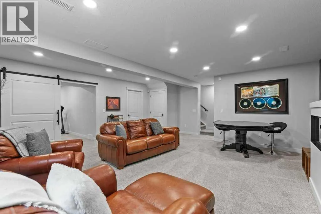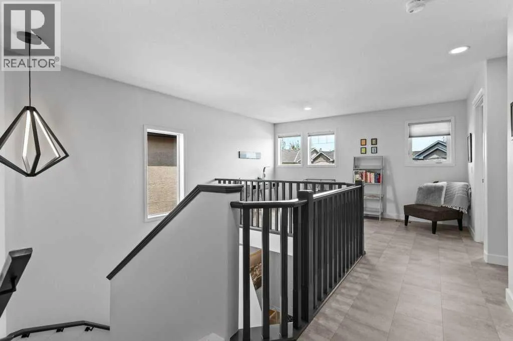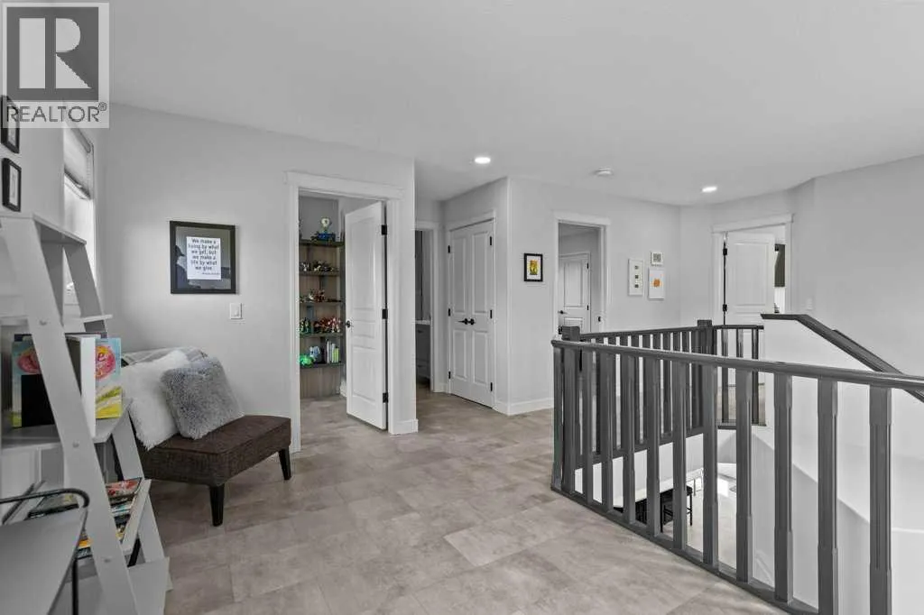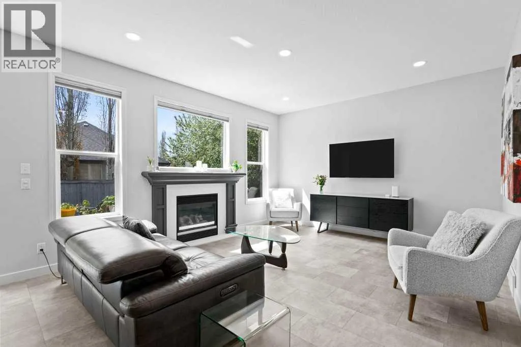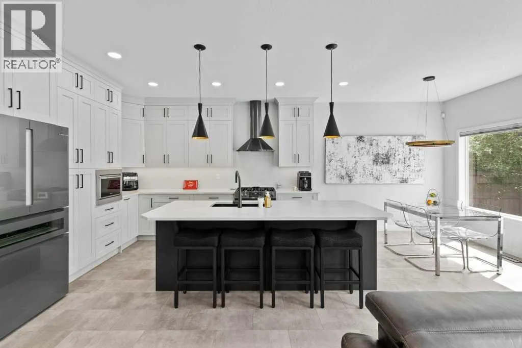Be prepared to be wowed by this extensively renovated two storey home in desirable Cranston Estates, complete with striking curb appeal and a triple heated garage. Over the past three years, more than $350,000 has been invested in thoughtful, top-to-bottom renovations, transforming this home into a truly turnkey property that combines high-end finishes with comfortable, functional family living. The main floor welcomes you with a spacious foyer and a custom designed den featuring sleek built-in cabinetry and a dedicated desk area, ideal for working from home. The fully renovated kitchen is a showstopper, boasting full-height custom white cabinetry, top-of-the-line appliances, quartz countertops, and a dark-stained, oversized island that creates stunning contrast and provides ample space for entertaining. The adjacent dining nook offers access to the rear deck and flows seamlessly into the bright, open-concept great room with a cozy gas fireplace. A large mudroom/laundry area and a stylish half bath complete the main level. Upstairs, youâll find a bonus room loft area, perfect as a lounge or play space, a spacious primary suite with a luxurious, fully reimagined 5-piece ensuite, and a walk-in closet designed with California Closets. Bedrooms two and three are well sized, each with closet built-ins, and one cleverly outfitted with Murphy bunk beds. A tastefully modernized 4-piece bathroom completes the upper level. The fully finished lower level offers even more living space with a 3-piece bathroom, a rec room featuring an electric fireplace, a fourth bedroom, and a utility room. The west-facing backyard is entirely maintenance-free, finished with premium artificial turf, while the front yard is beautifully landscaped with stonework and shrubs for year-round curb appeal. The list of renovations is extensive and showcases the quality and care put into this home. GEMSTONE exterior lighting adds elegance and flair, while the Caséta smart lighting system offers cutting-ed ge convenience. Ultra-durable luxury vinyl tile flooring spans the main and upper levels, complemented by UV-blocking window film on all windows to enhance comfort and efficiency. Every closet has been customized with California Closets, all bathrooms have been renovated to a high standard, and designer lighting fixtures have been thoughtfully selected throughout. The triple heated garage features epoxy flooring, and the home is equipped with central air conditioning for year-round comfort. Beautiful inside and out, this exceptional home is located just steps from schools, amenities, golf, Fish Creek Park, and the community pathway system, with easy access to both Stoney and Deerfoot Trail. Residents also enjoy access to the Cranston Community Centre, offering tennis courts, a hockey rink, basketball courts, a playground, and a splash park, perfect for families and outdoor enthusiasts alike. Donât miss your chance to own this extensively renovated, high-end home! Cranston living at its absolute finest! (id:27476)
