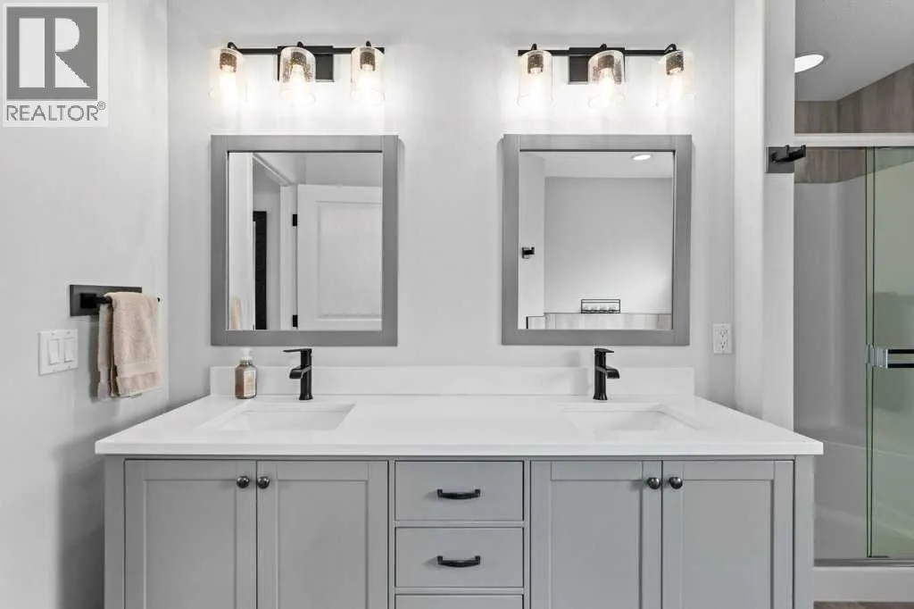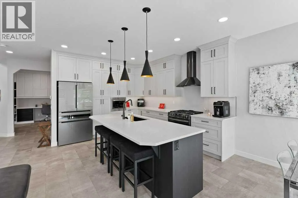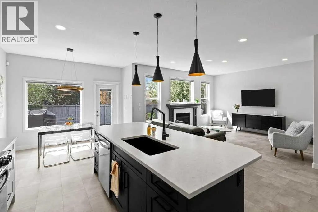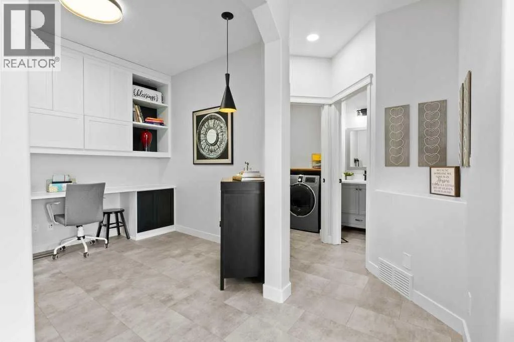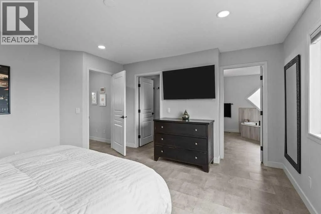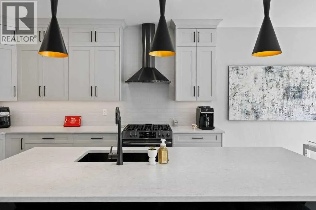 Be prepared to be wowed by this extensively renovated two storey home in desirable Cranston Estates, complete with striking curb appeal and a triple heated garage. Over the past three years, more than $350,000 has been invested in thoughtful, top-to-bottom renovations, transforming this home into a truly turnkey property that combines high-end finishes with comfortable, functional family living. The main floor welcomes you with a spacious foyer and a custom designed den featuring sleek built-in cabinetry and a dedicated desk area, ideal for working from home. The fully renovated kitchen is a showstopper, boasting full-height custom white cabinetry, top-of-the-line appliances, quartz countertops, and a dark-stained, oversized island that creates stunning contrast and provides ample space for entertaining. The adjacent dining nook offers access to the rear deck and flows seamlessly into the bright, open-concept great room with a cozy gas fireplace. A large mudroom/laundry area and a stylish half bath complete the main level. Upstairs, youâll find a bonus room loft area, perfect as a lounge or play space, a spacious primary suite with a luxurious, fully reimagined 5-piece ensuite, and a walk-in closet designed with California Closets. Bedrooms two and three are well sized, each with closet built-ins, and one cleverly outfitted with Murphy bunk beds. A tastefully modernized 4-piece bathroom completes the upper level. The fully finished lower level offers even more living space with a 3-piece bathroom, a rec room featuring an electric fireplace, a fourth bedroom, and a utility room. The west-facing backyard is entirely maintenance-free, finished with premium artificial turf, while the front yard is beautifully landscaped with stonework and shrubs for year-round curb appeal. The list of renovations is extensive and showcases the quality and care put into this home. GEMSTONE exterior lighting adds elegance and flair, while the Caséta smart lighting system offers cutting-ed ge convenience. Ultra-durable luxury vinyl tile flooring spans the main and upper levels, complemented by UV-blocking window film on all windows to enhance comfort and efficiency. Every closet has been customized with California Closets, all bathrooms have been renovated to a high standard, and designer lighting fixtures have been thoughtfully selected throughout. The triple heated garage features epoxy flooring, and the home is equipped with central air conditioning for year-round comfort. Beautiful inside and out, this exceptional home is located just steps from schools, amenities, golf, Fish Creek Park, and the community pathway system, with easy access to both Stoney and Deerfoot Trail. Residents also enjoy access to the Cranston Community Centre, offering tennis courts, a hockey rink, basketball courts, a playground, and a splash park, perfect for families and outdoor enthusiasts alike. Donât miss your chance to own this extensively renovated, high-end home! Cranston living at its absolute finest! (id:27476)