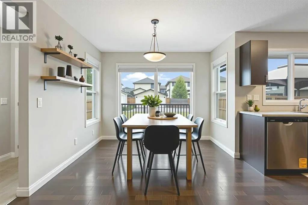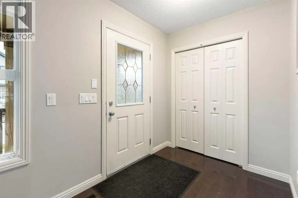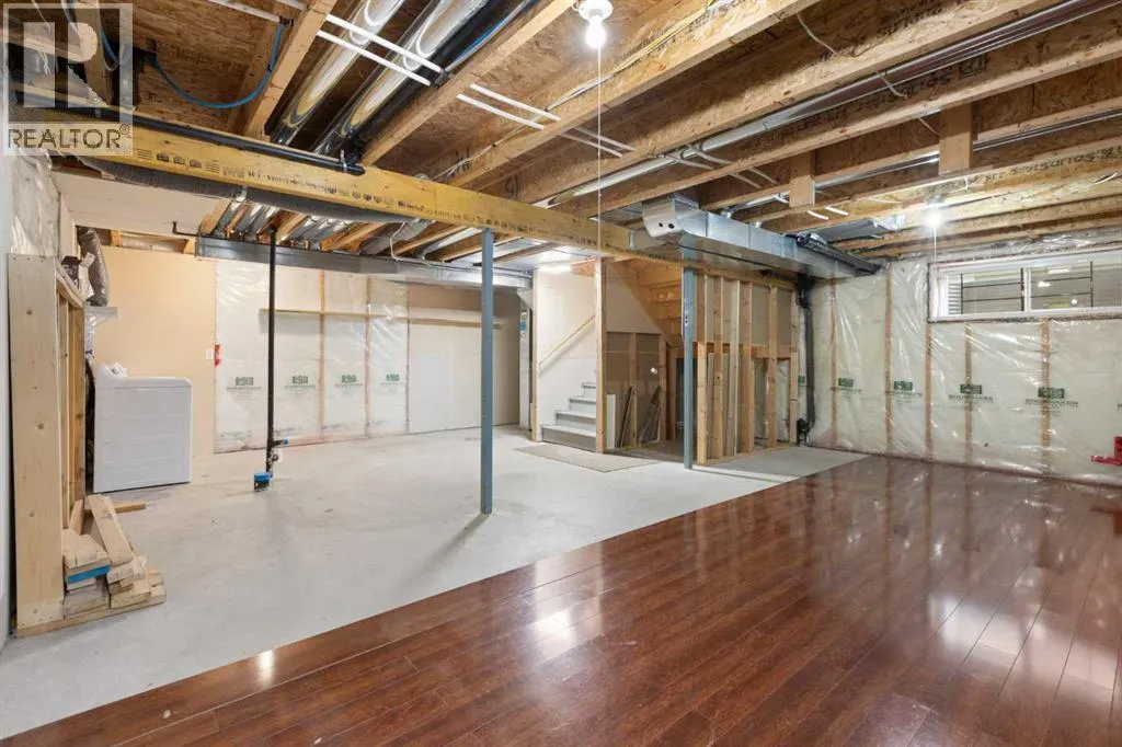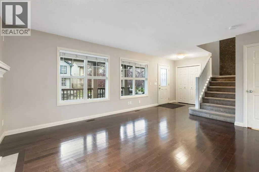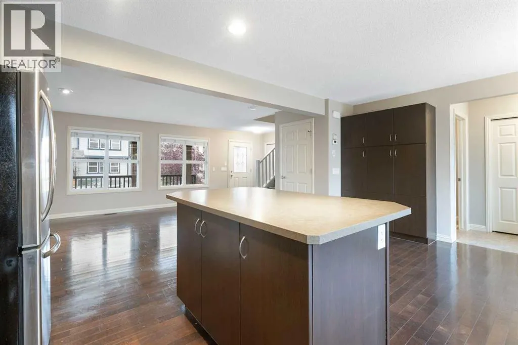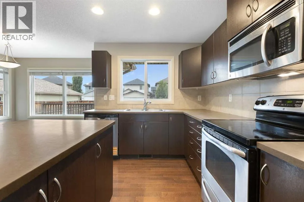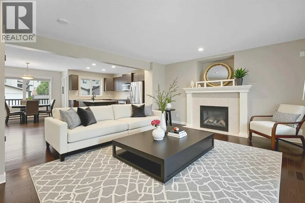 Wonderful Family Home near parks and schools on a quiet street. 3 bedroom 2.5 bathroom 2 story home. A covered front porch greets you as you approach the home. Open concept main floor with dark maple hardwood throughout. Stately fireplace in the Livingroom. Kitchen has a sit up island with room for 3-4 stools and lots of prep space for the aspiring chef. Main floor also has a half bath. Access to the large back deck and a good sized back yard. The second floor has 3 bedrooms. The primary has a nice 4 piece ensuite bath and room for a king bed. The other 2 bedrooms have lots of space for the growing family. The basement is unfinished and has potential for 2 more bedrooms, rec room space and is roughed in for a full bathroom. There is a parking pad that is perfect for the potential new double garage. Some photos have been virtually staged to demonstrate the potential use of space. (id:27476)