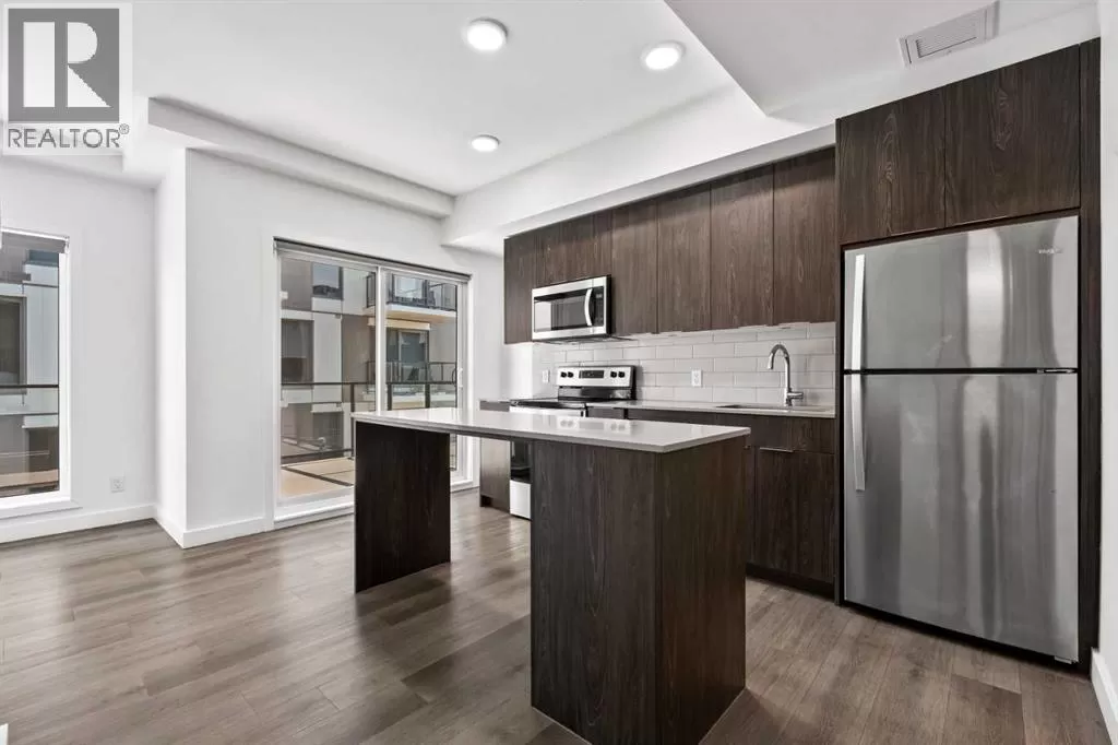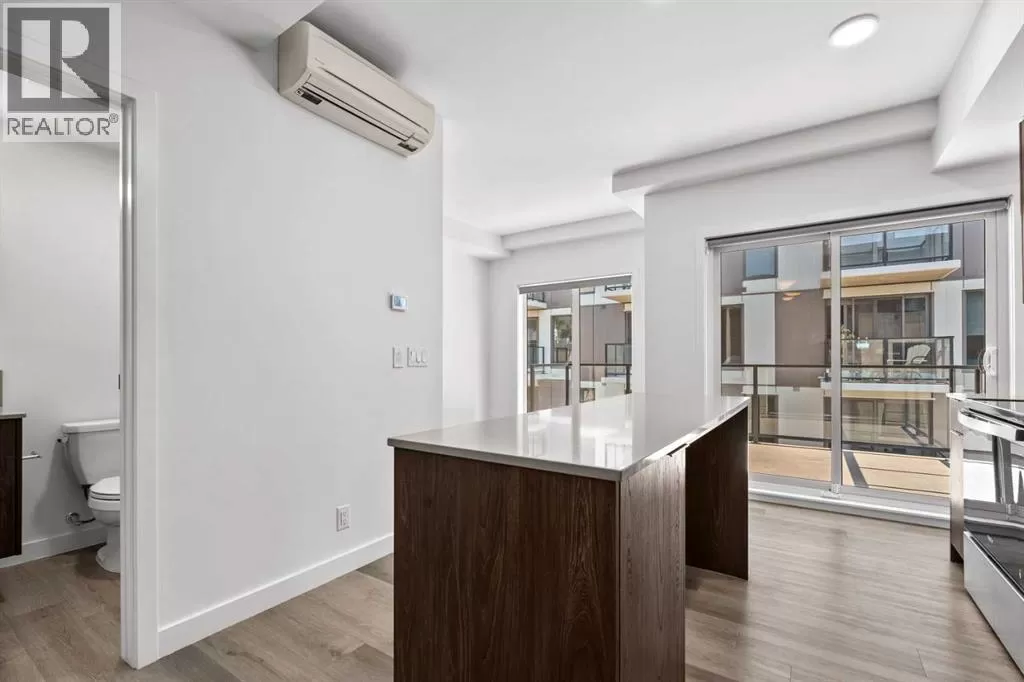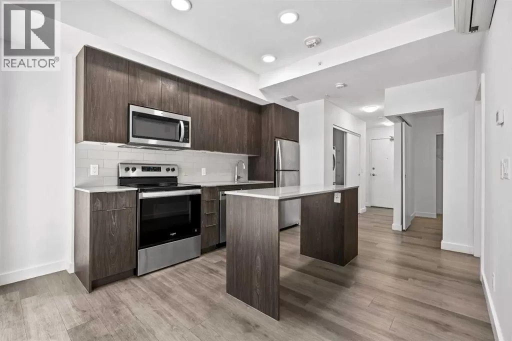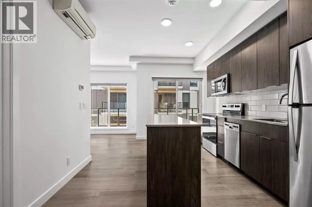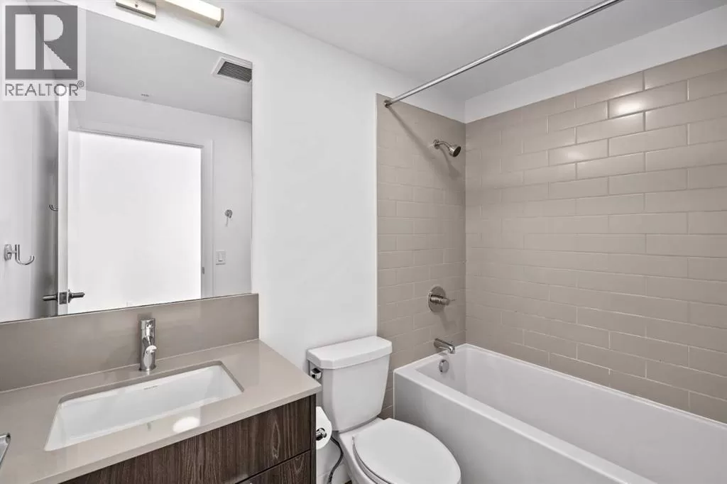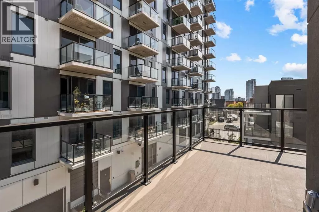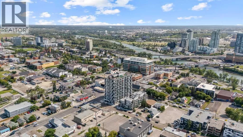 Welcome to your stunning top floor unit with breathtaking view of Calgary Downtown, Fourth Ave bridge over the Bow river, an enchanting Air BnB friendly, modern air-conditioned condo. Minto partnered with PCL, to design and construct this 2023 building, that perfectly blends style, comfort, and convenience. This bright and airy 2-bedroom, 2-bathroom home features a contemporary open-concept layout with large windows that flood the space with natural light. The sleek kitchen is designed with functionality and aesthetics in mind, offering an island with an eating bar, perfect for casual dining or entertaining. A spacious dining area flows seamlessly into the cozy yet open living room, creating a welcoming atmosphere for both everyday living and hosting guests. Step out onto the expansive private large wrap around balconyâideal for morning coffee, evening relaxation, or summer BBQs. The primary bedroom is a true retreat, complete with a private 4-piece ensuite, while the second bedroom and bathroom provide comfort and flexibility for guests, a home office, or growing families. Thoughtfully designed with modern finishes throughout, this unit offers a perfect blend of practicality and style, making day-to-day living both easy and enjoyable. Situated in a desirable, amenity-rich neighborhood, this location offers the best of both convenience and lifestyle. Just steps from your door, you'll find an array of local cafes, restaurants, and boutique shops that give the area its unique charm. Enjoy leisurely strolls or active outings along nearby riverside pathways and green spaces, or take advantage of the close proximity to fitness centers, grocery stores, and essential services. Public transit is easily accessible, simplifying your commute whether you're headed downtown or exploring the city. With everything you need within reachâincluding your own spacious balcony oasisâthis is a home that truly delivers on comfort, location, and modern living. (id:27476)