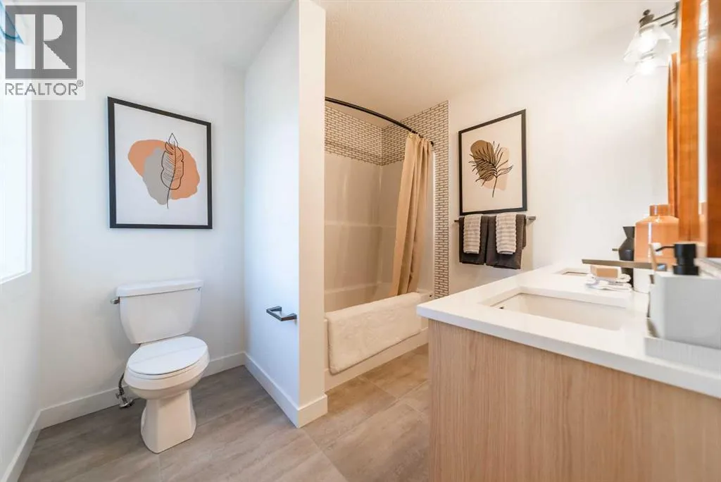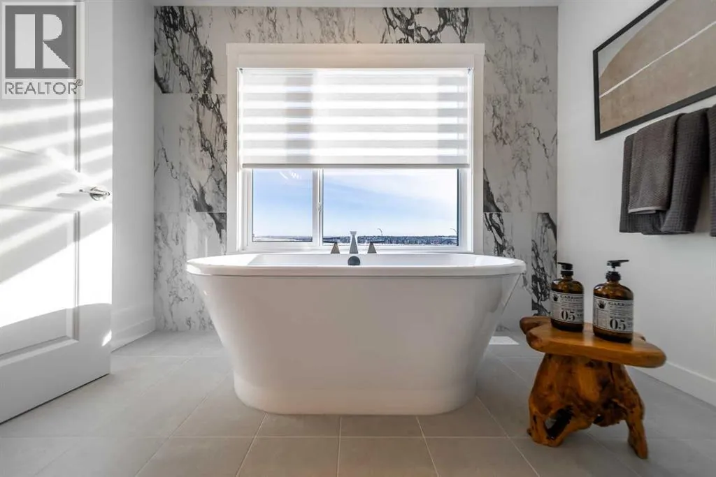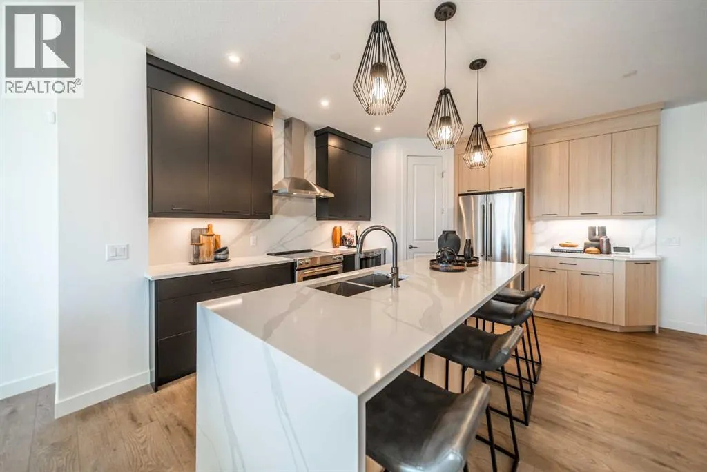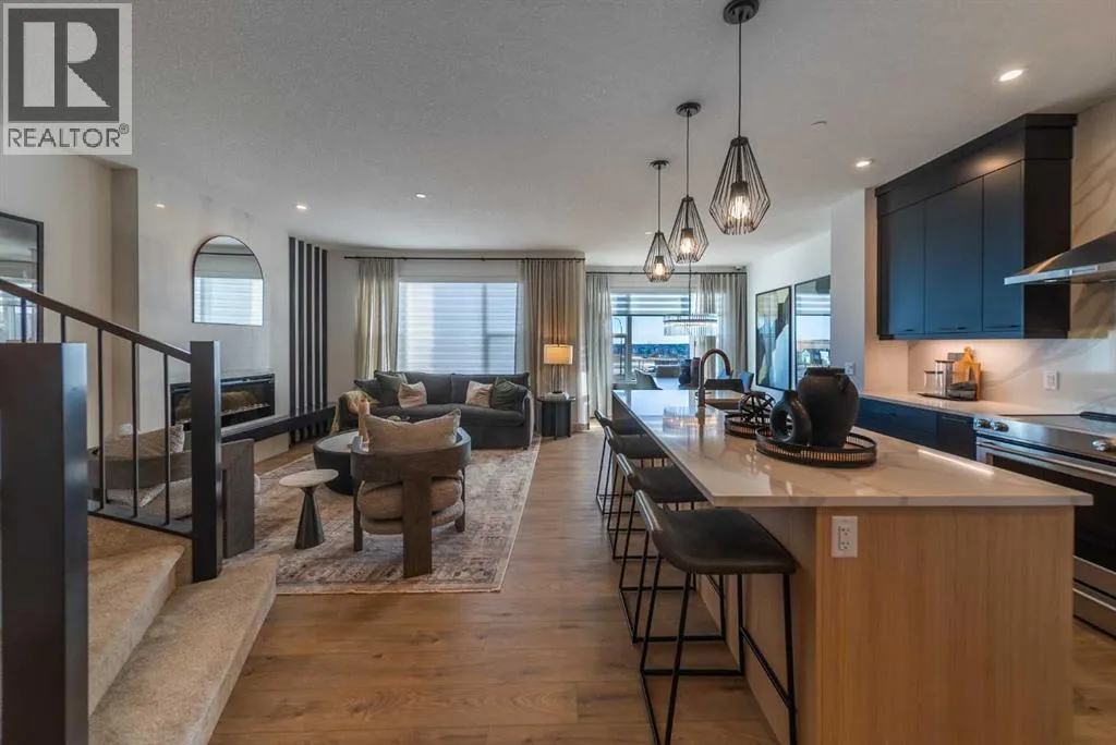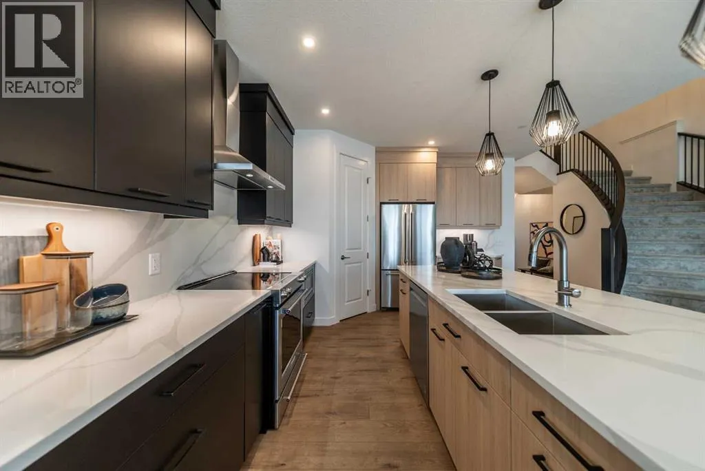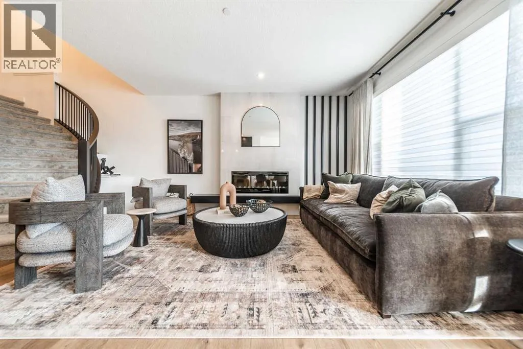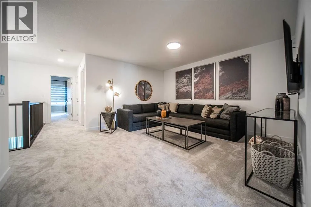 SHOW HOME FOR SALE! The beautiful and thoughtfully designed Robson 24 show home is situated on an oversized conventional pie lot in the desirable community of Livingston and it is now for sale! At nearly 3,000 square feet of space, this home features 3 living areas, 5 bedrooms, 4 bathrooms, and 2 flex spaces - making this the perfect family home and ideal for those wanting a layout designed for multi-generational living. The bright and open main level features an impressive curved staircase that offers a timeless design aesthetic and seamlessly integrates into the design. The expansive kitchen features two-tone cabinetry, a waterfall quartz island and quartz slab backsplash, chimney hood fan, built-in microwave and large pantry. The kitchen overlooks both the living and dining areas - making this the ideal space for entertaining with a wall of windows that flood the main level with natural light all day long. A back entrance leads to the rear deck that overlooks the fully landscaped private backyard. The main level is complete with a bedroom and full bathroom - ideal for those with mobility issues or for multi-generational living. Iron spindle railing leads to the upper level where you're greeted by a central bonus room that separates the primary suite from the secondary bedrooms for added privacy. Vaulted ceilings in the primary bedroom create an open and bright space with an expansive walk-in closet and the 5pc ensuite you've dreamed of! A fully tiled shower with 10mm glass surround, soaker tub with tiled feature wall and dual sinks complete the owner's oasis. Two more bedrooms and a 5pc bathroom with dual sinks and a separate laundry room with built-in cabinetry and quartz countertop complete the upper level. The professionally developed basement has large windows providing natural light and features a large rec room, perfect for a TV area, a flex space that is ideal for children's play area, a home office, bedroom and full bathroom! When purchasing a show home, you don't just get a beautiful home, you get all of the added design touches and upgrades you want including custom window treatments, wallpaper feature walls, central A/C, completed landscaping and more. This brand new home is move-in ready and includes Alberta New Home Warranty - allowing you to purchase with peace of mind. This is your opportunity to purchase a one-of-a-kind home that has been beautifully designed inside and out! (id:27476)