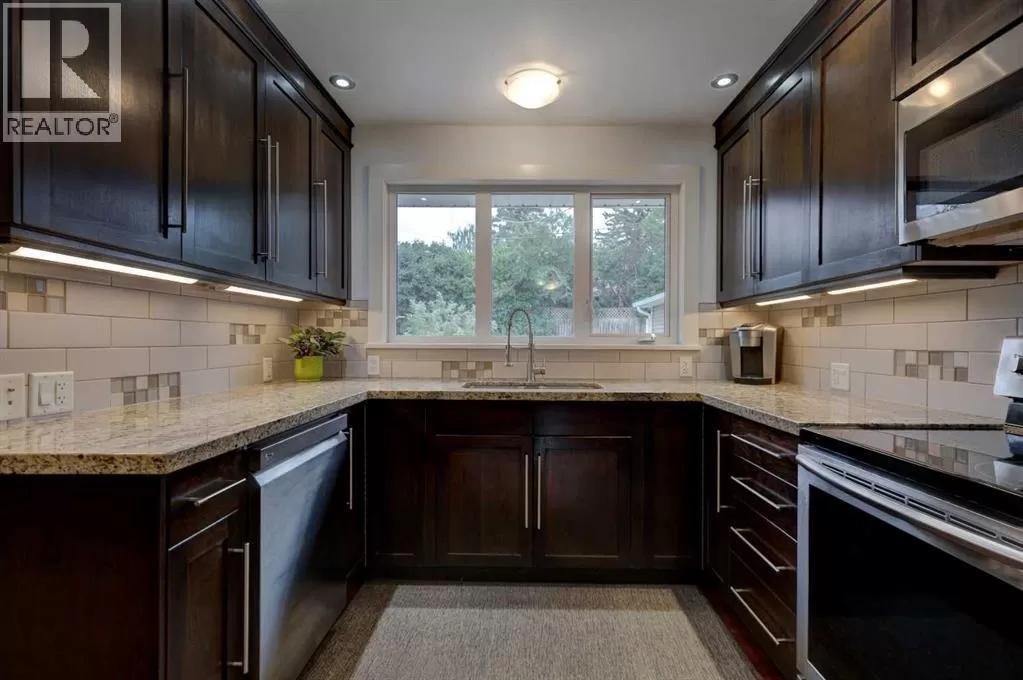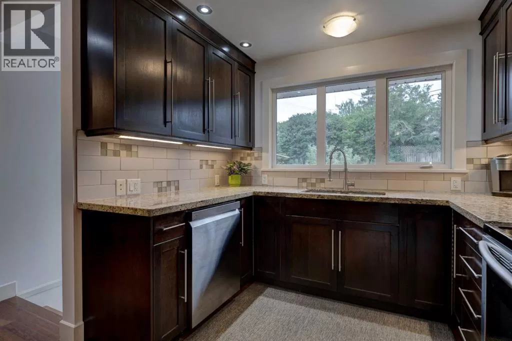 Welcome to this beautifully updated bungalow located in one of the most desirable neighborhoods in Calgary. Blending timeless charm with modern upgrades, this home is move-in ready and perfect for those seeking comfort, convenience, and character.Step inside to discover a light-filled, open-concept living space featuring refinished hardwood floors, neutral paint, and updated lighting fixtures throughout. The modern kitchen boasts granite countertops and stainless steel appliances, flowing seamlessly into the dining area â perfect for entertaining. All bathrooms have been tastefully renovated with contemporary finishes. The spacious primary suite offers a private retreat, while an additional bedrooms provide flexibility for family, guests, or a home office on the main floor. 2 extra bedrooms and a full bath can be found in the basement.Outside, enjoy a fully fenced backyard with a beautiful landscaping featuring perennials and fruit trees, and a fire pit area, ideal for summer BBQs or relaxing evenings. Donât miss your chance to own this gem â schedule your showing today! (id:27476)