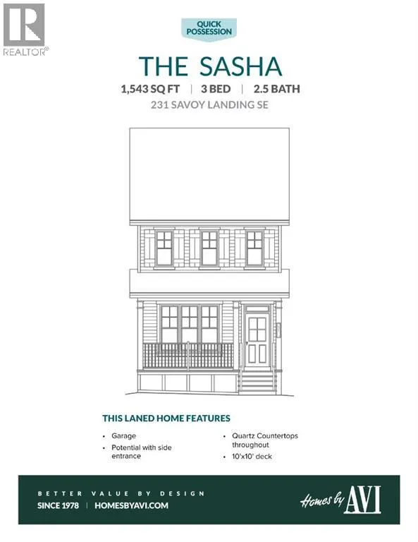 SOME NEIGHBOURHOODS PROMISE GREEN SPACE; RANGEVIEW HANDS YOU A SET OF GARDEN TOOLS and a spot to actually grow something worth eating. This is CALGARYâS FIRST FARM-TO-TABLE COMMUNITY, designed around orchards, garden plots, and harvest festivals instead of just cul-de-sacs and swing sets. At 231 Savoy Landing SE, you donât just buy a new homeâyou buy into a lifestyle where your pantry can be stocked from down the block and your kids grow up knowing what real tomatoes taste like.The Sasha model from Homes by Avi was built with real family life in mind. Out front, a FULL-WIDTH PORCH for coffee chats or Halloween pumpkins. Inside, 9' main floor ceilings create breathing room, and an open-concept kitchen/dining/lounge keeps everyone connected without crowding. The kitchen doesnât just look sharpâit comes with FULL-HEIGHT CABINETRY, QUARTZ COUNTERS, CHIMNEY HOOD FAN, BUILT-IN MICROWAVE, and a SILGRANIT SINK tough enough to handle spaghetti night. A MAIN FLOOR POCKET OFFICE means you can take Zoom calls without competing with cartoons in the background, and the 10' x 10' back deck (with gas line for the BBQ) extends the living space straight into summer.Upstairs is where the layout really earns its keep. A BONUS ROOM gives kids space for Lego empiresâor a family movie night where popcorn counts as dinner. The laundry room is exactly where it should be: on the same floor as the bedrooms, so baskets donât migrate up and down the stairs like unwanted pets. Three bedrooms, including a MASTER WITH ENSUITE AND WALK-IN CLOSET, mean everyone has their own corner of calm.The basement comes prepped for whatever the future holds: 9' FOUNDATION WALLS, SIDE ENTRY, LAUNDRY ROUGH-INS, WET BAR/KITCHEN SINK ROUGH-IN, and a 200-AMP PANEL that leaves room for big plans. Whether that means extra income or just more space for teenagers, the hard stuff is already handled. Outside, this CORNER LOT comes with a 22' X 22' REAR DETACHED GARAGE to keep cars, bikes, and sports gear in check, p lus front yard sod so youâre not starting from scratch.RANGEVIEW ITSELF IS THE REAL GAME-CHANGER. Itâs not just a neighbourhoodâitâs a community designed around food, connection, and seasons lived outdoors. Here, neighbours arenât just people you wave to across the drivewayâtheyâre the ones youâll swap recipes with at harvest festivals or share extra cucumbers with when the garden explodes. Getting in early means QUIETER STREETS, FIRST DIBS ON AMENITIES, and the kind of EQUITY GROWTH that comes from being smart enough to see potential before everyone else does.If youâve been waiting for a home that understands family lifeâand a community that adds more flavour to your every dayâ231 Savoy Landing SE is ready. Come see it while the gardens are still bursting with this yearâs harvestâby next season, everyone else will want a piece of it too. ⢠PLEASE NOTE: Photos are of a finished Showhome of the same model â fit & finish may differ on finished spec home. Interior selections & floorplans shown in photos. (id:27476)