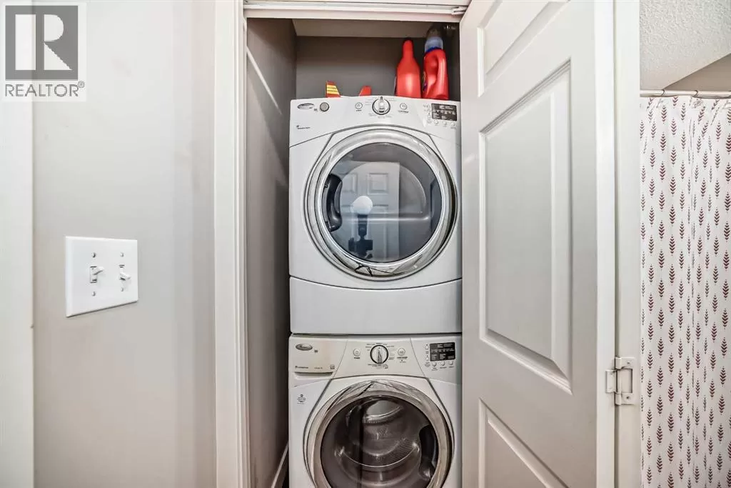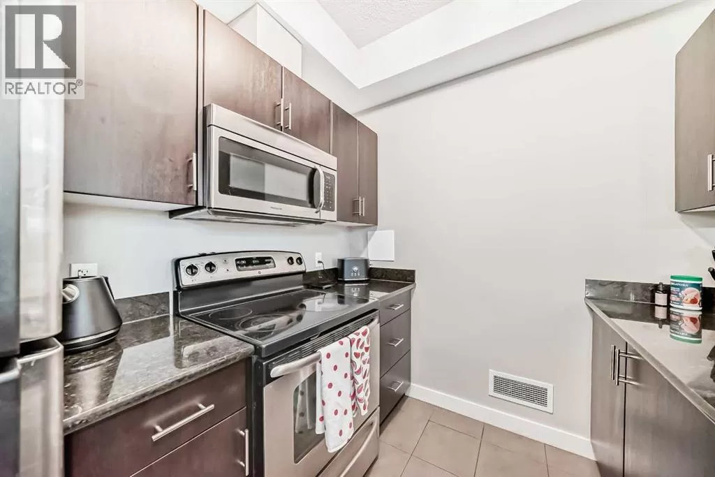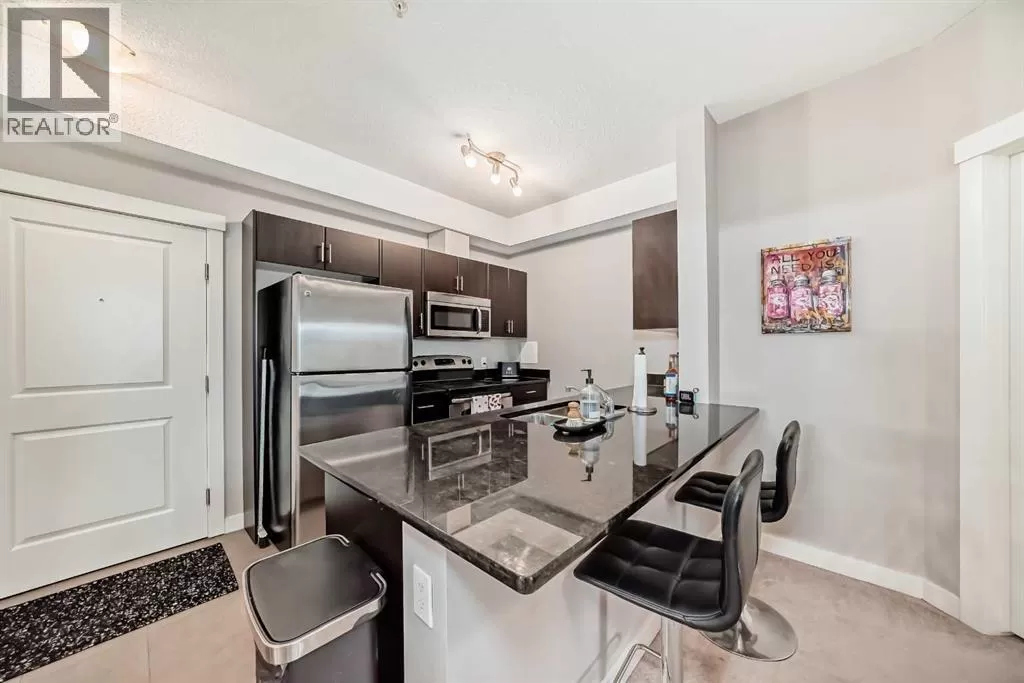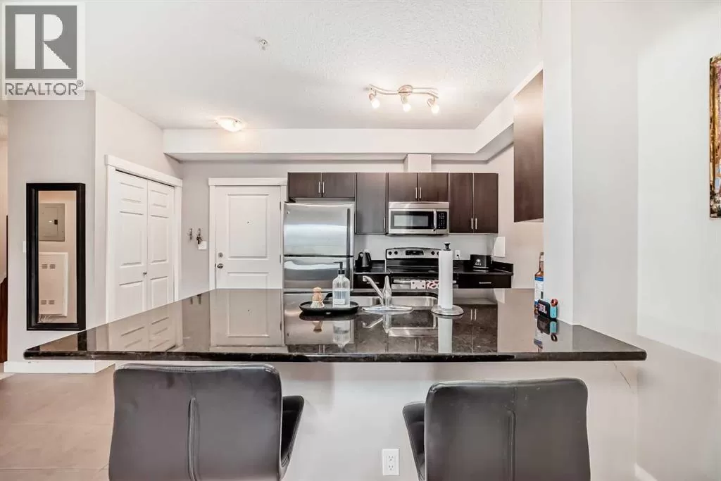 **Welcome to Varsity Landing!**Step inside this stylish condo and immediately feel at home. The modern kitchen features dark cabinetry, sleek granite countertops, and stainless steel appliances, complete with a convenient island that doubles as extra prep space or casual seating. The open-concept layout flows seamlessly into the living room, where large windows fill the space with natural light and frame views of the greenery outside.From the living area, step out to your **private balcony** surrounded by mature trees. Itâs the perfect spot to enjoy your morning coffee or relax at the end of the day with fresh air and a bit of privacy.The home offers **2 bedrooms and 2 full bathrooms, making it ideal for families, roommates, or anyone needing a dedicated office or flex space. The primary suite includes a walk-through closet and a private 4-piece ensuite, while the second bedroom is conveniently located beside the main bath.Additional highlights include **9-foot ceilings, in-suite laundry with a full-sized washer and dryer, and a titled heated underground parking stall** for year-round convenience.Situated in the sought-after community of **Varsity**, this home offers unbeatable access to the University of Calgary, Market Mall, Foothills Hospital, the C-Train, and major routes like Crowchild Trail.Donât miss your chance to own this bright and inviting home in one of Calgaryâs most desirable locations! (id:27476)