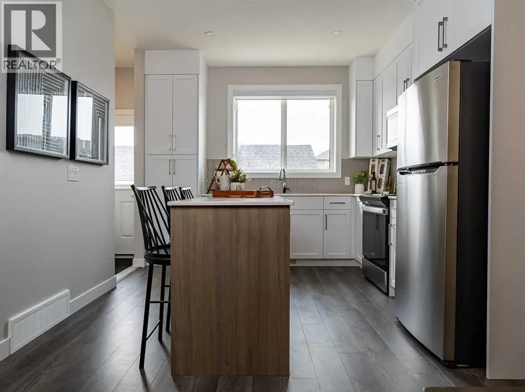 Welcome to the Charlotte by Partners, a paired home designed with functional and stylish living space. The main floor features 9â ceilings and an open-concept layout with a rear kitchen that includes upgraded MDF cabinetry, quartz countertops, a custom backsplash, central island, and a stainless steel appliance package with an upgraded range. Bright dining and living areas at the front of the home provide plenty of natural light and an inviting space for everyday living. Upstairs, the primary suite offers a walk-in closet and a private ensuite with dual sinks and a walk-in shower. Two additional bedrooms, a full bathroom, and convenient upper-floor laundry complete the second level. This home also includes two basement egress windows, rough-in plumbing, and future development potential. At the rear, youâll find a gravel parking pad with alley access. Located in Logan Landing, a new community surrounded by natural beauty, residents will enjoy pathways connecting to the Bow River, nearly 140 acres of open space, parks, playgrounds, birdwatching, fishing, and a community stormwater pond with surrounding amenities. Donât miss the opportunity to make this upgraded Charlotte model your new home! (id:27476)