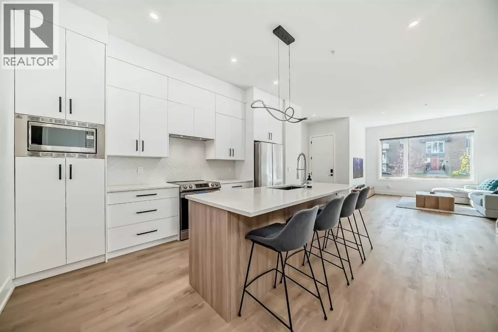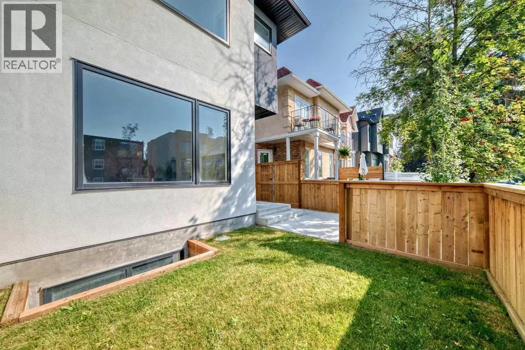 WELCOME TO THIS BEAUTIFUL HOME IN ALTADORE. Experience urban living in one of Calgaryâs most sought-after communities. This newly built 4-plex offers over 2,100 sq. ft. of developed living space, including a thoughtfully designed upper level spanning 1,543 sq. ft.The main floor features a gourmet kitchen with an abundance of cabinetry, quartz counter tops, a breakfast bar for casual dining, and premium stainless steel appliances. The dining area connects seamlessly to the kitchen, creating the perfect setting for entertaining family and friends. Soaring 10-foot ceilings and expansive windows flood the home with natural light, while the spacious living room provides plenty of room for furniture and relaxation. A large mudroom with storage closet and a convenient 2-piece bathroom complete the main floor.Upstairs, youâll find three generously sized bedrooms. The primary suite offers a walk-in closet and a luxurious 4-piece en suite. A full 5-piece main bathroom and upstairs laundry add comfort and convenience.The fully developed basement expands your living space with a spacious recreation room, a generous bedroom, and an additional 4-piece bathroomâperfect for guests or family. This home also includes central air conditioning and a water softener, providing comfort and convenience for all your needs.Enjoy outdoor living in your private fenced front yard, perfect for barbecues, and a fully landscaped lot. The attached single garage features high ceilings, providing ample storage for all your needs.Situated in the heart of Altadore, this residence offers easy access to an array of amenities. Stroll to local shops, cafes, and parks, with quick connections to 33 Avenue, 14 Street, Crowchild Trail, and 17 Avenue. River Park, Riverdale Park, and the Golf & Country Club are all nearby, making this location truly exceptional. (id:27476)