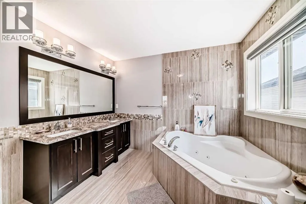 Discover unparalleled luxury and space in this stunning walkout home offering nearly 4,500 sq. ft. of total living area (over 3,000 sq. ft. above grade), ideally located on a quiet and secure cul-de-sac in the heart of Saddle Ridge. Backing directly onto a peaceful pond and community walking/biking trails, this home provides privacy, natural beauty, and premium livingâwith no rear neighbors to obstruct your view. Step inside to a grand and elegant main floor featuring a show-stopping curved staircase leading to the upper level. The layout includes two living rooms, two dining areas, a versatile office that can also serve as a bedroom/den, a full bathroom, and a spacious laundry room. The oversized attached garage offers abundant space for multiple vehicles, storage, or even a workshopâperfect for growing families or car enthusiasts. At the heart of the home is a chefâs dream kitchen with an impressive quartz island, dual-kitchen layout, and a separate enclosed spice kitchen, allowing for efficient cooking and reduced smoke throughout the main living area. Upstairs, you'll find four spacious bedrooms and three full bathrooms, including two massive primary suites, each with its own walk-in closet and private en-suite. One of the en-suites is a true retreat, featuring a 5-piece luxury bath complete with massage tub and built-in sauna. All upstairs bathrooms are upgraded with heated tiled floors, adding a touch of daily comfort and elegance. An additional bonus room provides the perfect space for family movie nights or a dedicated kids' play area. The house is equipped with a high-efficiency furnace, and a new water heater was installed in 2024. Enjoy direct access to the communityâs wetlands, parks, and interpretive trails, and proximity to Saddle Brook Park, Genesis Centre (gym, library, indoor/outdoor fields), and excellent schools including Saddle Ridge School, Nelson Mandela High School, and Light of Christ School. Conveniently located near Saddletowne LRT (Blue Li ne), Métis Trail, Stoney Trail, and just minutes from major shopping at CrossIron Mills and New Horizon Mall. This rare and luxurious walkout home checks every box â location, space, style, and serenity. Bring your realtor and see it todayâyou will be impressed! (id:27476)