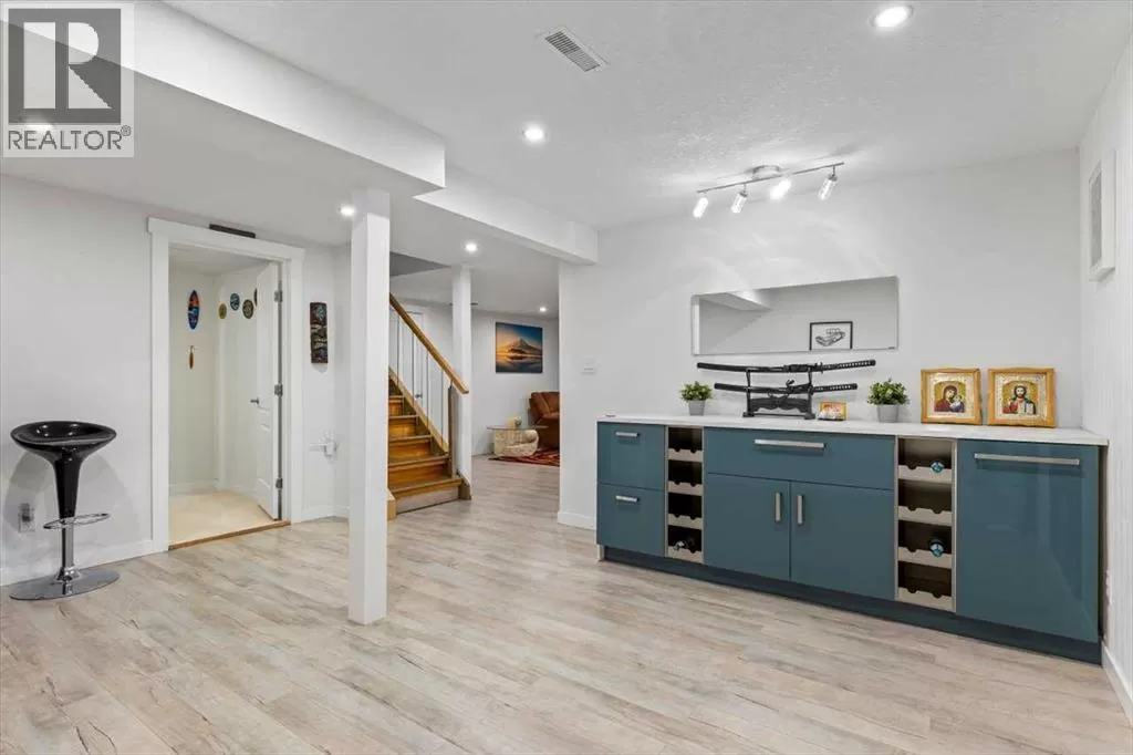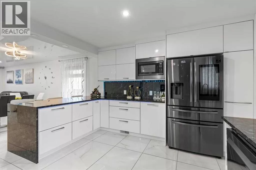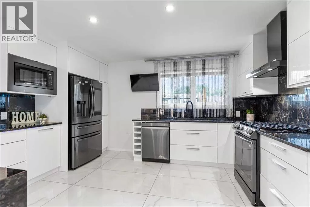 BEAUTIFUL UPDATED 3 Bedroom, 2 1/2 Bathroom BUNGALOW on a 5198 SQ.FT. LOT with FULLY DEVELOPED BASEMENT THAT COMBINES MODERN ELEGANCE with a GREAT OUTDOOR SPACE!Welcome to this METICULOUSLY RENOVATED HOME that combines CONTEMPORARY FINISHES with timeless comfort. From the moment you walk in, youâll notice the seamless blend of style and practicality, designed for modern living and entertaining.INTERIOR HIGHLIGHTS:2023 upgrades across the main living areas: STRETCH CEILING on the main level, STYLISH TILE FLOORING in the living room and kitchen, UPGRADED INTERIOR DOORS, 3-ZONE HEATED FLOORS, and KITCHEN APPLIANCES, MODERN CABINETS and GRANITE COUNTERTOPS (2023).KITCHEN FEATURES: GRANITE COUNTERTOPS, GAS RANGE, MODERN CABINETRY, and a SMART REFRIGERATOR for effortless living.LIVING SPACES: a WELCOMING LIVING ROOM with BAY WINDOW, GLASS PANEL RAILING on the stairway, plus an electric fireplace in the recreation room for cozy evenings.Bathrooms and bedrooms: MARBLE TILES in the bathroom and a fully tiled main bathroom. Three well-appointed bedrooms on the main level, including a primary suite with a ceiling fan and a stylish two-piece ensuite.Thoughtful storage and organization: closet shelving and doors updated in 2023.LIGHTING and CEILINGS: STRETCH CEILING on the main level and MODERN LED ACCENT LIGHTING throughout.Basement: FULLY DEVELOPED with a recreation room, office, flex room, ELECTRIC FIREPLACE, 4-piece FULLY TILED 4 piece bathroom with a workout area. The space includes durable LVP and carpet transitions, plus plenty of natural light.EXTERIOR UPGRADES:Roof updated in 2019; VINYL SIDING and new PLYWOOD/INSULATION around the house (2019), ensuring solid energy efficiency.Exterior enhancements include STONE ACCENTS added in 2019.BACKYARD: a HUGE YARD with mature trees, AMPLE PARKING including a 3 VEHICLE PARKING PAD and RV PARKING SPACE, METAL ROOF GAZEBO (2025) and SHED, ideal for entertaining or quiet relaxation expanding your outdoor living opport unities.FENCE was installed in 2021, offering privacy and a secure yard.This home features smart touches throughout, including LED lighting, a modern kitchen setup, and updated electrical wiring in key living areas (2023).This home blends modern elegance with practical upgrades that matter in daily living. Itâs ready for you to move in and start enjoying a stylish, comfortable lifestyle with plenty of space for family, work, and recreation. Donât miss the opportunity to own a thoughtfully renovated property with standout outdoor living and a spacious, flexible basement.LOCATED IN QUEENSLAND, this home is situated close to parks, schools, playgrounds, shopping, and Fish Creek Park.DON'T MISS THE OPPORTUNITY TO OWN THIS BEAUTIFUL UPDATED HOME! BOOK YOUR SHOWING TODAY! (id:27476)